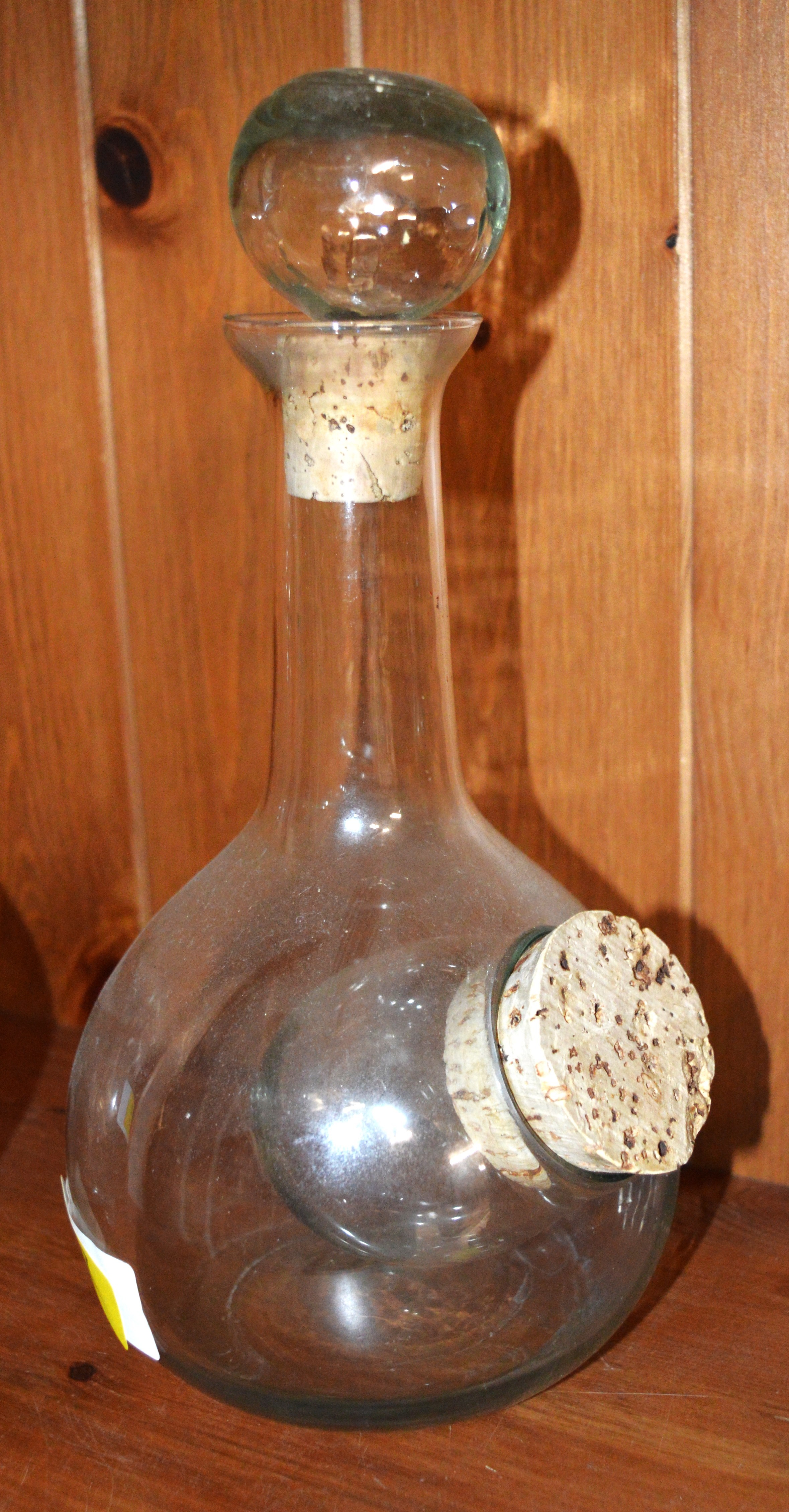 1920s/30s Hand-Made Clear Glass Decanter with Ice Chamber Pocket and Two Cork Stoppers (Good Condition)