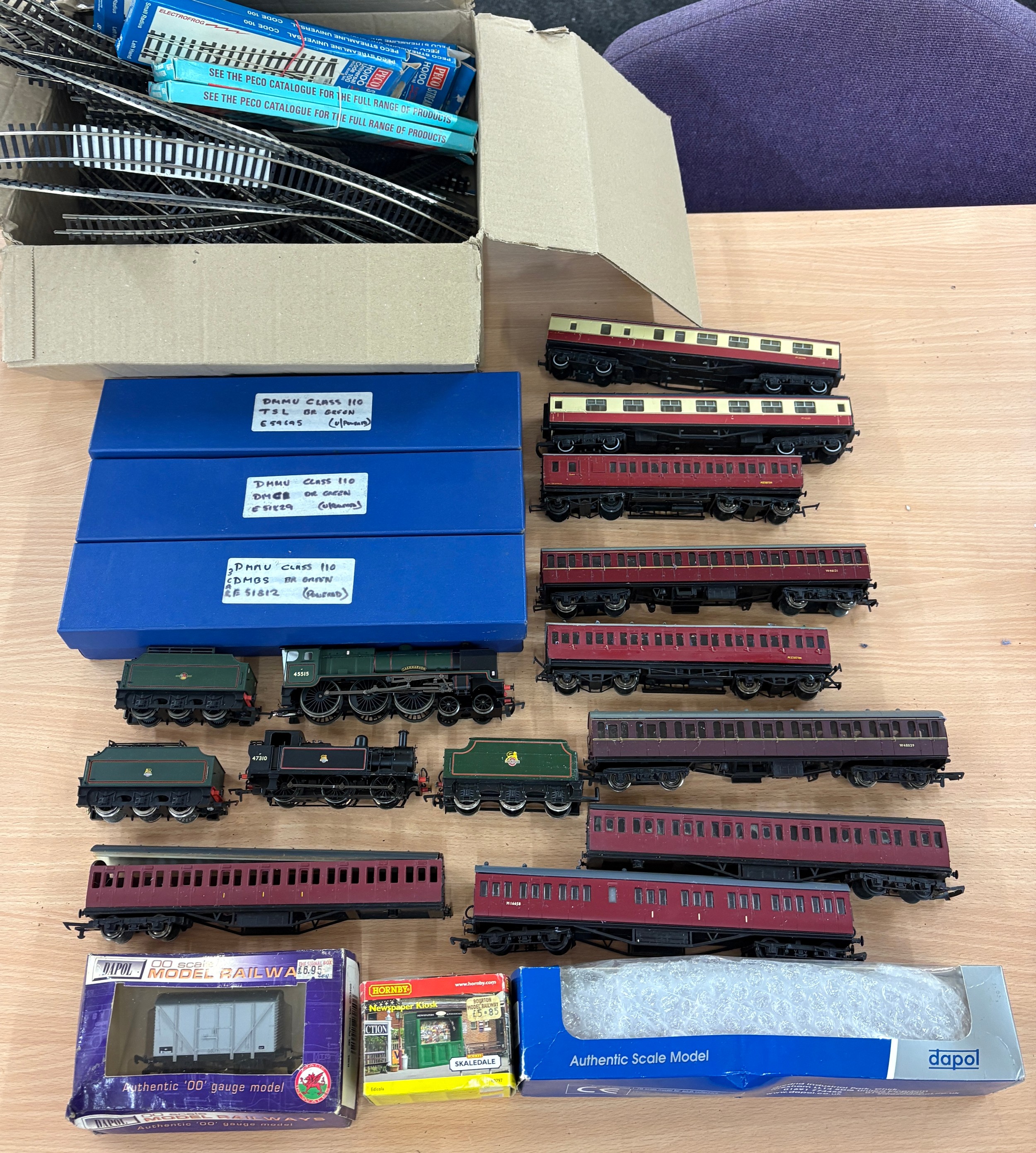 Selection of 00 gauge loco's, carriages, track etcto include loco's Caernarvon and tender, 47310 train etc