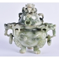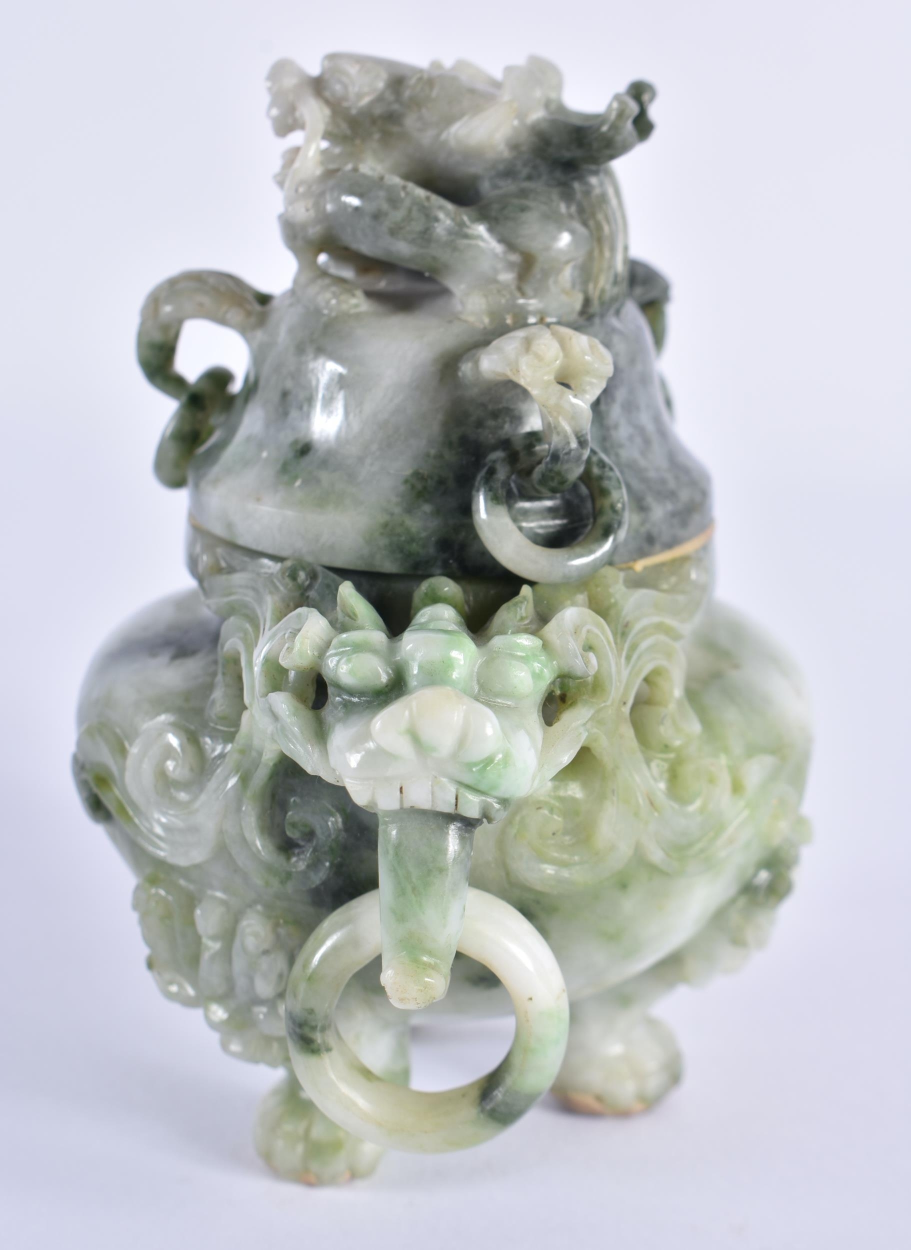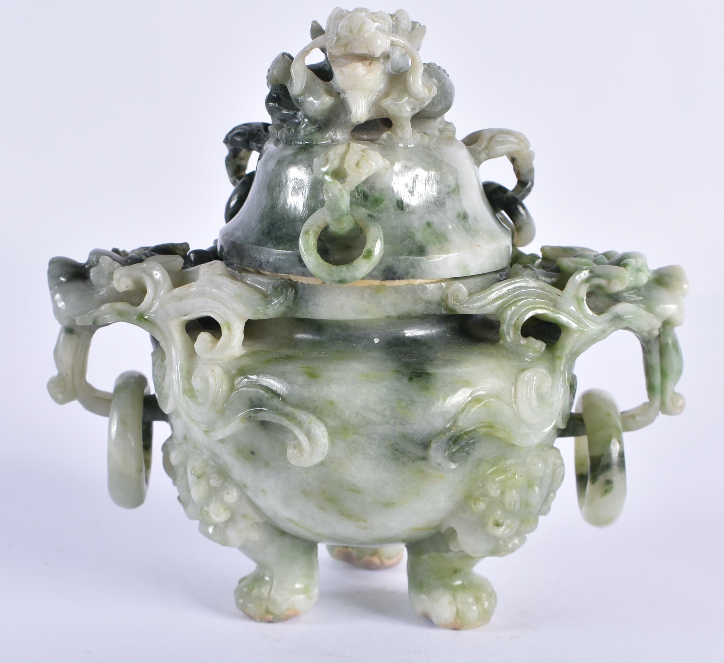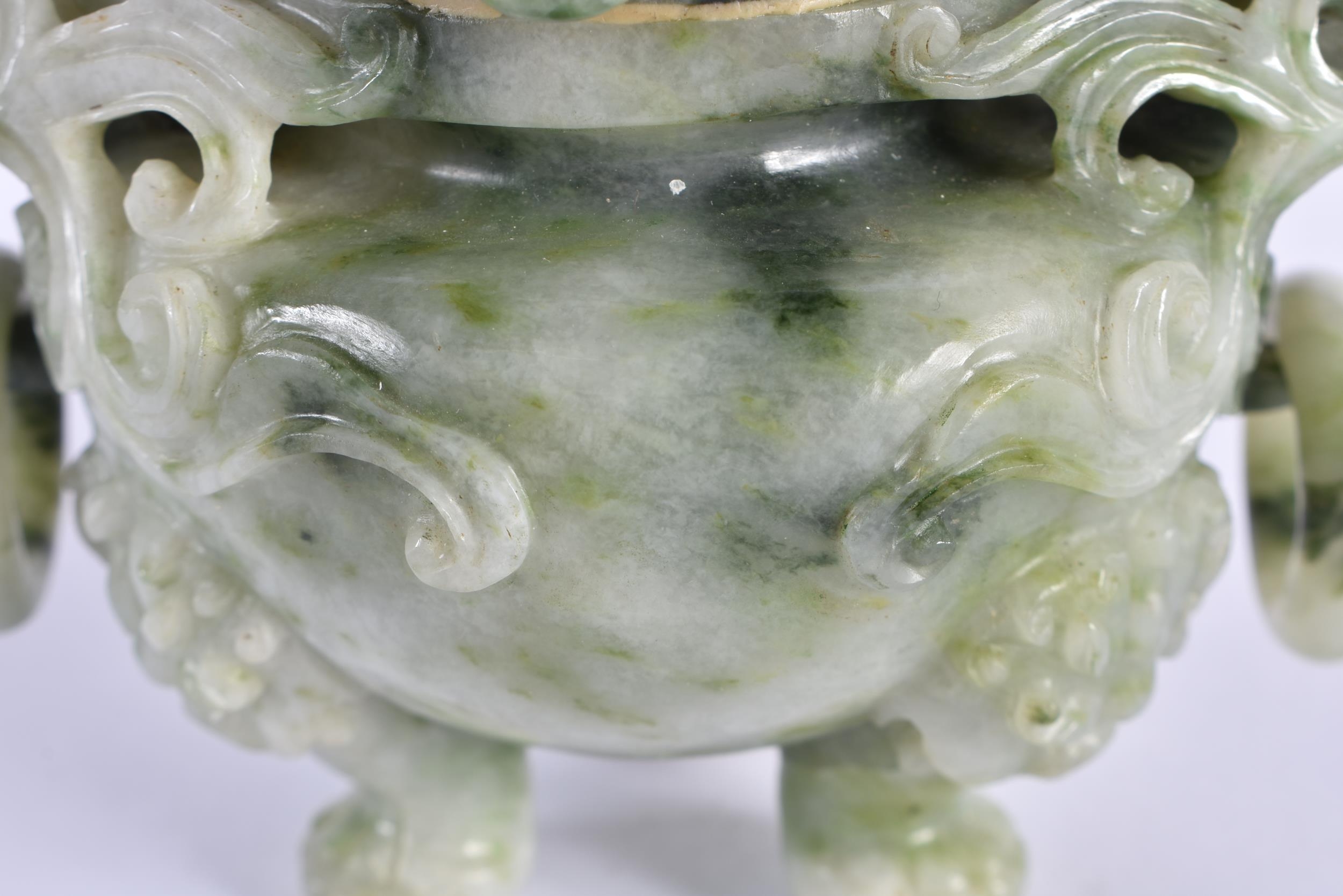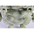 AN EARLY 20TH CENTURY CHINESE CARVED JADEITE CENSER AND COVER Late Qing/Republic. 12 cm x 10 cm.