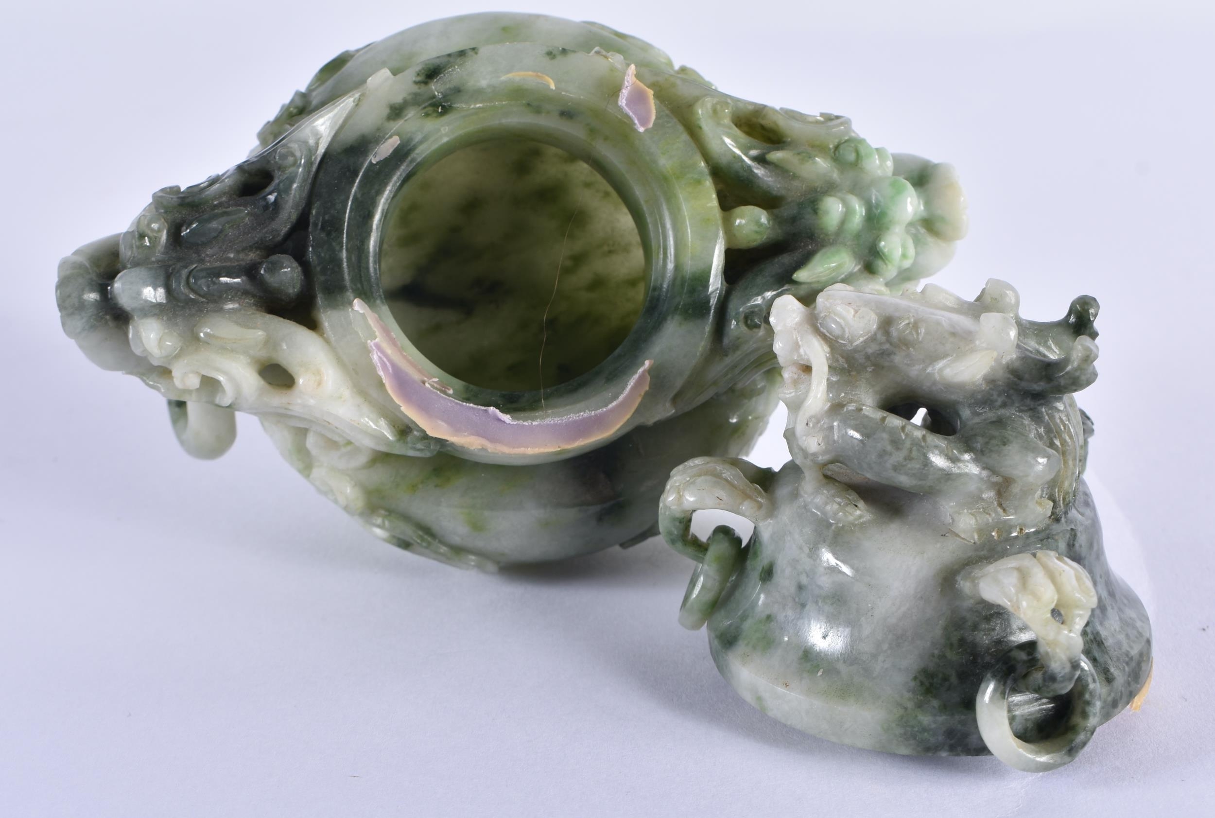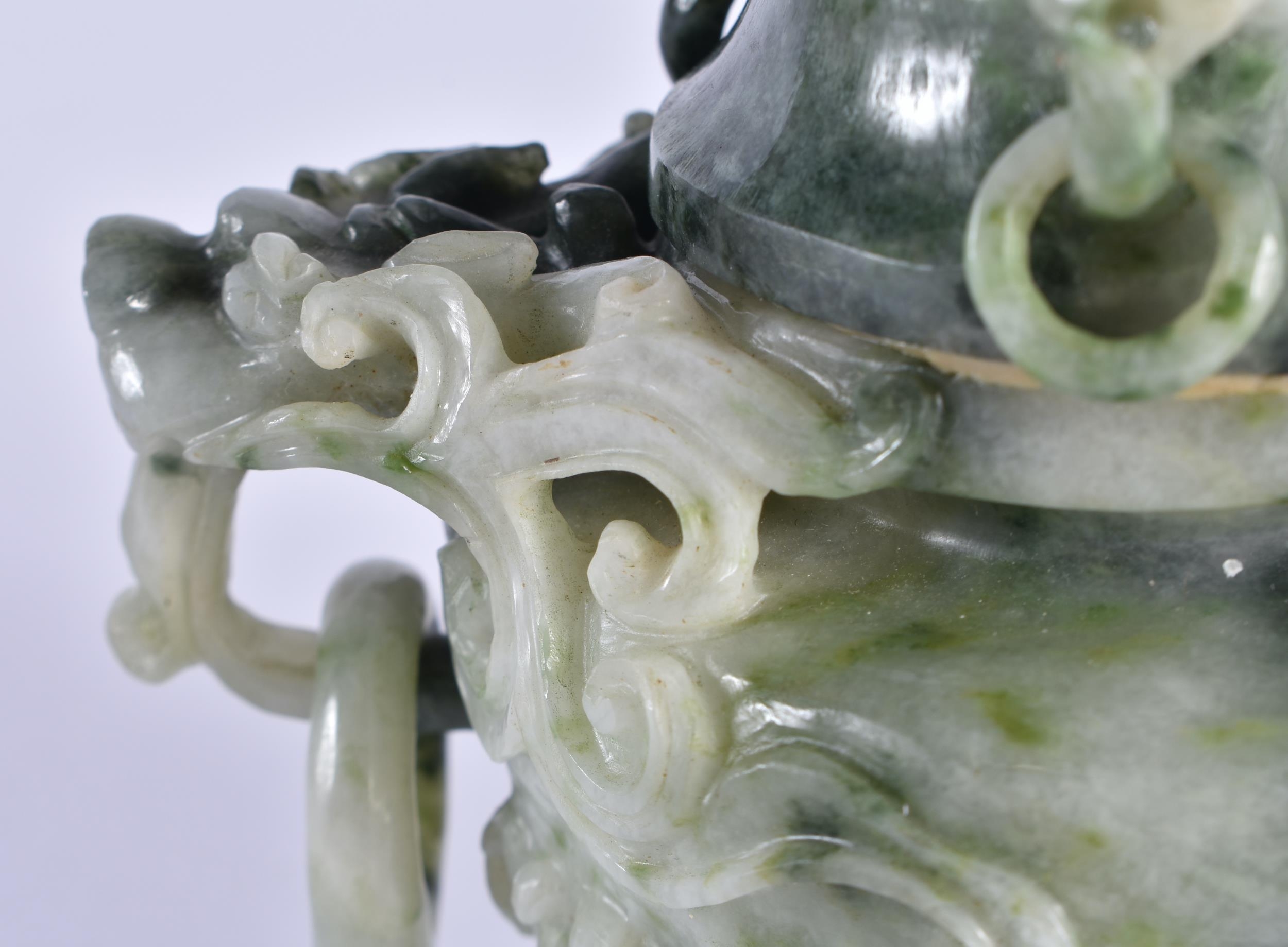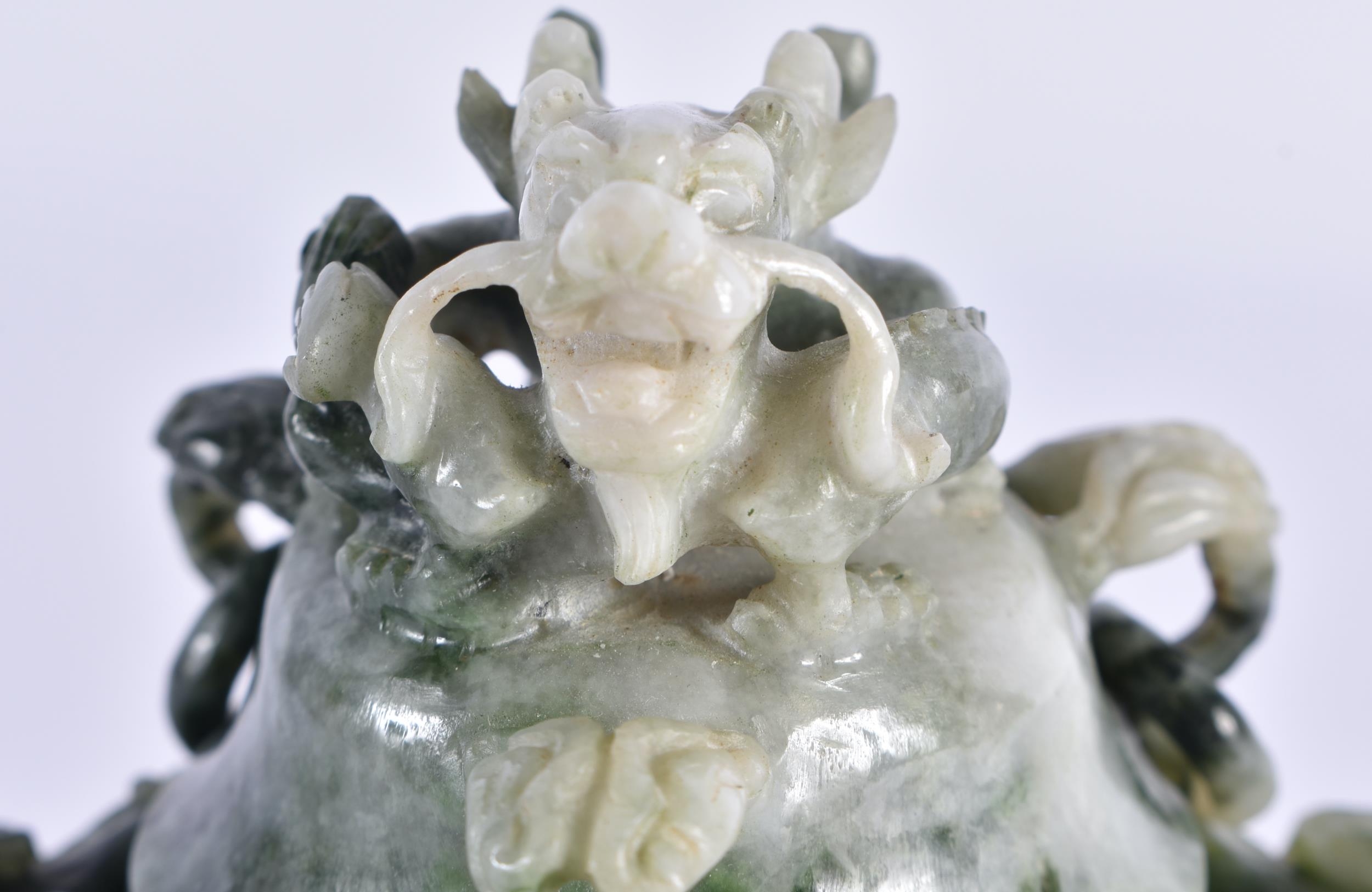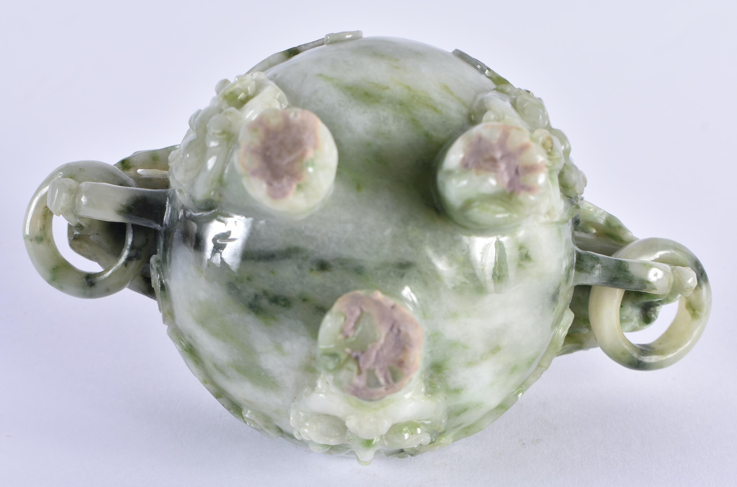 AN EARLY 20TH CENTURY CHINESE CARVED JADEITE CENSER AND COVER Late Qing/Republic. 12 cm x 10 cm.