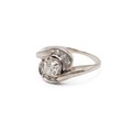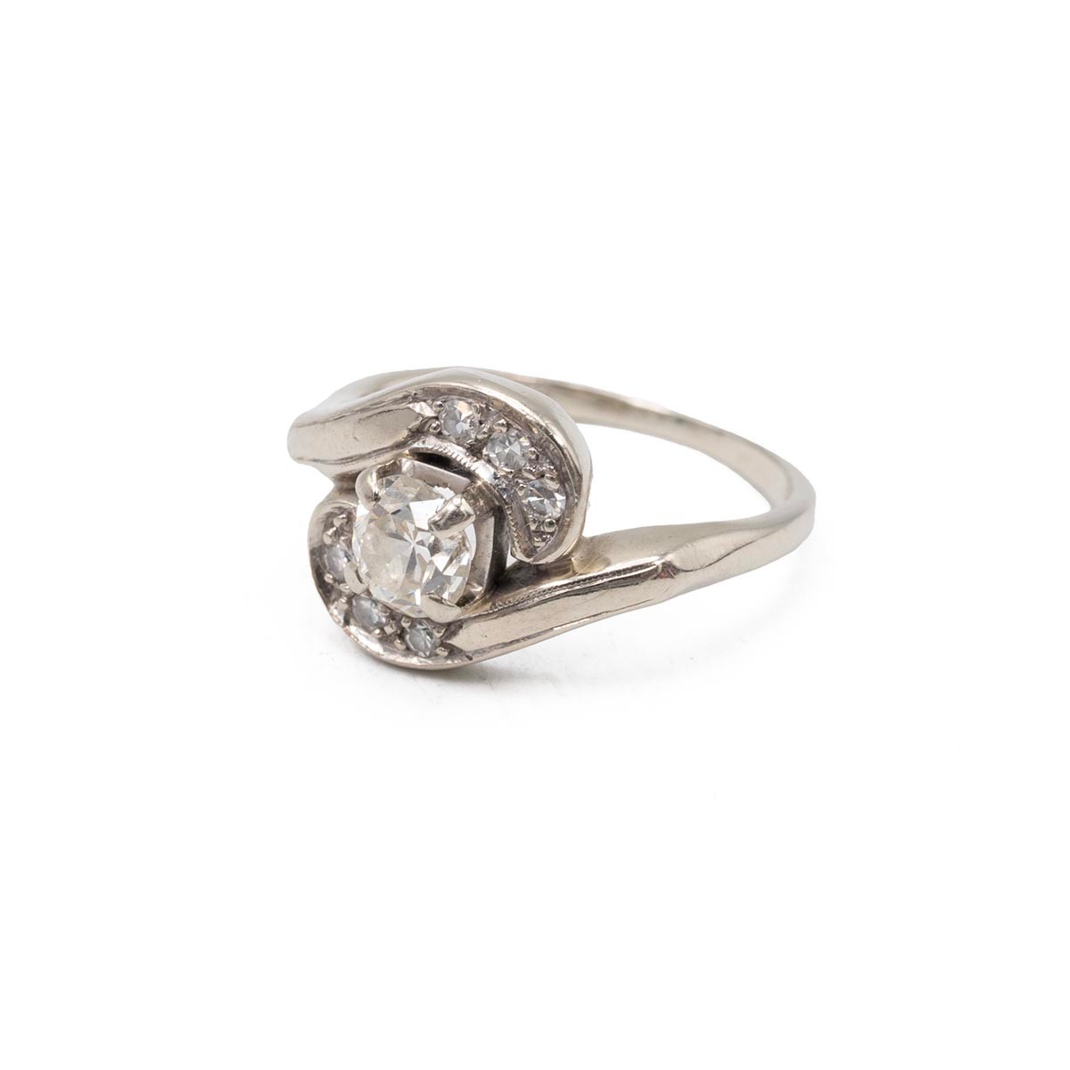 A 14ct gold and diamond twist ring, the central brilliant cut diamond measuring approximately 0.50 carats, the shoulders each with three brilliant cut diamonds, size J 1/2, 3.8 grams.