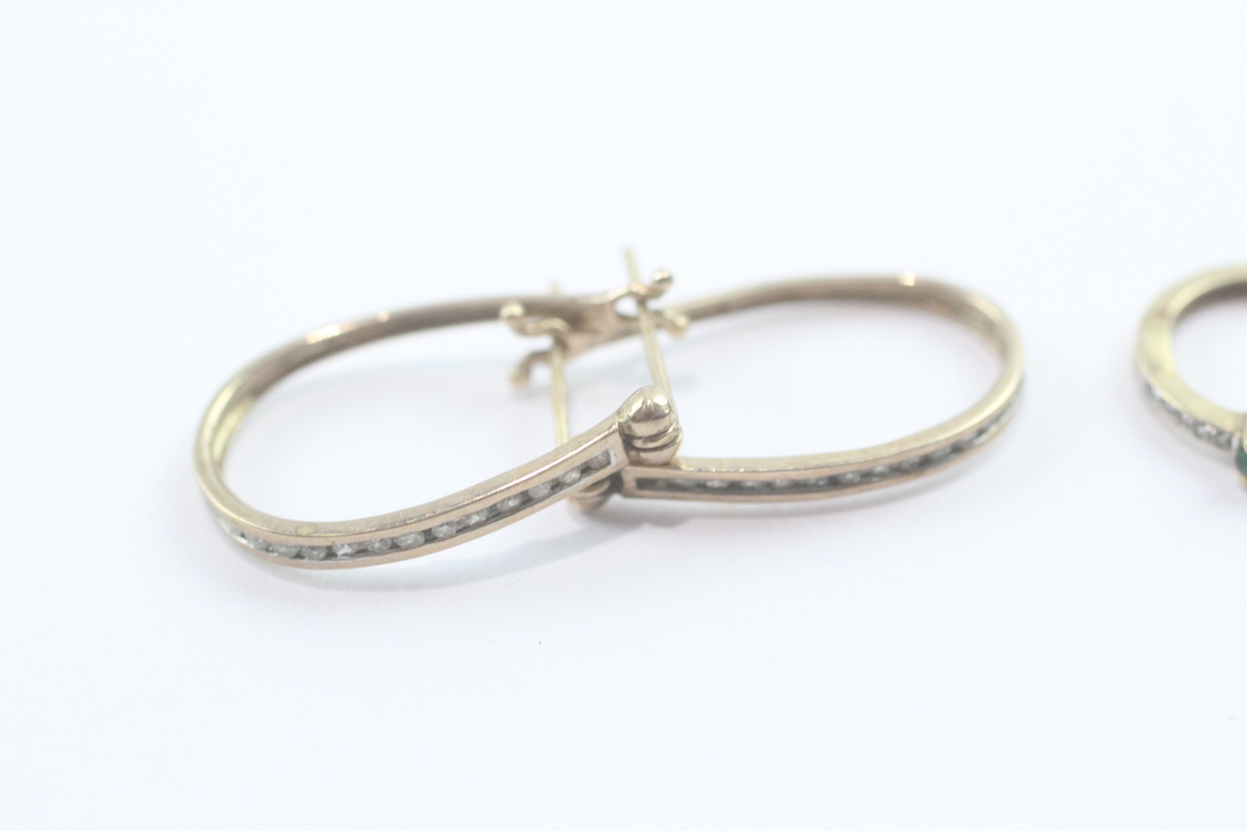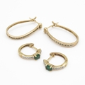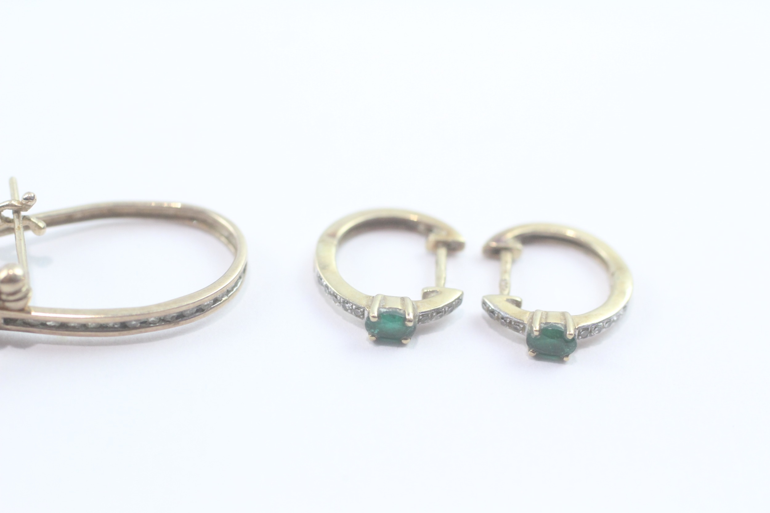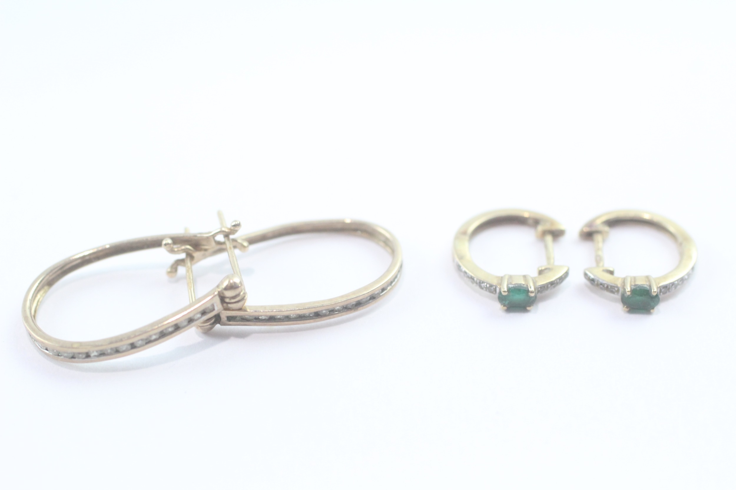 2 x 9ct gold stone set hoop earrings inc. diamond and emerald (3.5g)