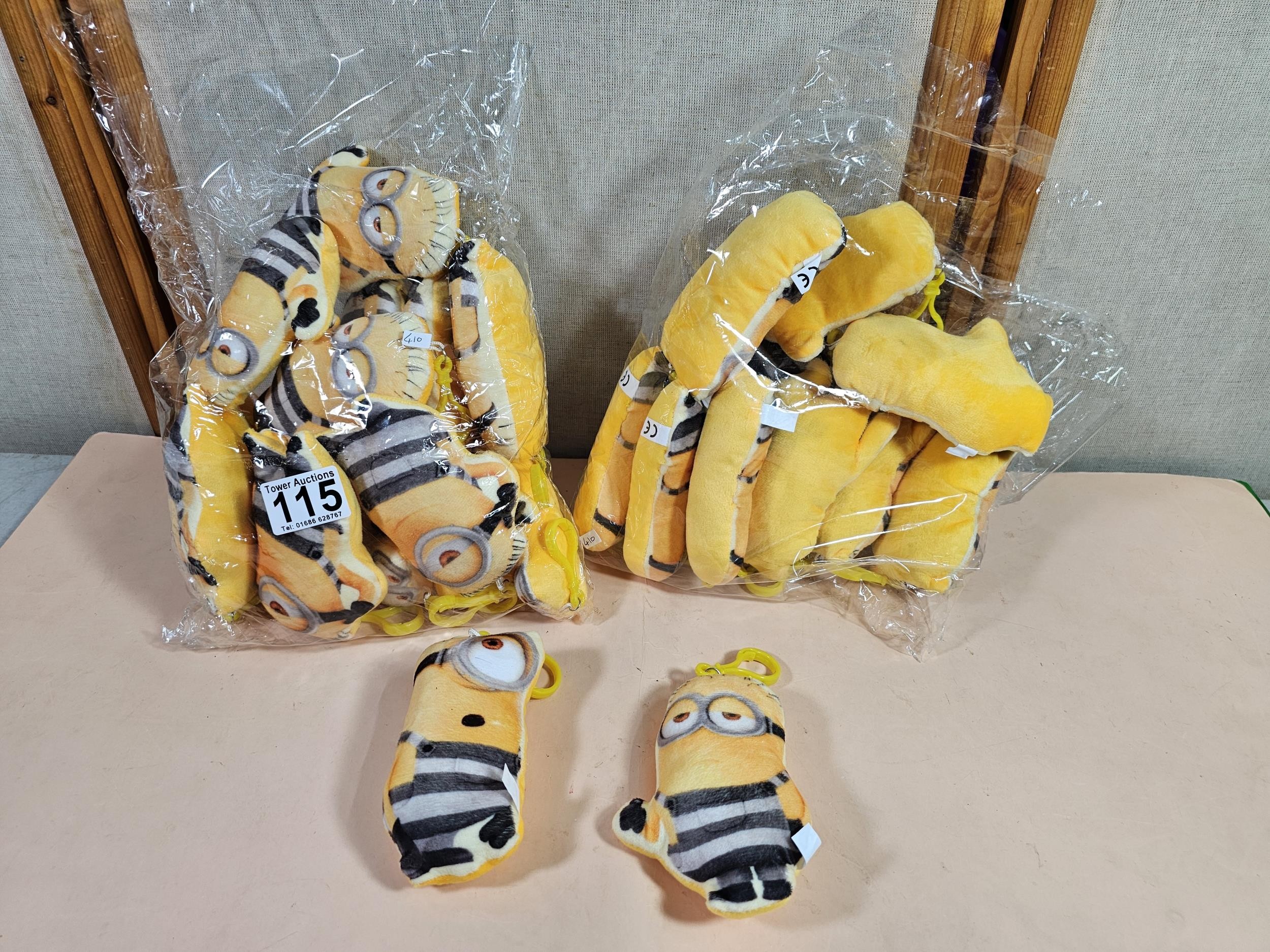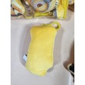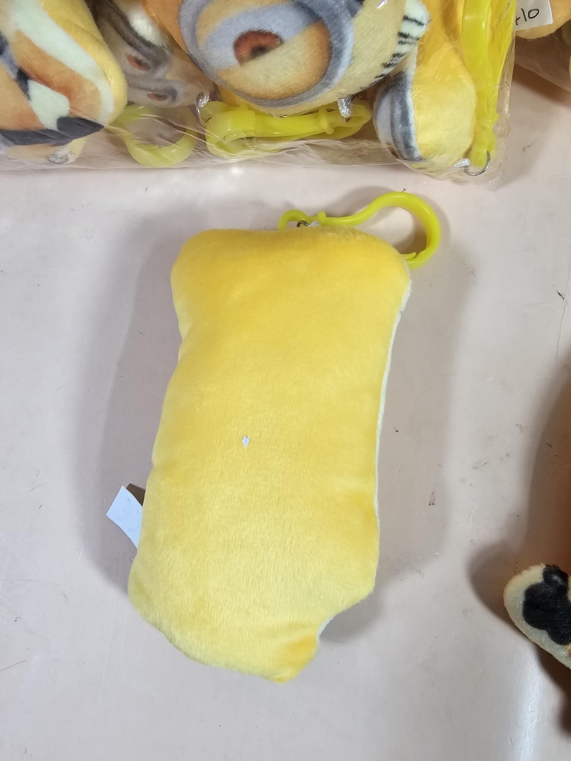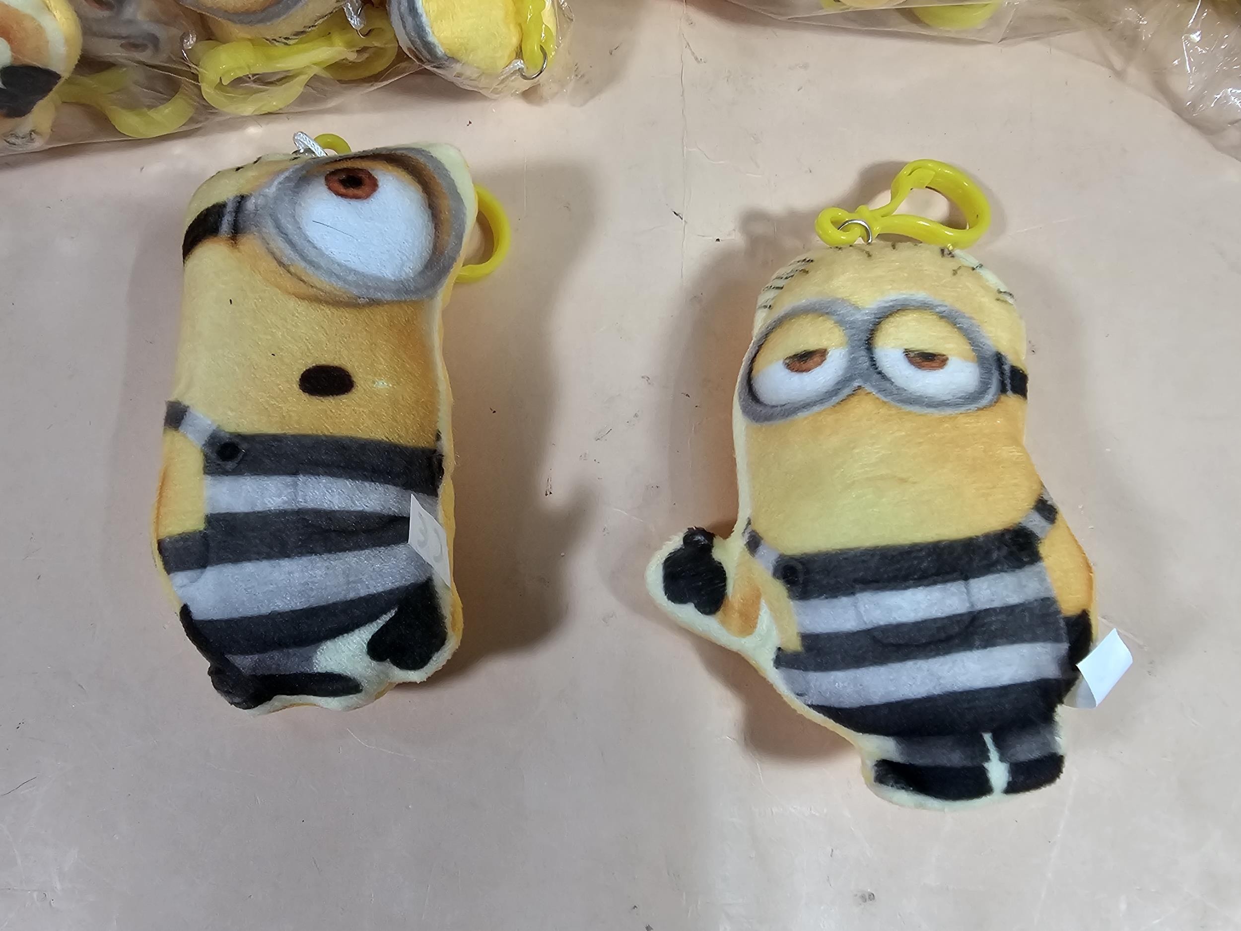 Collection of Minion style key ring in the form of a small yellow plush toy with a plastic fastener, each piece measure 11cm high