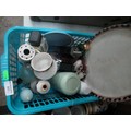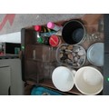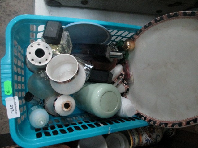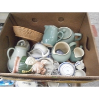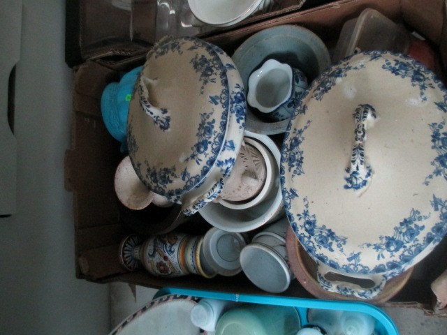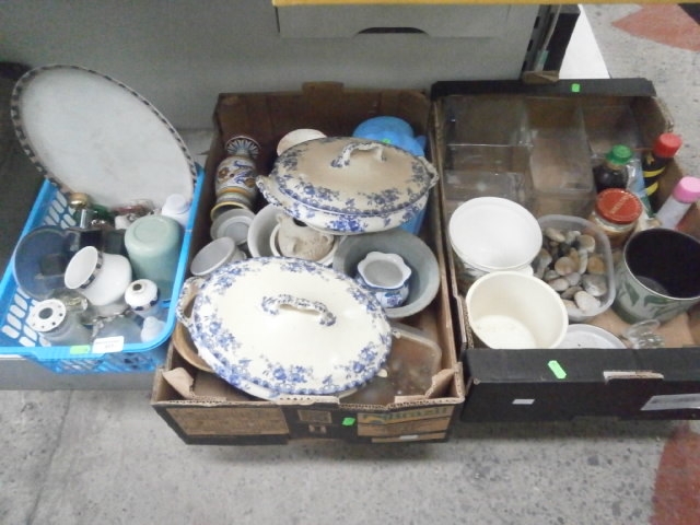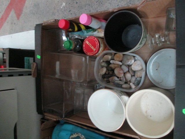 Three boxes inc glass vases, ceramic vases, pebbles, ceramic planters, etc