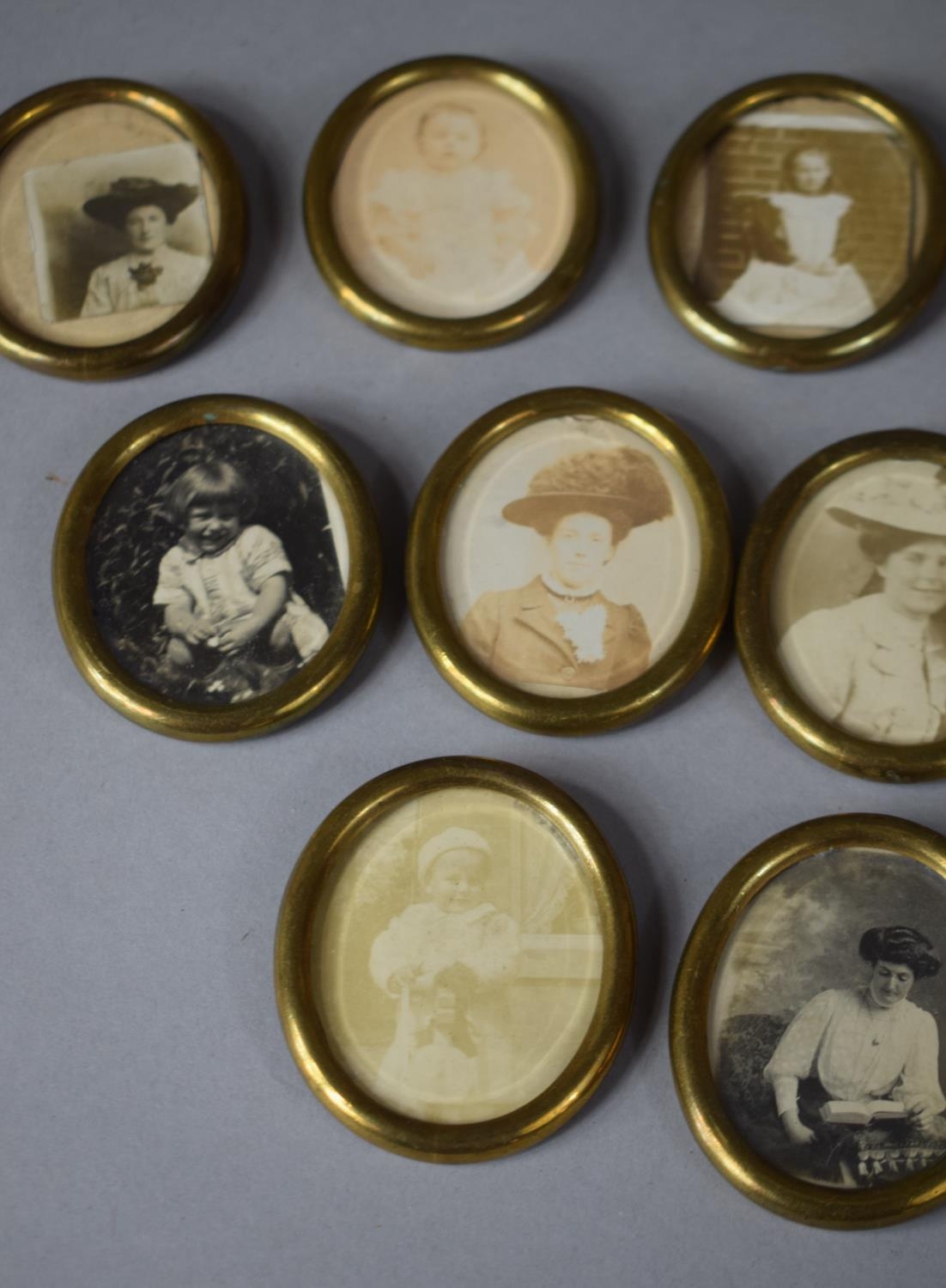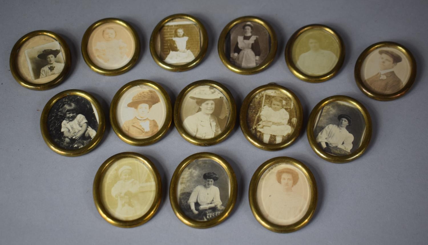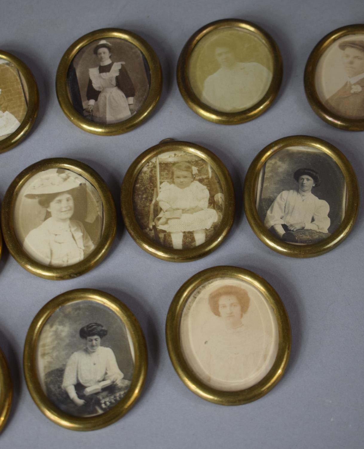 A Collection of Fourteen Victorian Miniature Cast Brass Oval Frames, with Beveled Glass, 5.5cms High