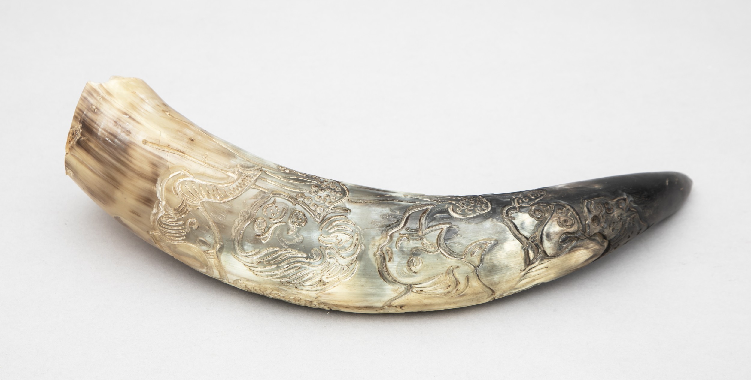 A CARVED HORN, 20TH CENTURY