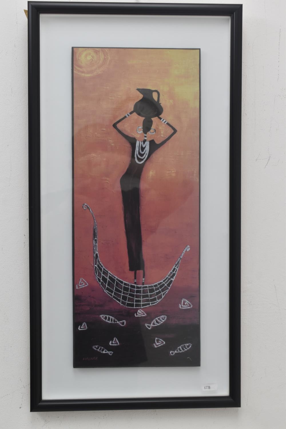 Framed and Glazed African Picture on Board Signed Wagner approx. 13" x 24"