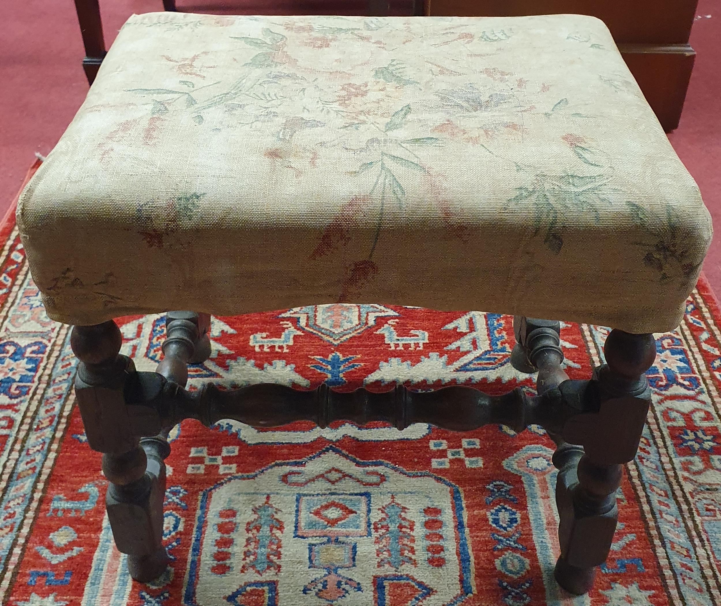 An early 20th Century Stretcher Base Stool.W 43 x D 33 x H 40 cm approx.