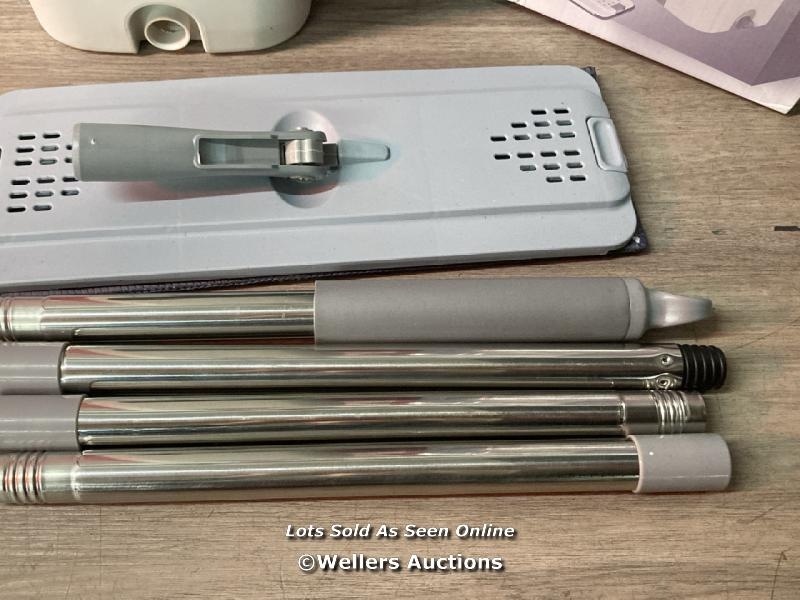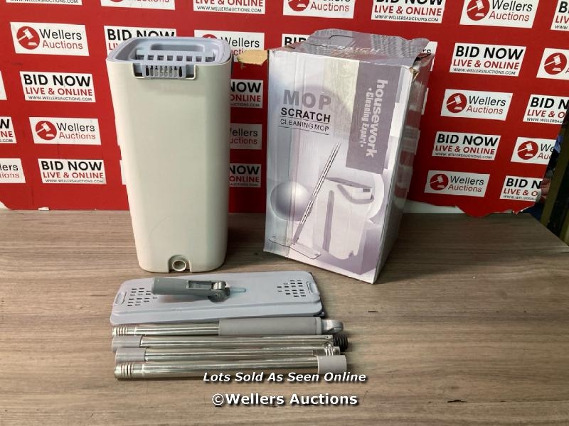 ASELECTED FLAT MOP AND BUCKET SET, HANDS FREE SQUEEZE MOP WITH 10 REUSABLE MICROFIBER MOP PADS AND STAINLESS STEEL 123CM LONG HANDLE, MICROFIBER FLOOR MOP FOR TILED, MARBLE, HARDWOOD / NO DRAINAGE BUNGS / APPEARS NEW - SEE IMAGES / E8