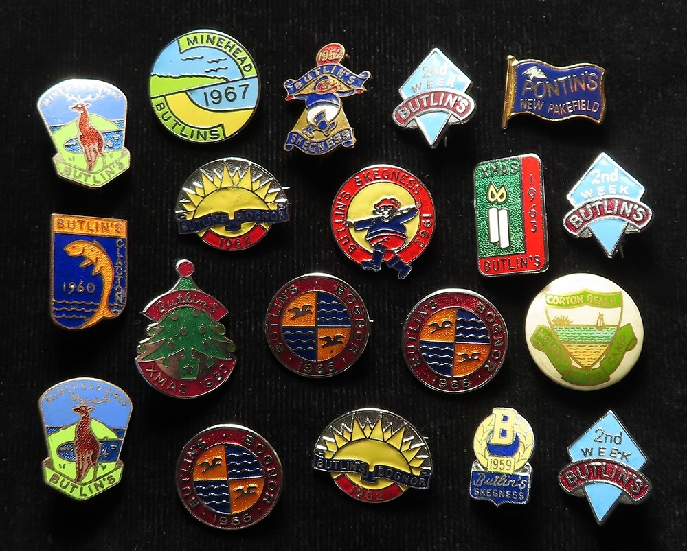 Holiday Camp Badges: Butlins (17), Pontins (1) and Corton Beach (1).