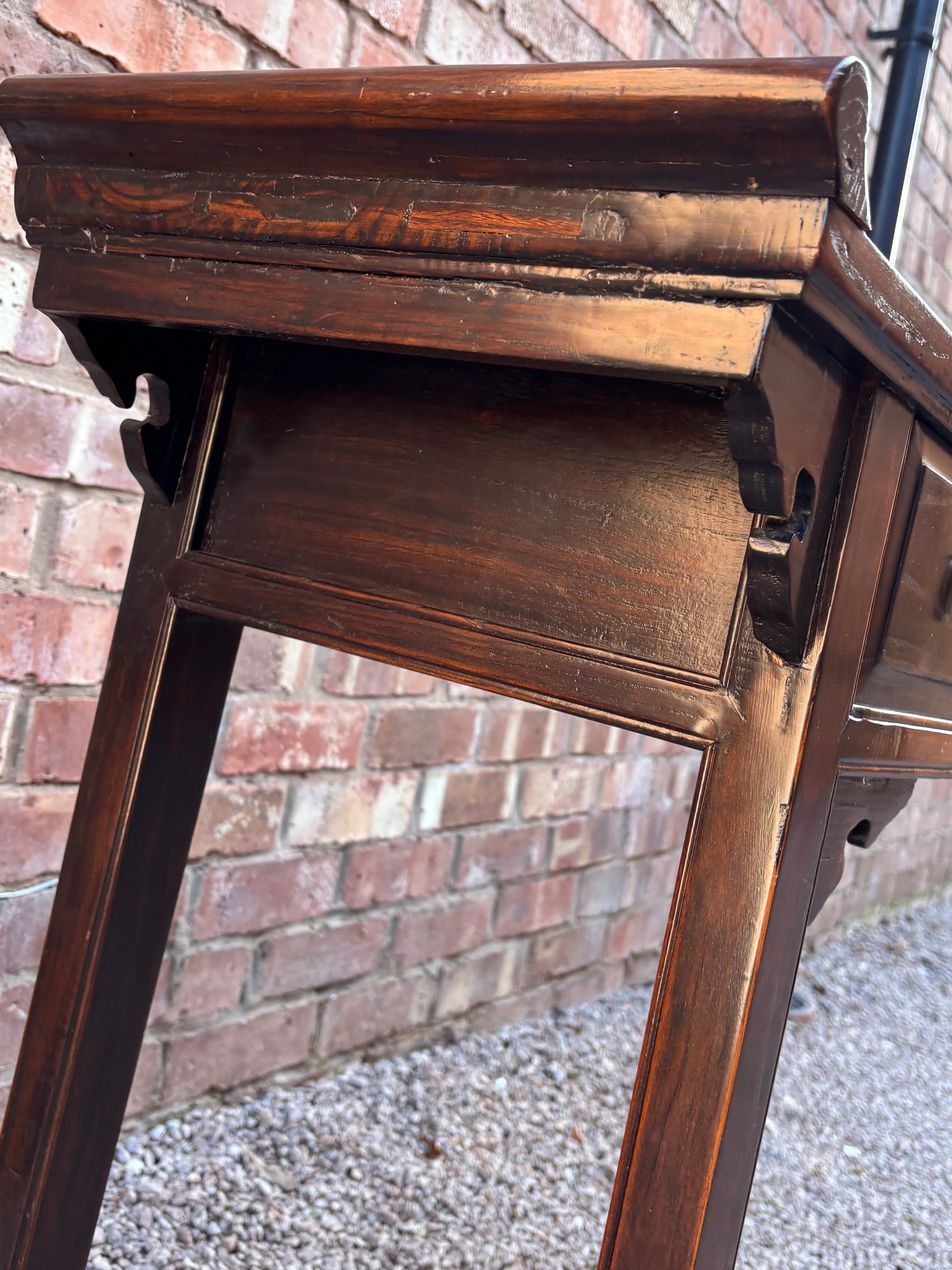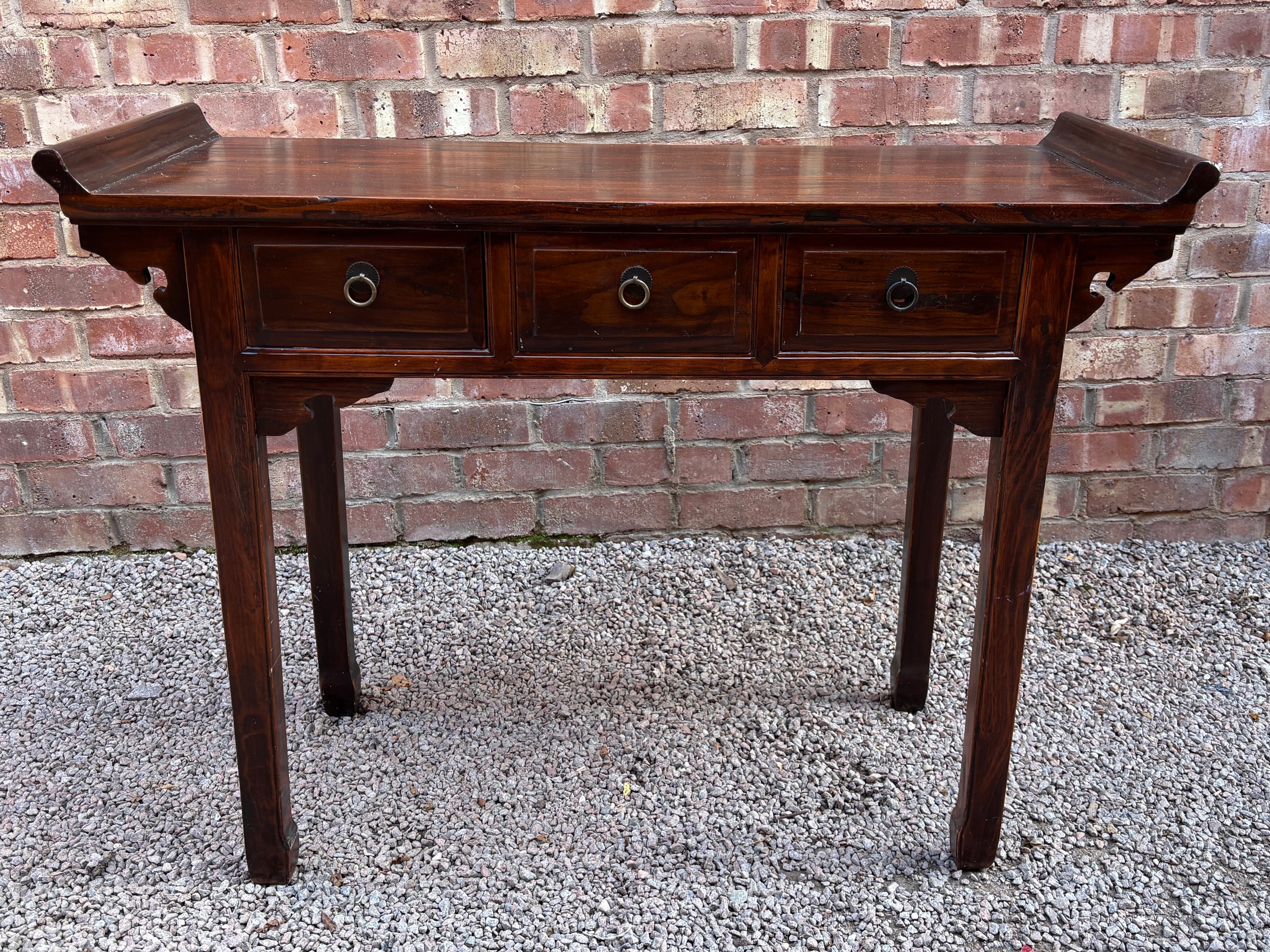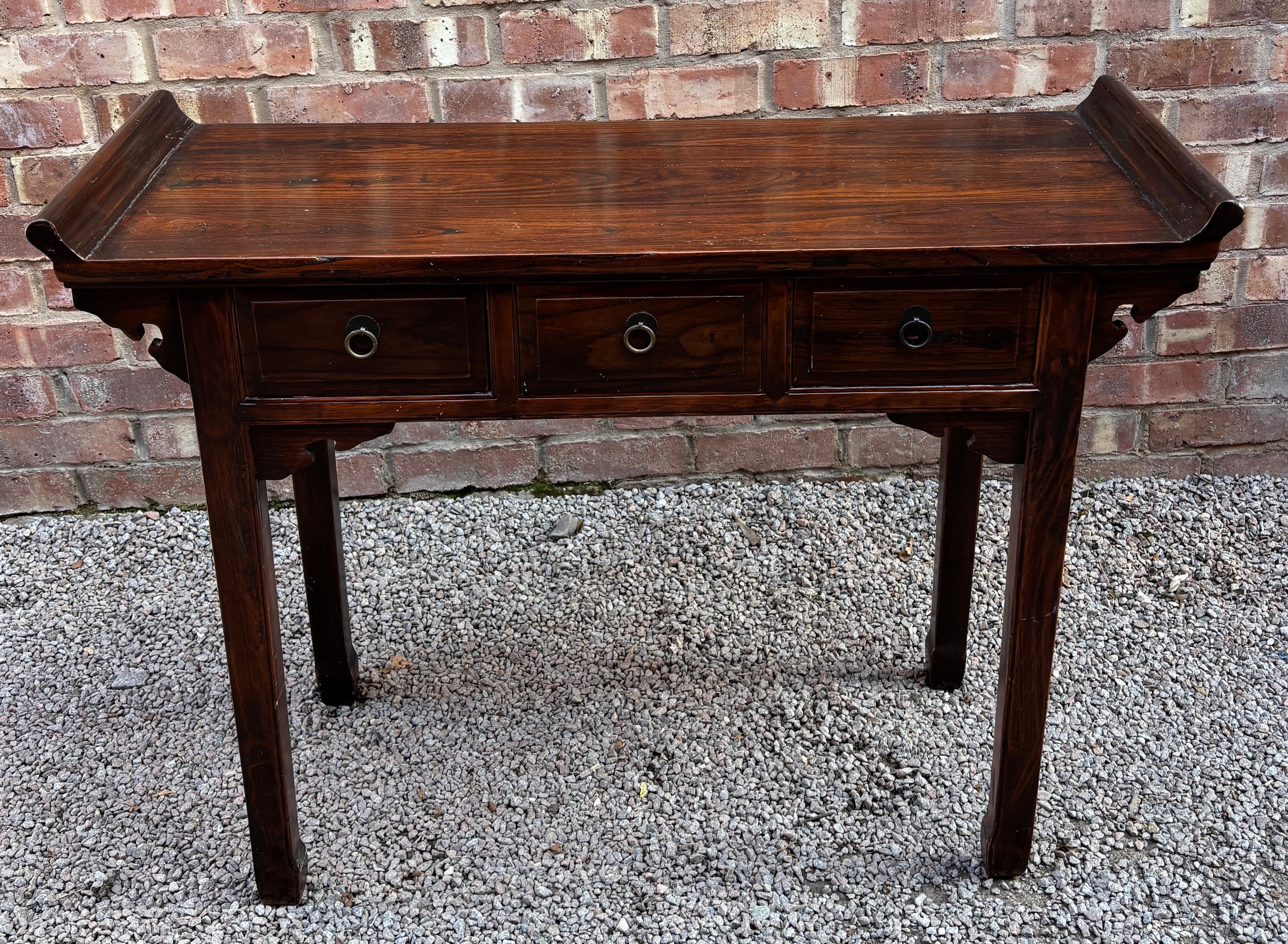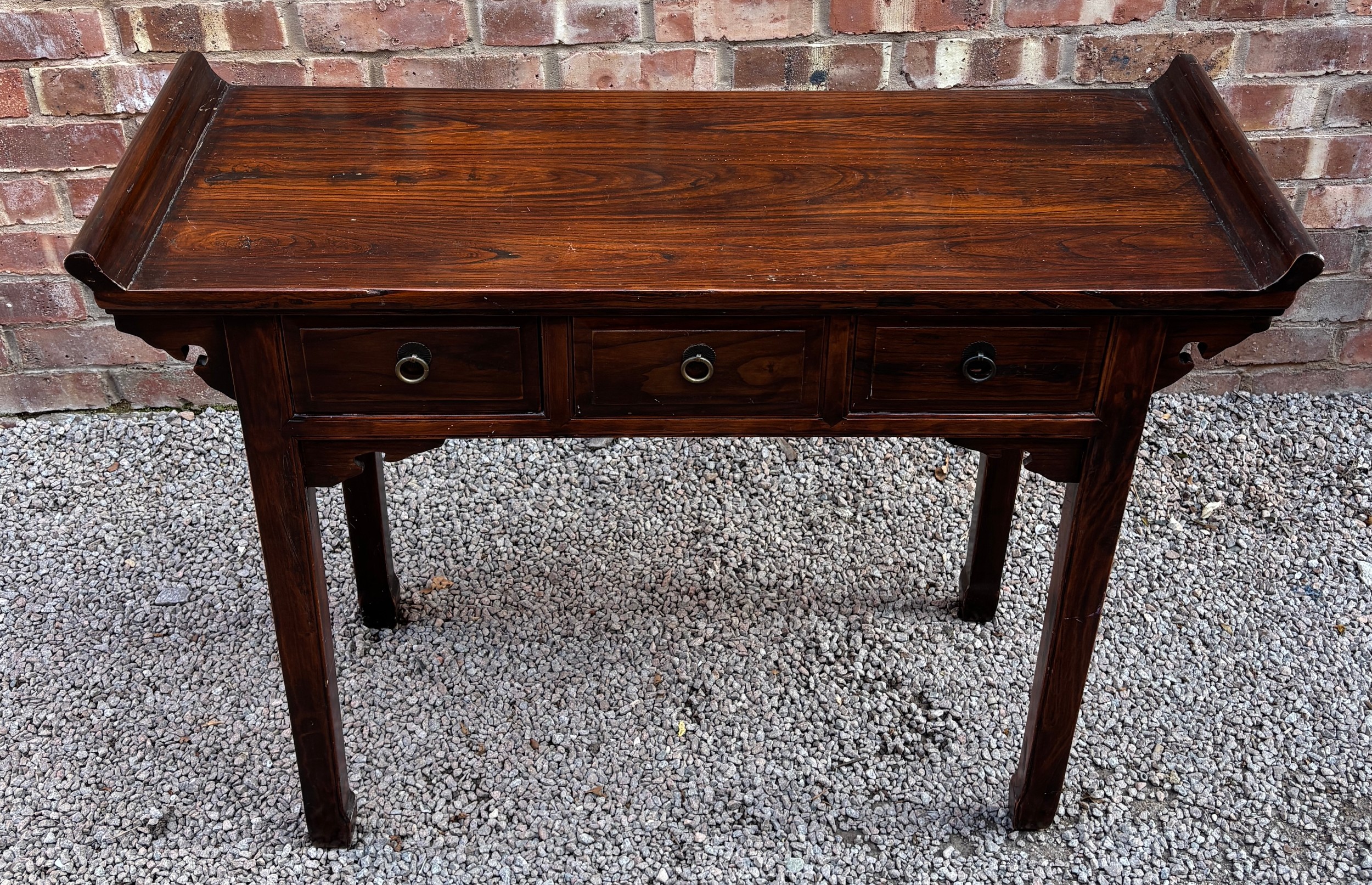 CHINESE ELM ALTAR TABLE WITH THREE FRIEZE DRAWERS