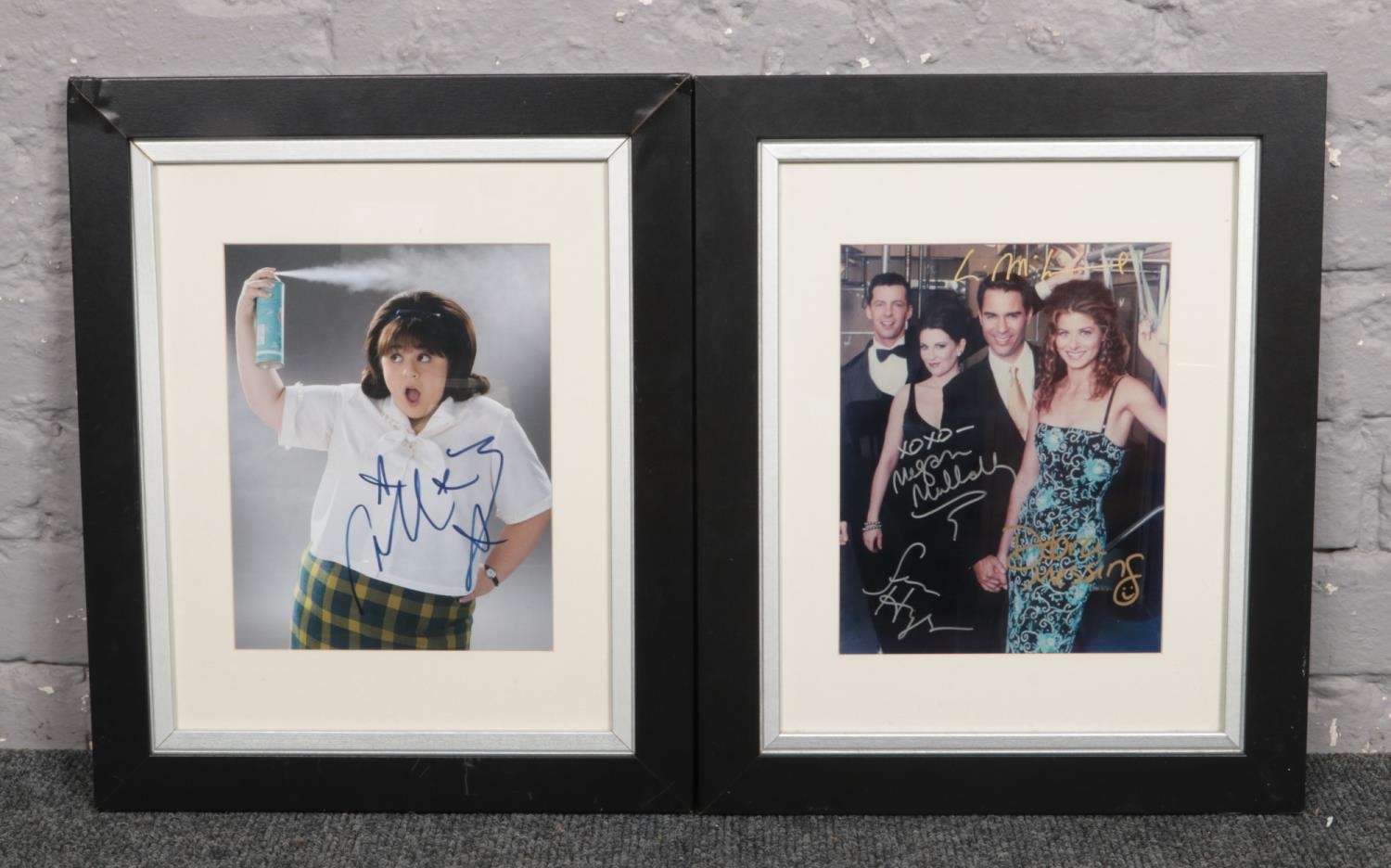 Two framed signed photograghs; one signed by the cast of Will & Grace, the other by Nikki Blonsky from Hairspray.