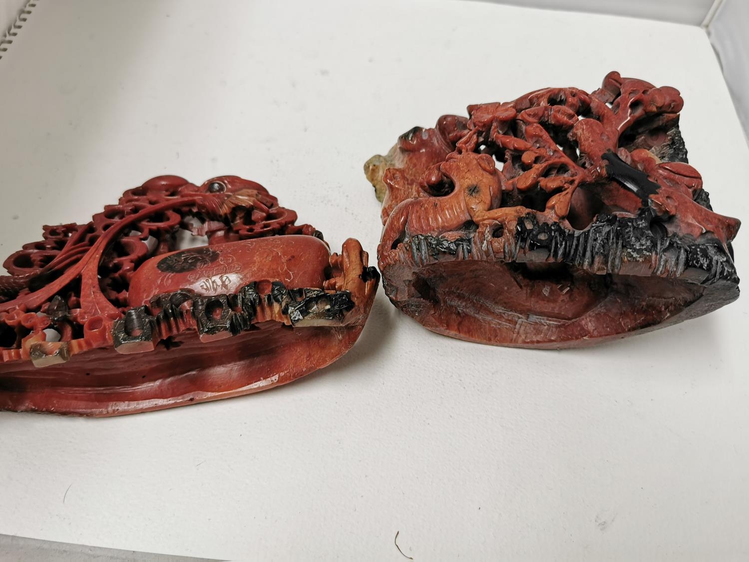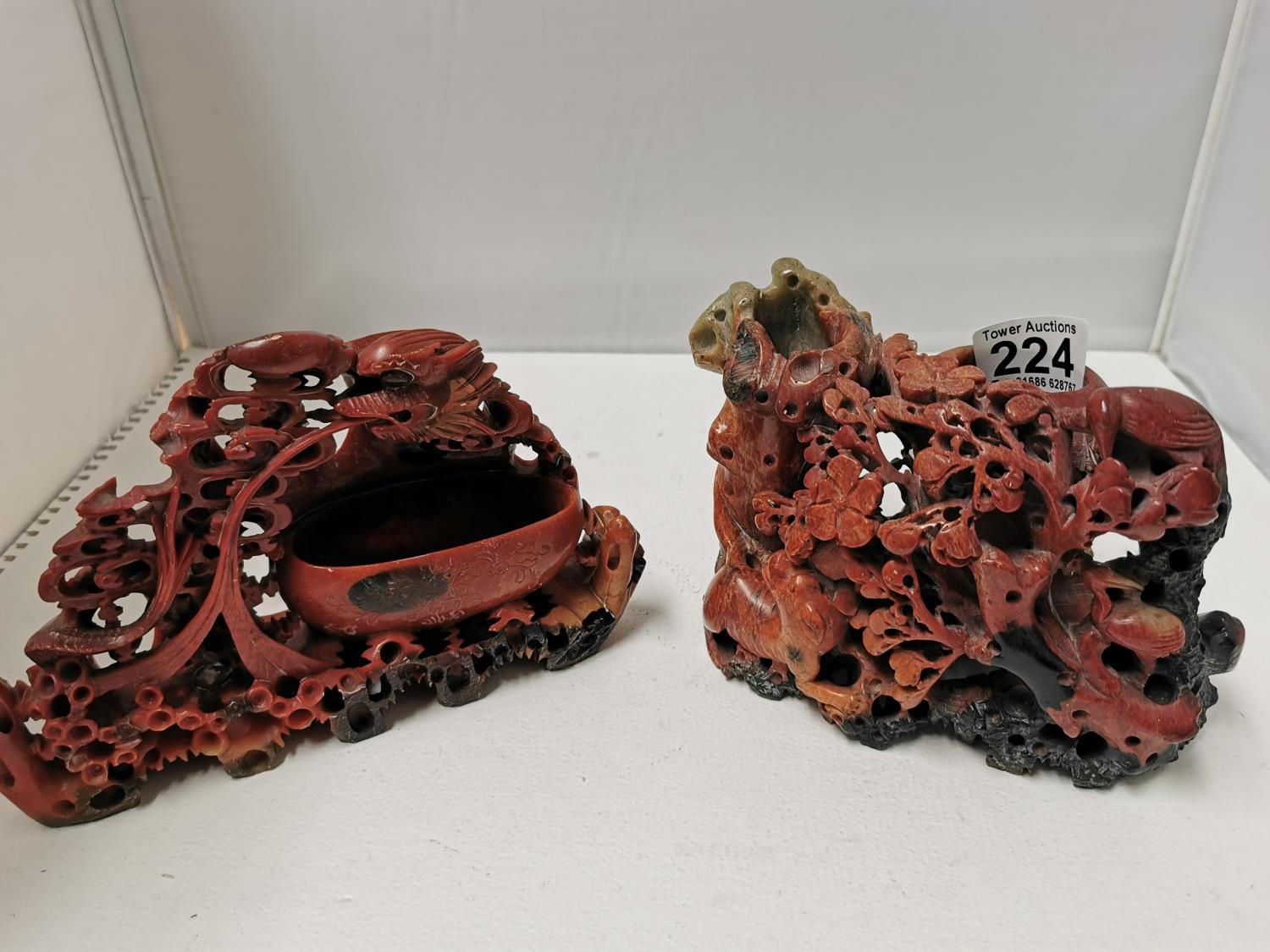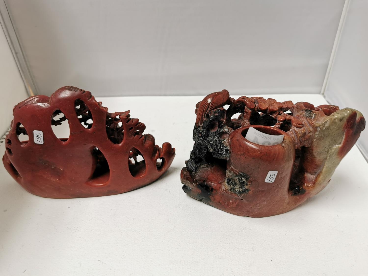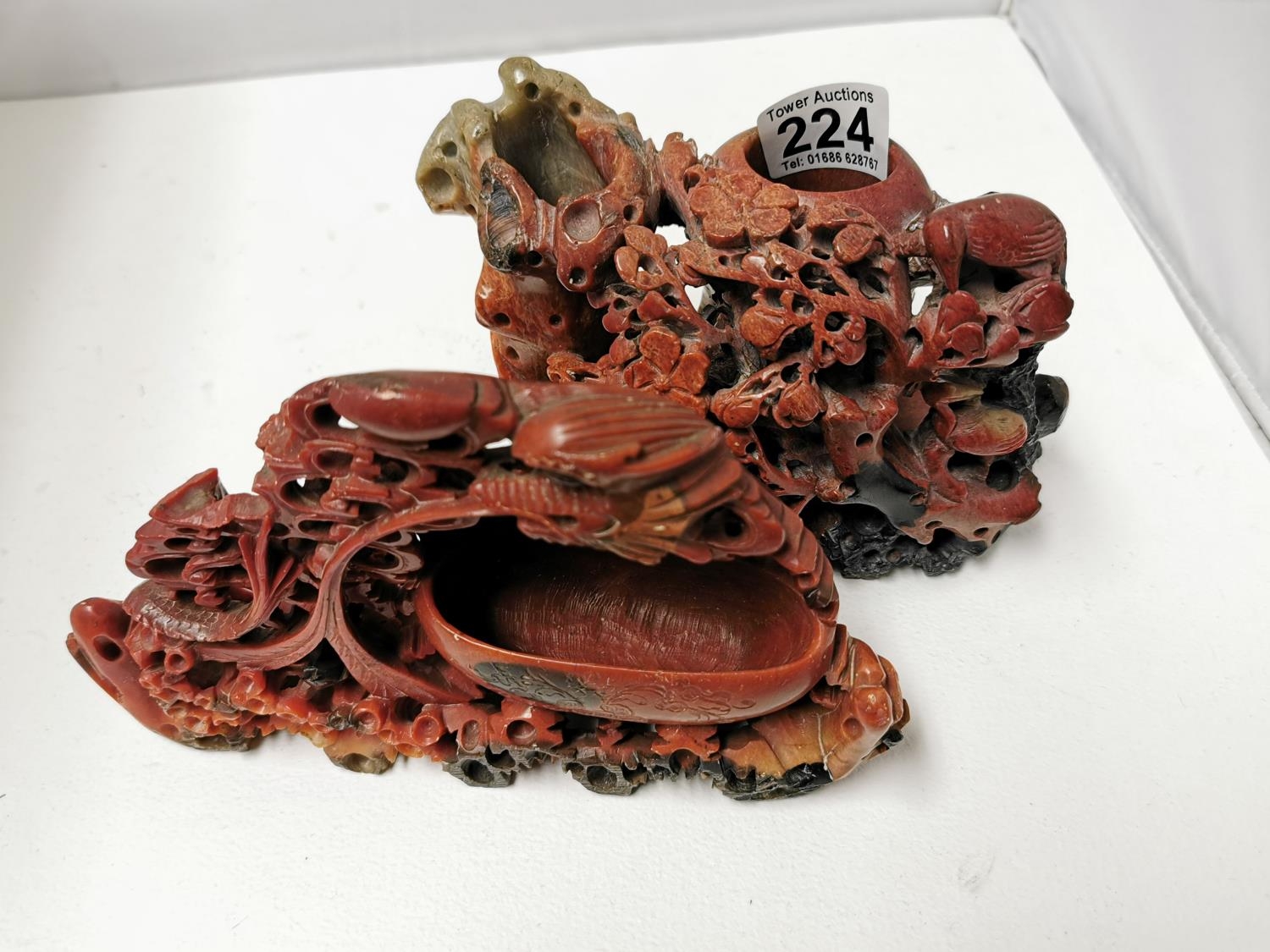 Two Well Carved Chinese Soap Stone Paint Brush Holders
