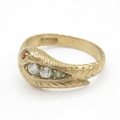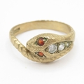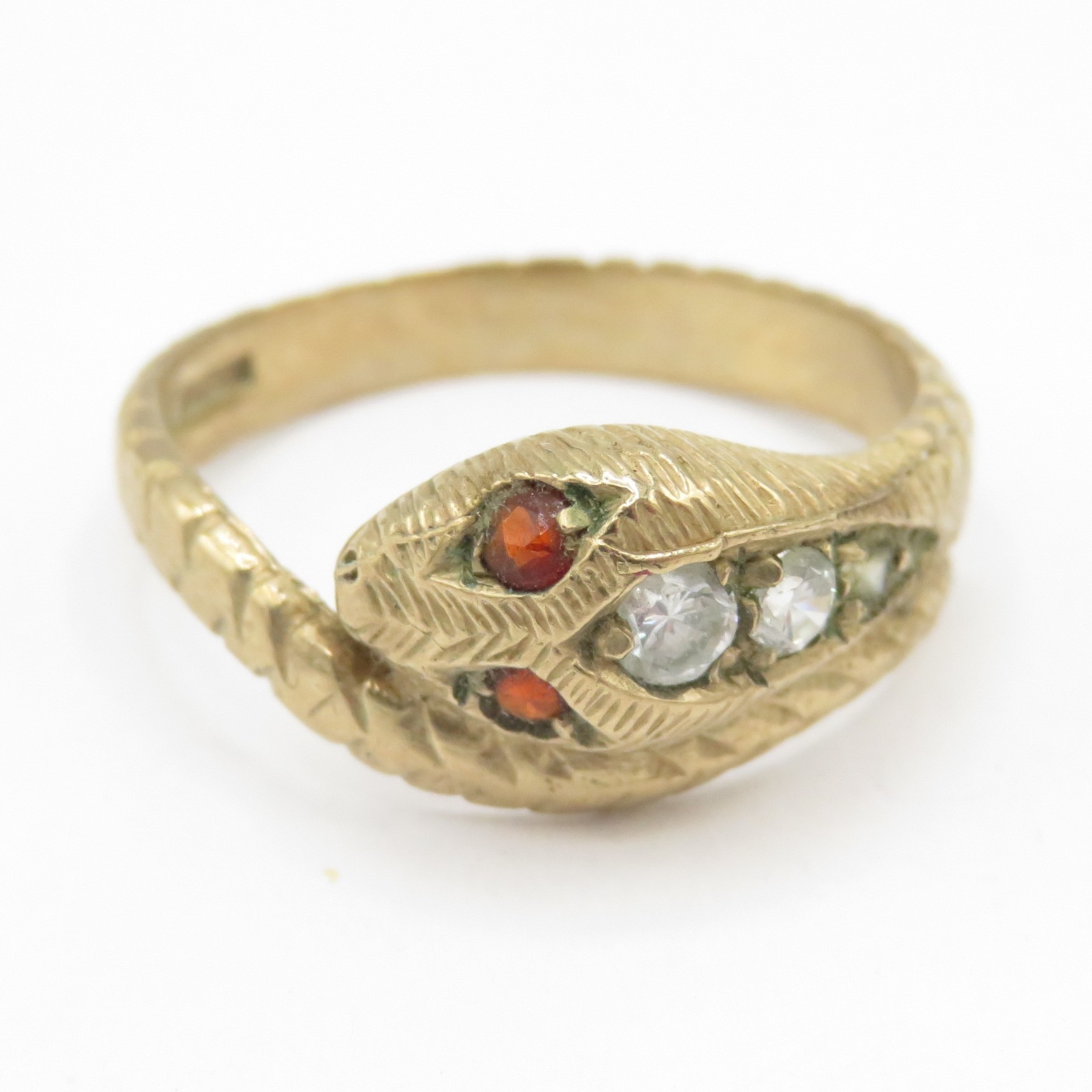 9ct gold snake ring with red gemstone eyes (3.2g) size O