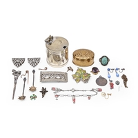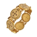 A giltmetal black enamel and foiled paste bracelet, probably French, c1880, of seven round links, 19cm l, marked boar and FR, 46g