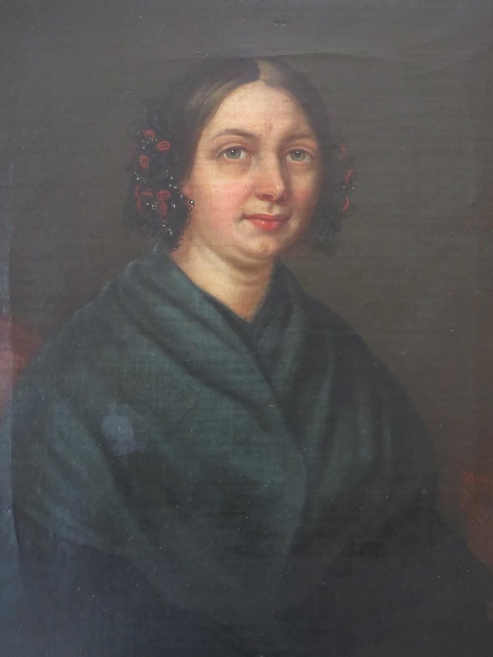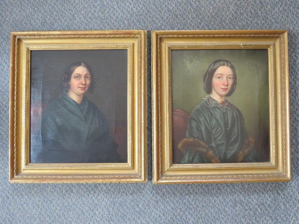 A PAIR OF 19TH CENTURY PORTRAIT STUDIES OF VICTORIAN LADIES, unsigned, oils on canvas, framed, 34 x 29 cm