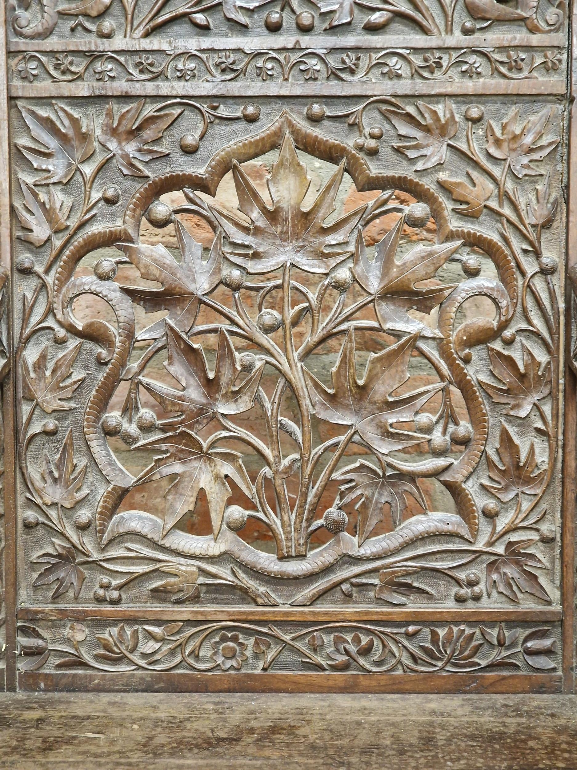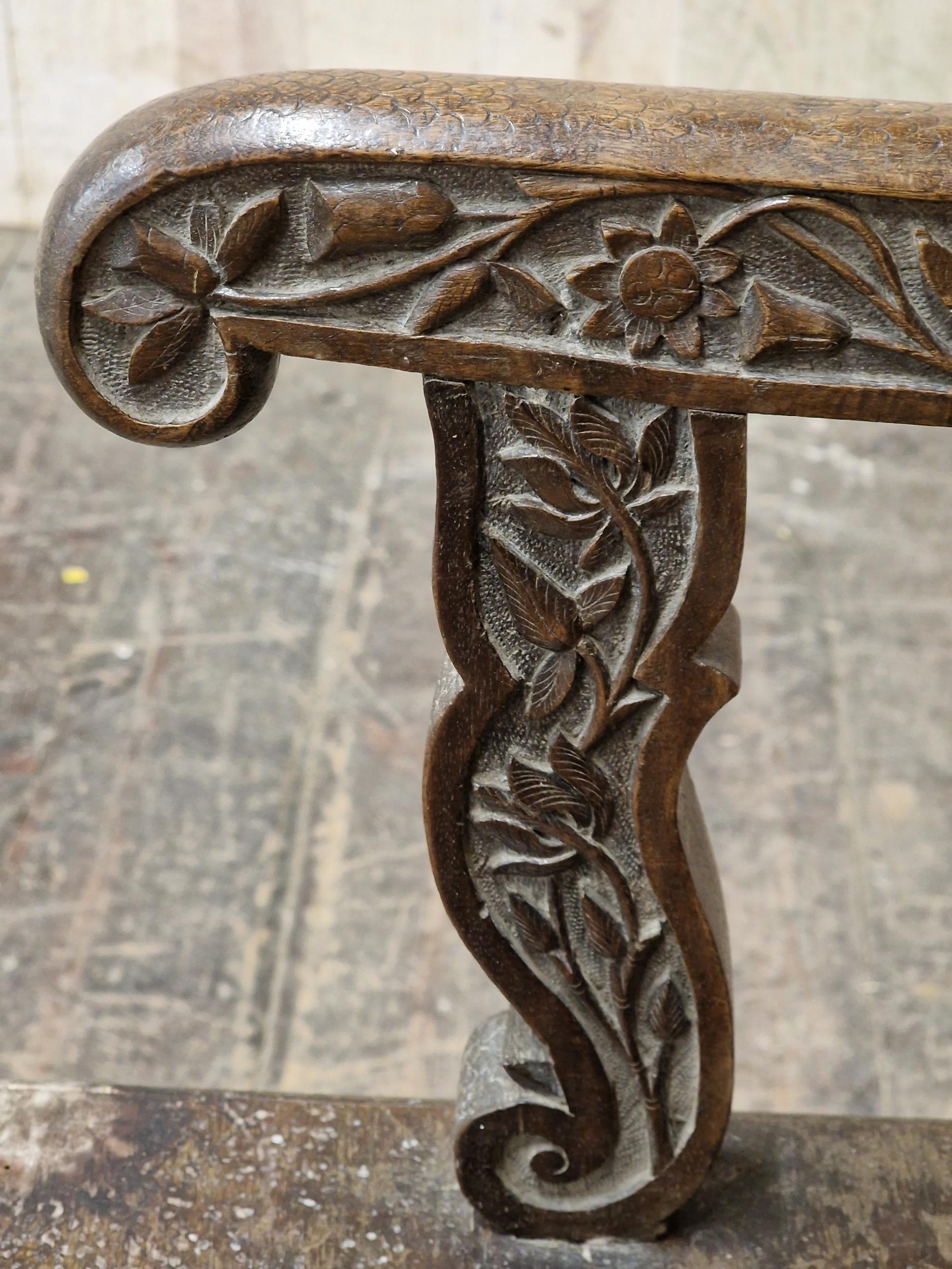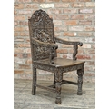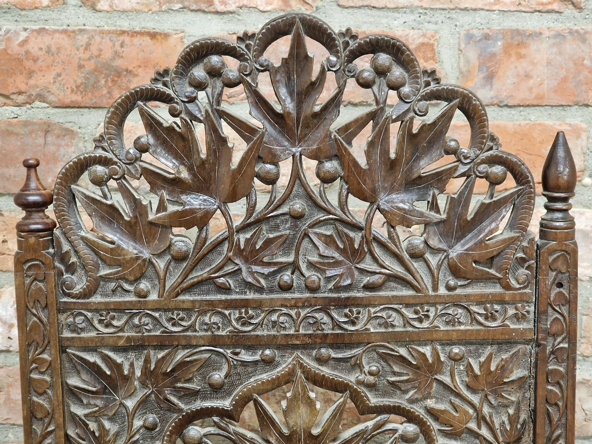 19th century Anglo Indian armchair, profusely carved with pierced floral detail, raised on turned supports, H 111cm x W 54cm x D 54cm