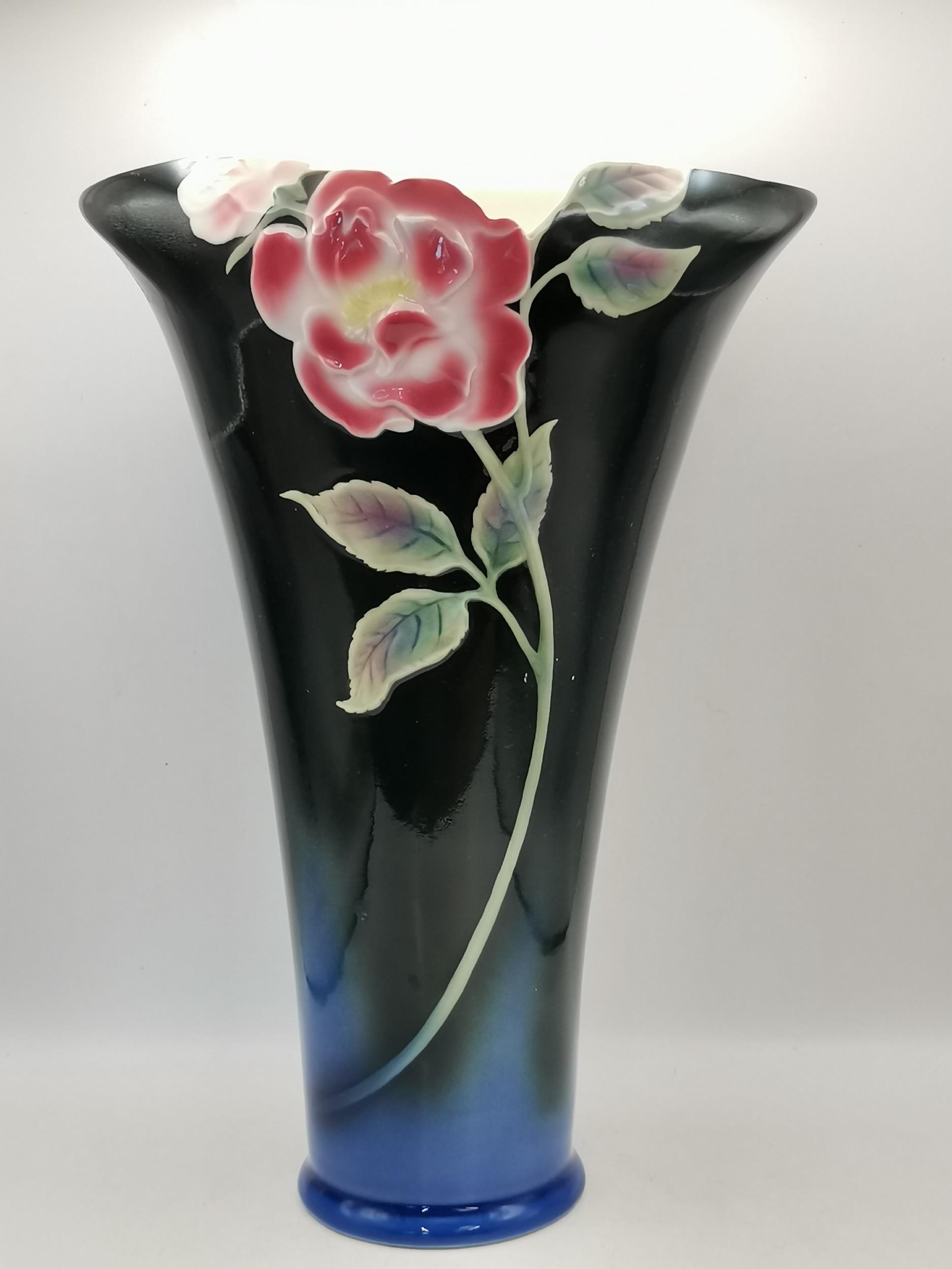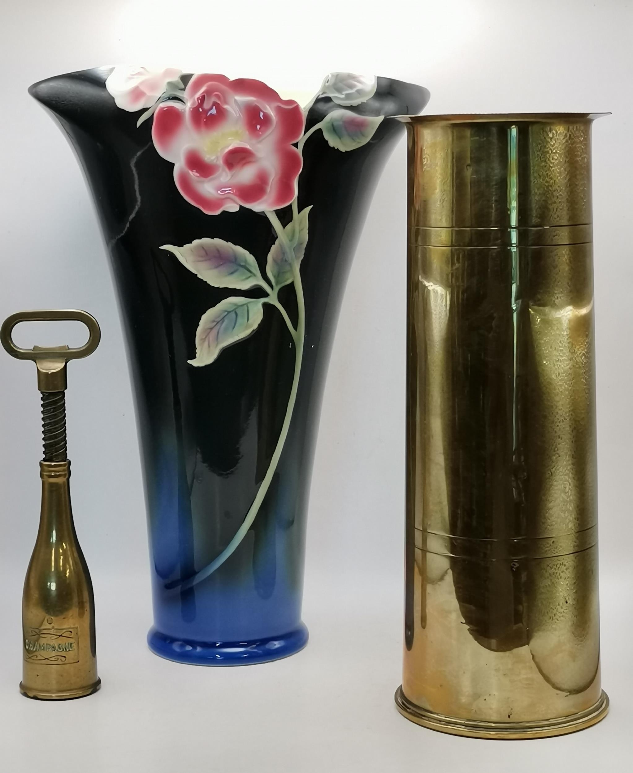 Franz pottery Vase H32cm plus Brass Trench art including a cork screw and vase