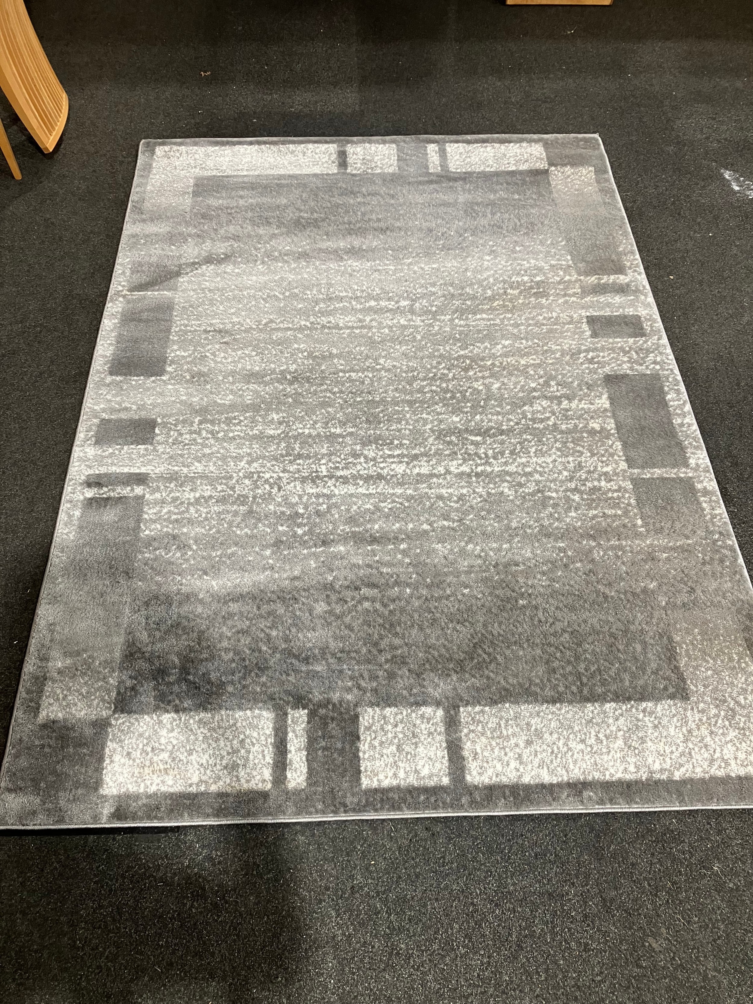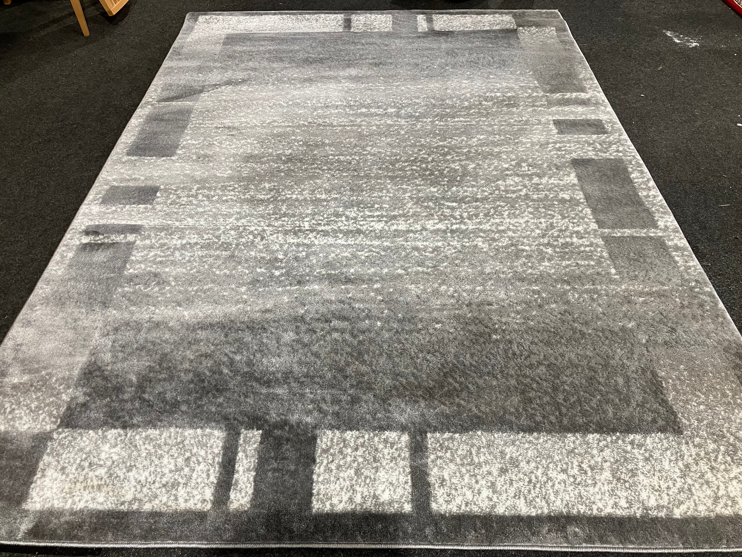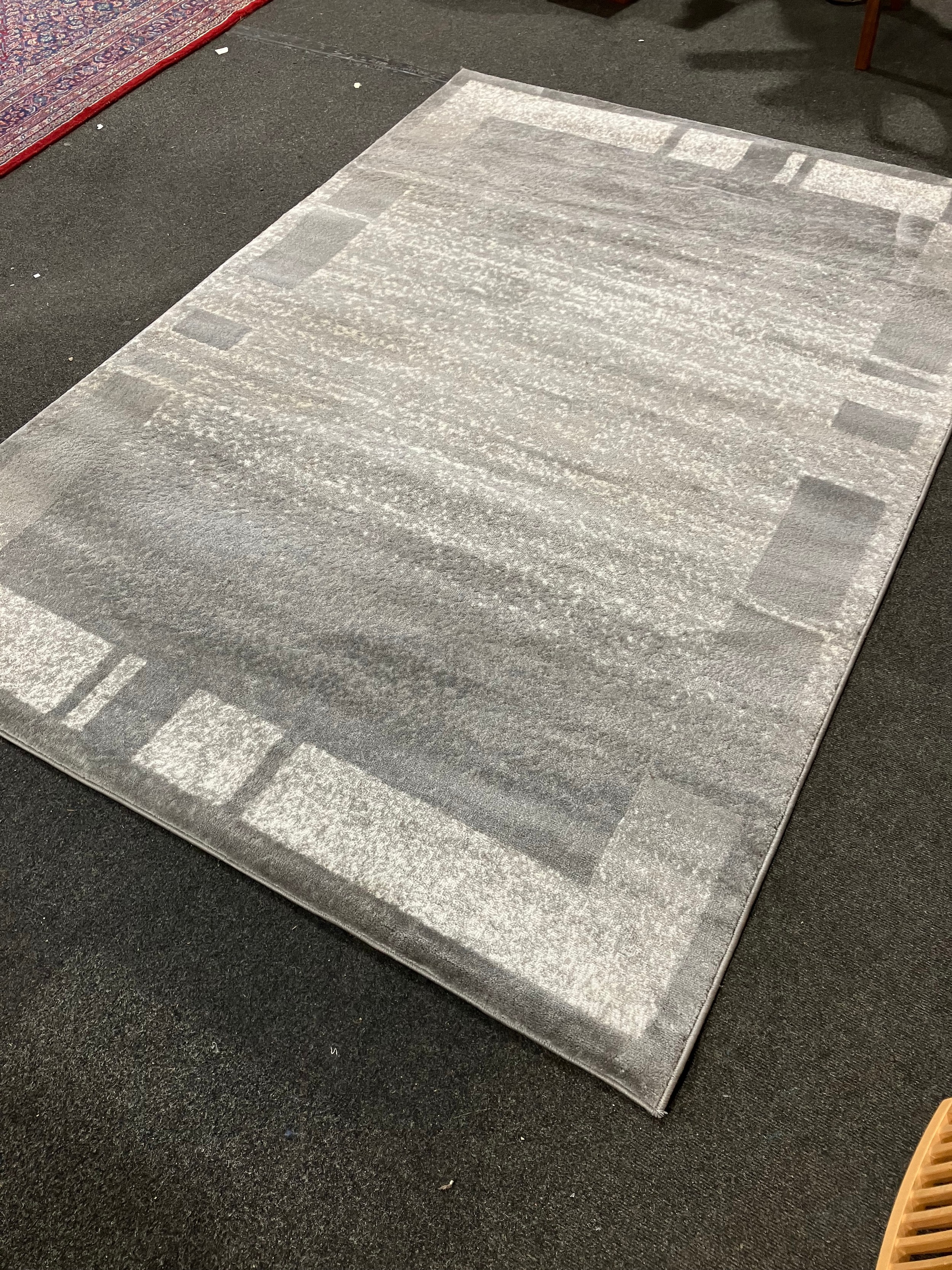 A silver and grey ground rug, approximately 7'5" x 5'4"