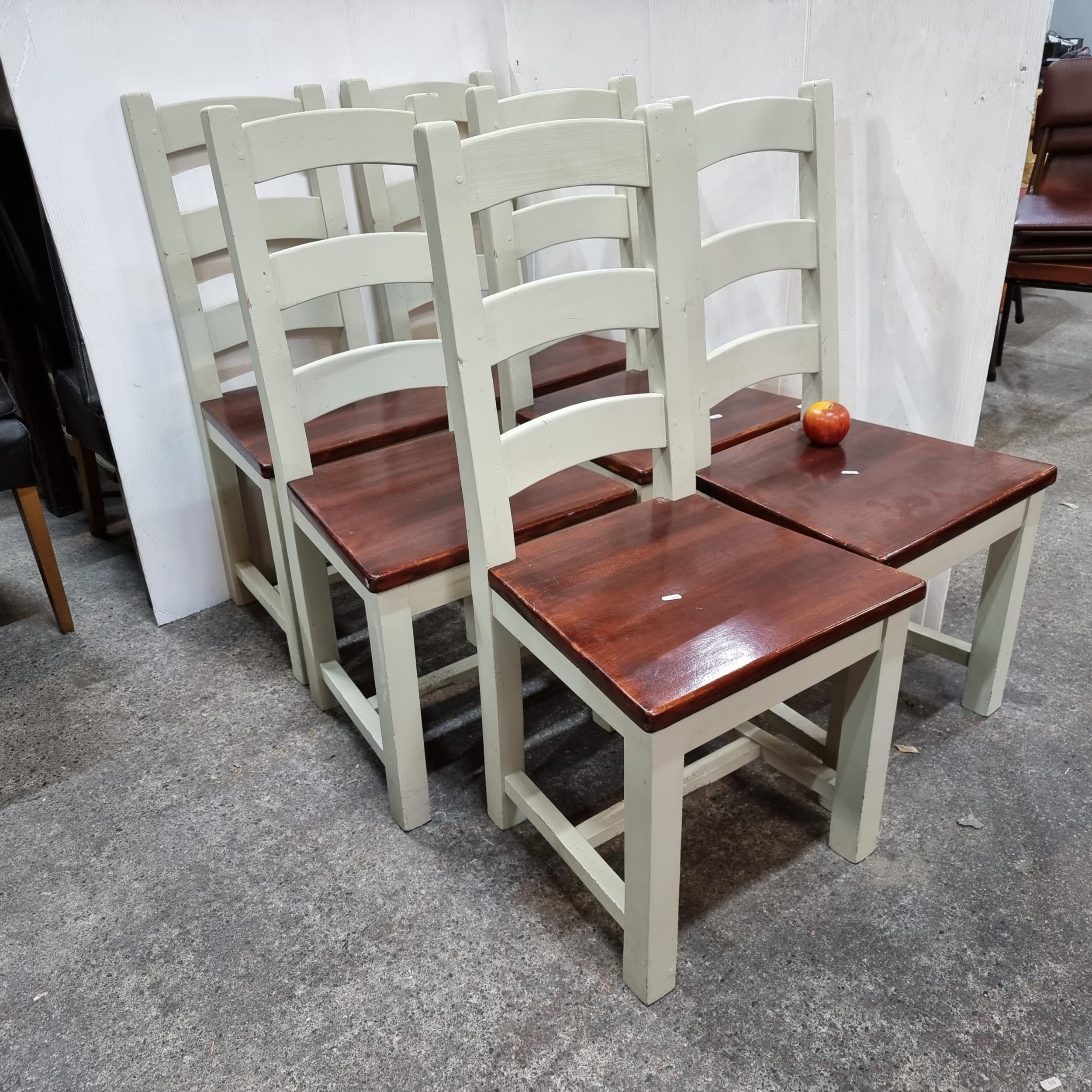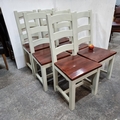 Six heavy country style kitchen dining chairs with ladder backs. Well built.