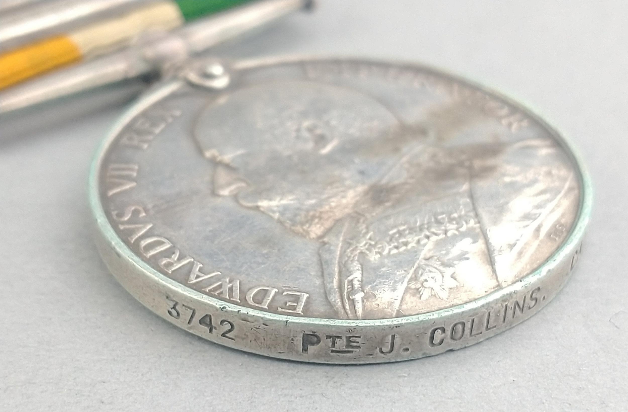 EDWARD VII war medal King's South Africa with 1901 and 1902 clasps awarded to 3742 Pte. J. Collins CAMERON HIGHLANDERS