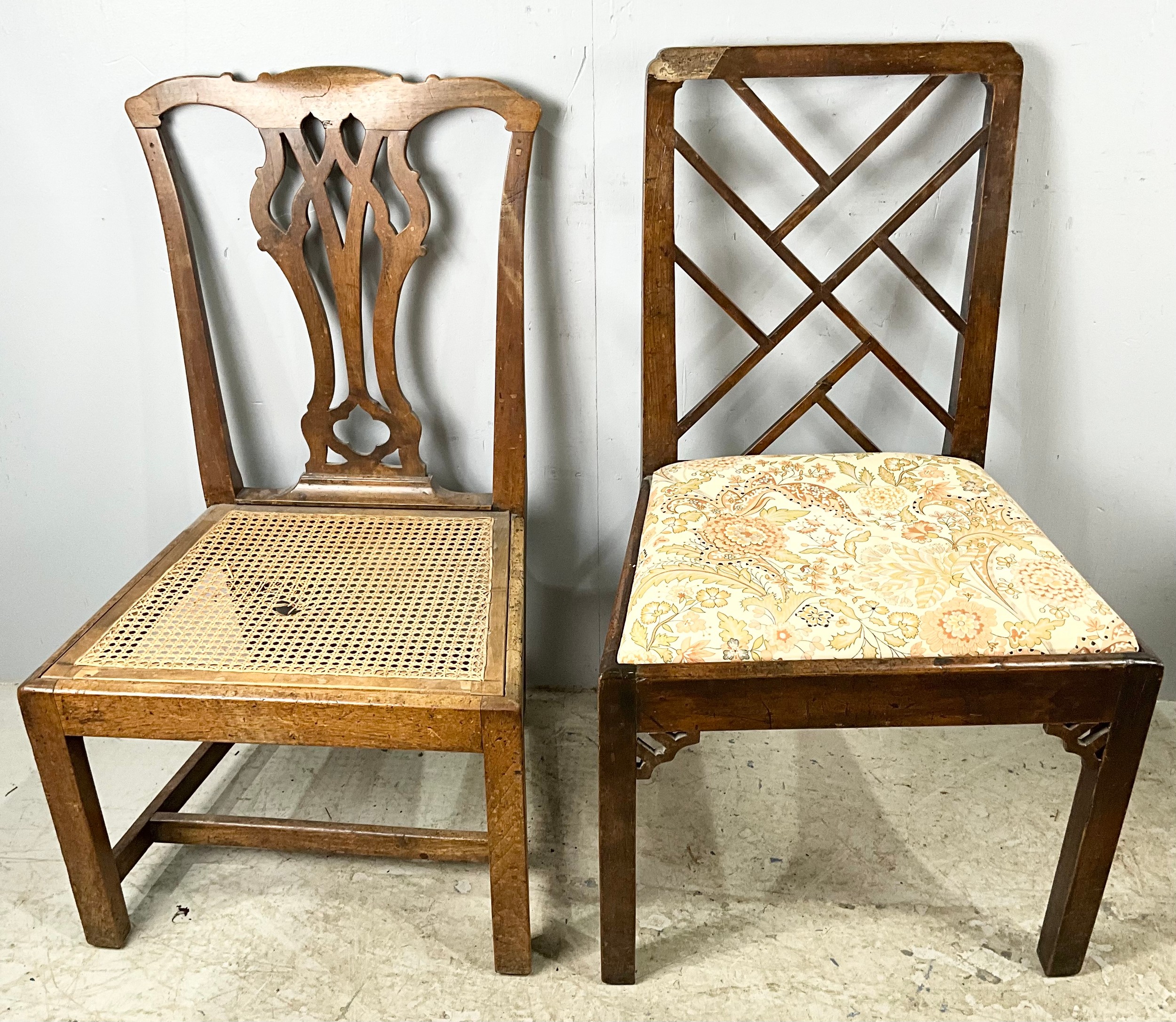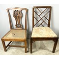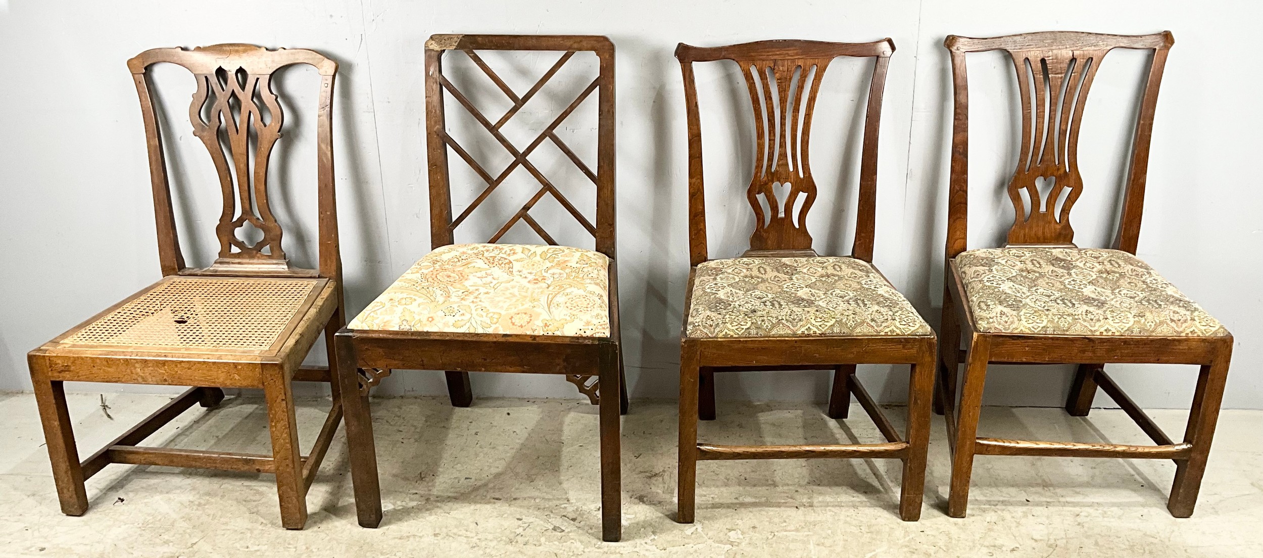 FIVE MIXED ANTIQUE DINING CHAIRS WITH DROP IN SEATS INC CHIPPENDALE STYLE SEE EXTRA IMAGE