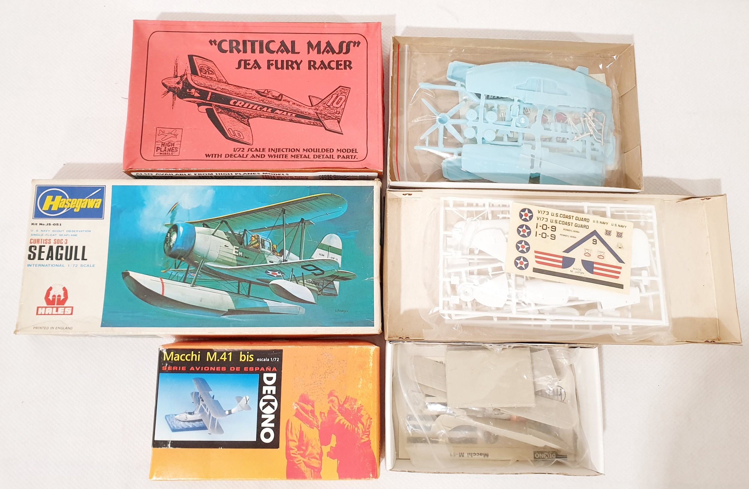 Four 1;48 scale model plane kits 'F2G Super Corsar'. 'Macchi M.41 bis', 'Critical Mass Sea Fury Racer' & a 'Curtiss SOC-3'.