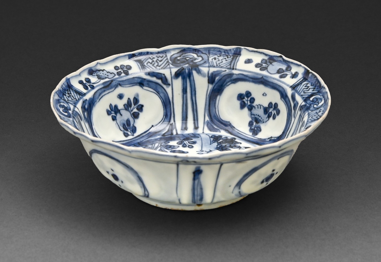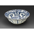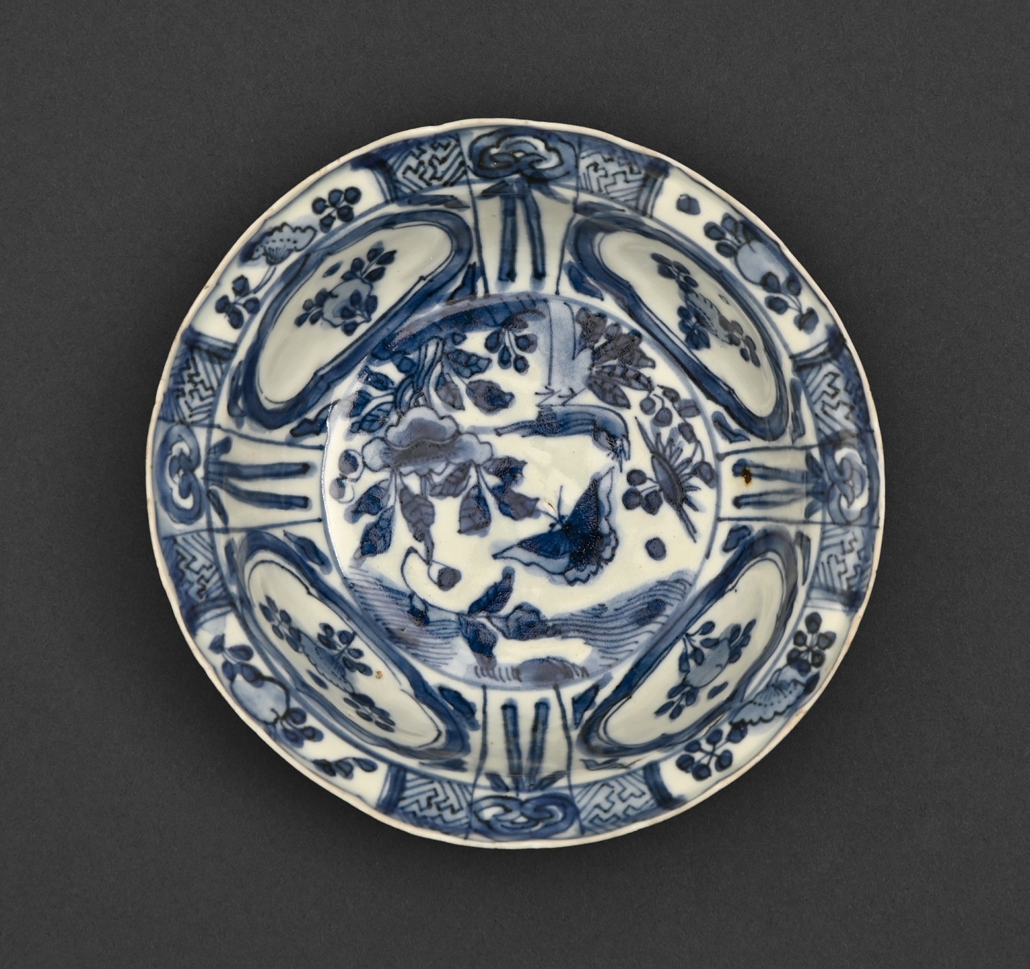 A Chinese 'Kraak' porcelain bowl, Wanli period, painted with a bird and butterfly among flowers, 14.2cm diam