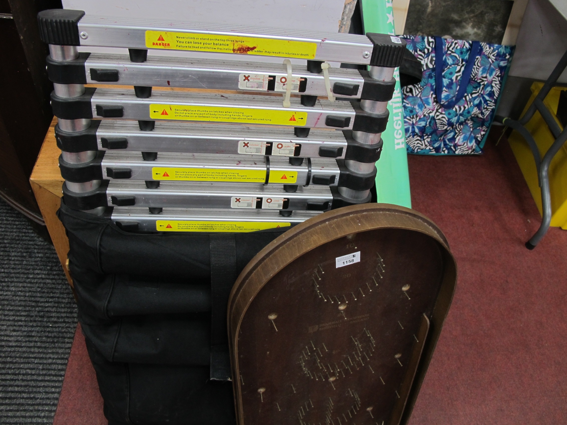 A folding portable telescopic ladder along with a 'Bramhall woodware' vintage Bagatelle board. (2)