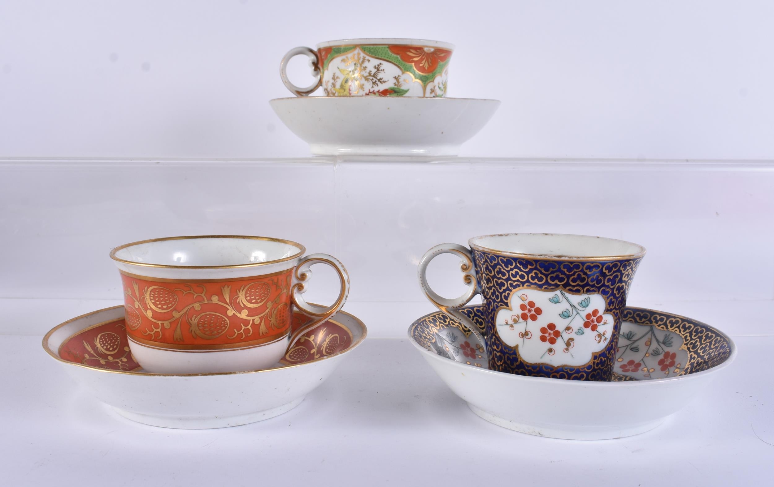 THREE EARLY 19TH CENTURY CHAMBERLAINS WORCESTER CUPS AND SAUCERS. (6)