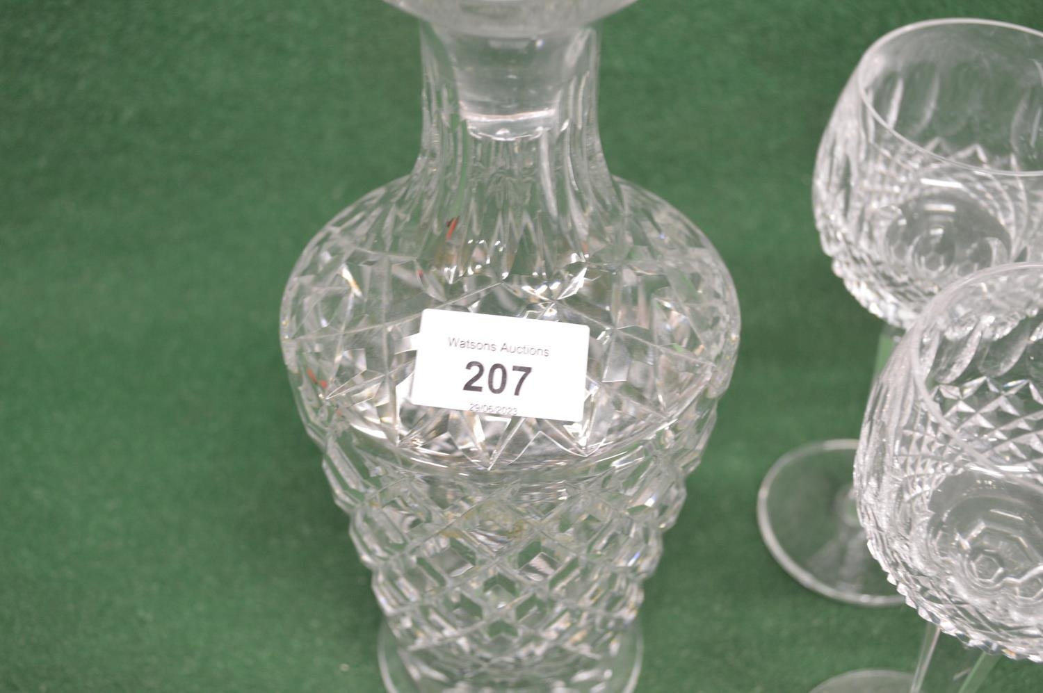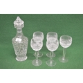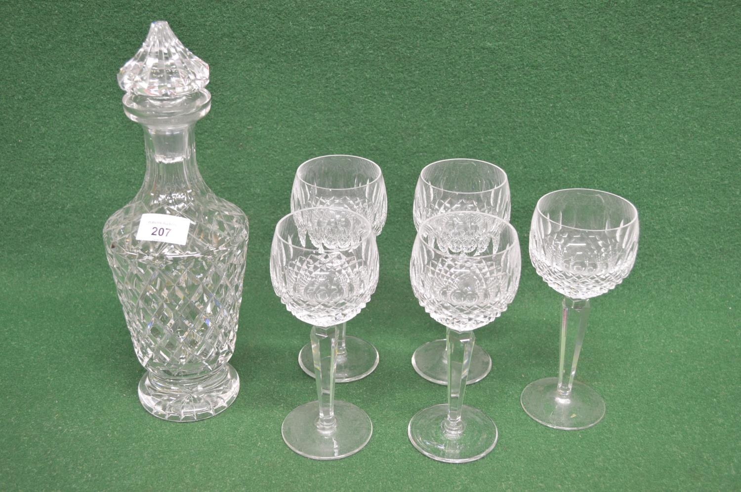 Waterford Crystal cut glass decanter together with set of five wine glasses