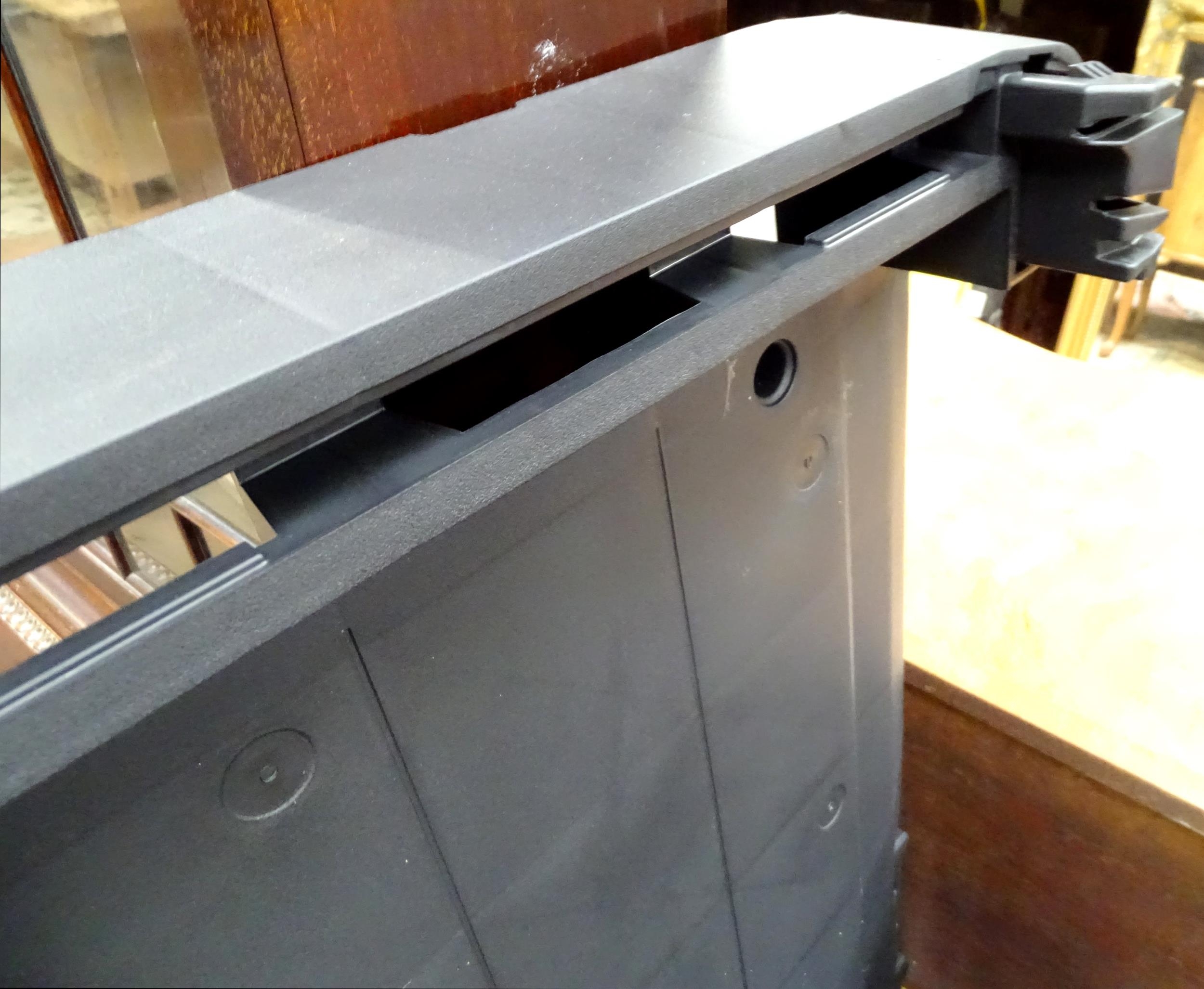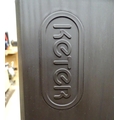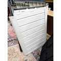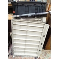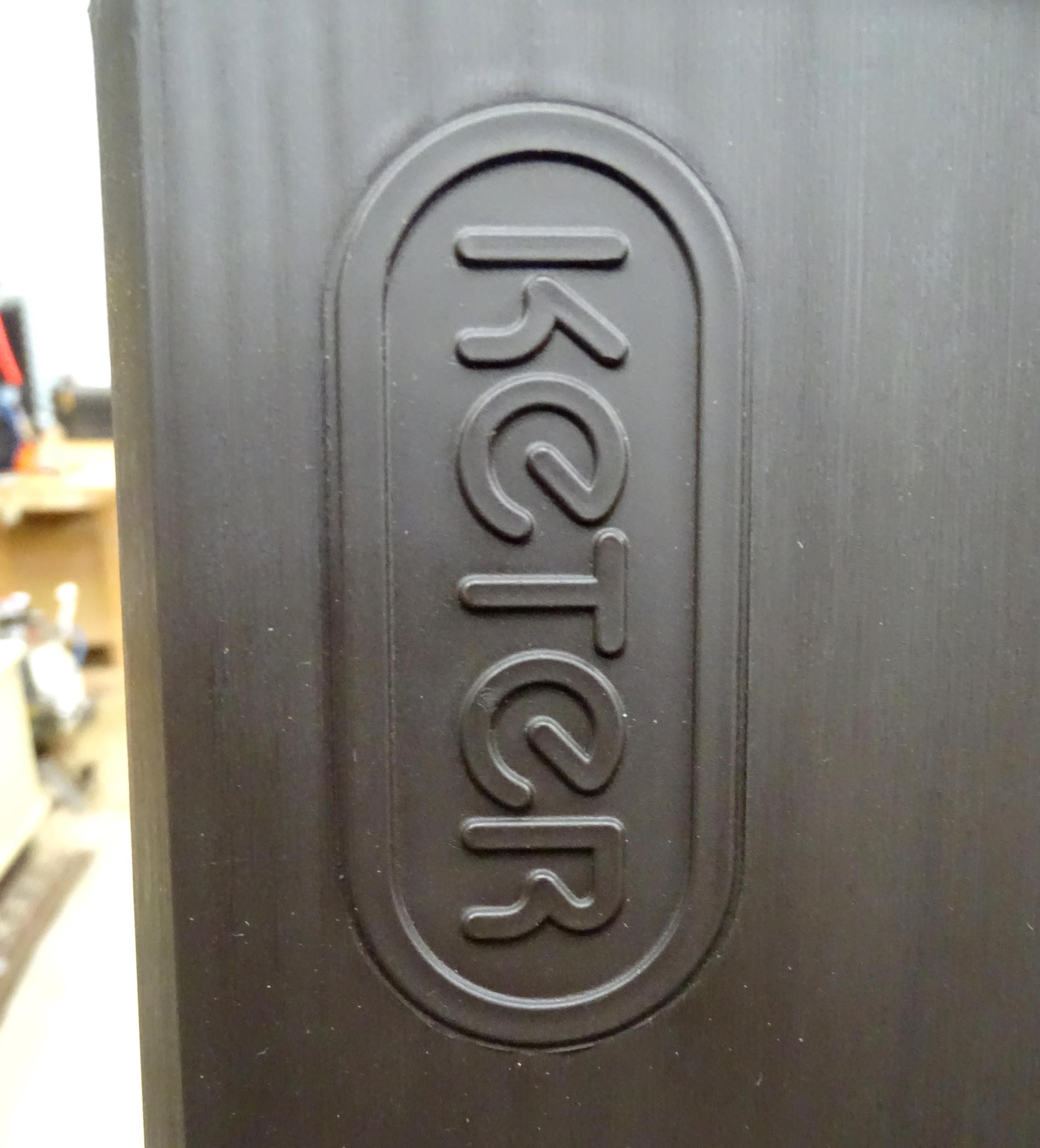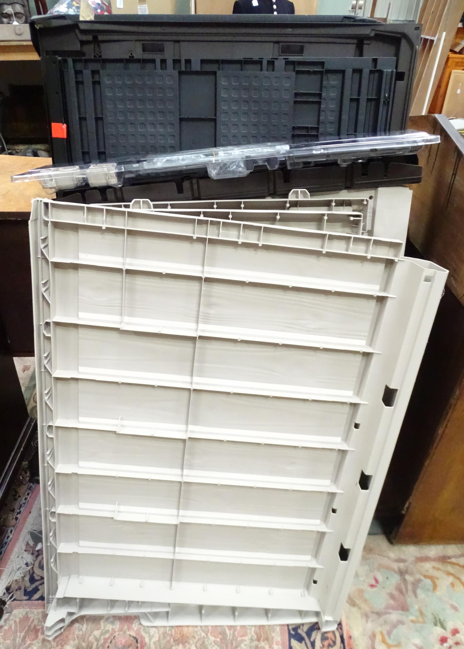 A Keter outdoor storage box, disassembled, the largest section approx 57" x 32 1/2"