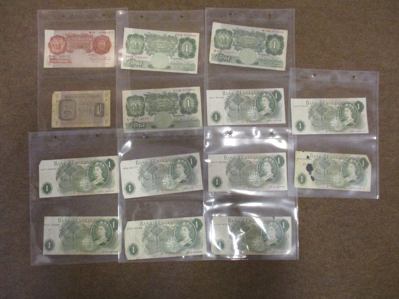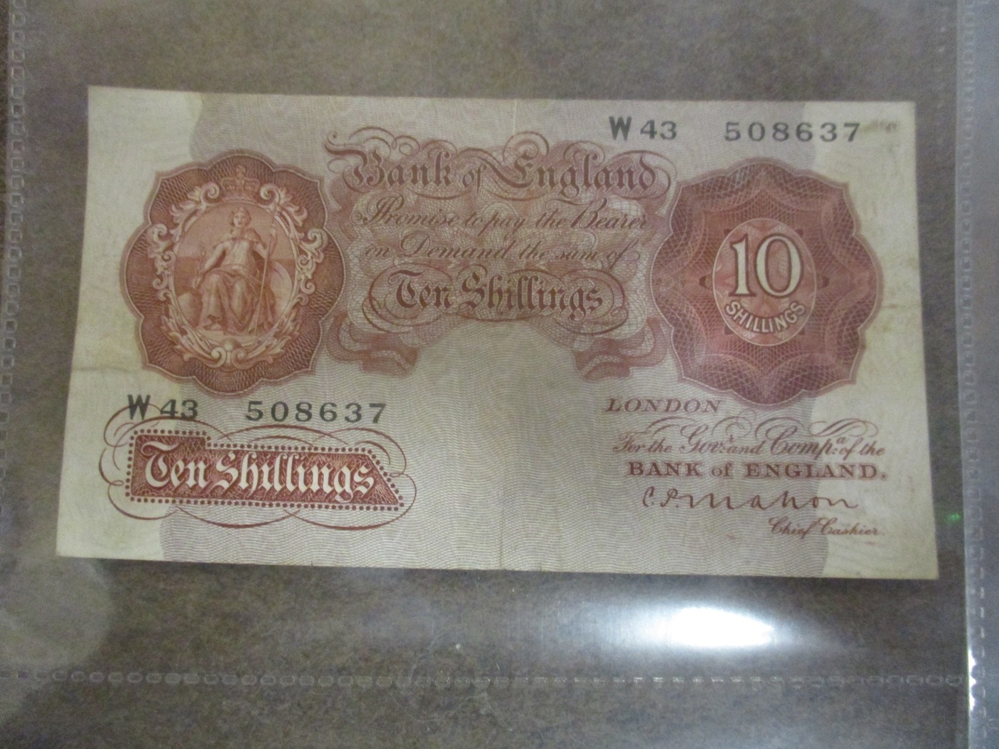 C.P. Mahon. 10/- W43 508637 very fine (Duggleby B210), plus range of £1 banknotes in plastic album leaves, generally fine to very fine. Qty 14 (R)
