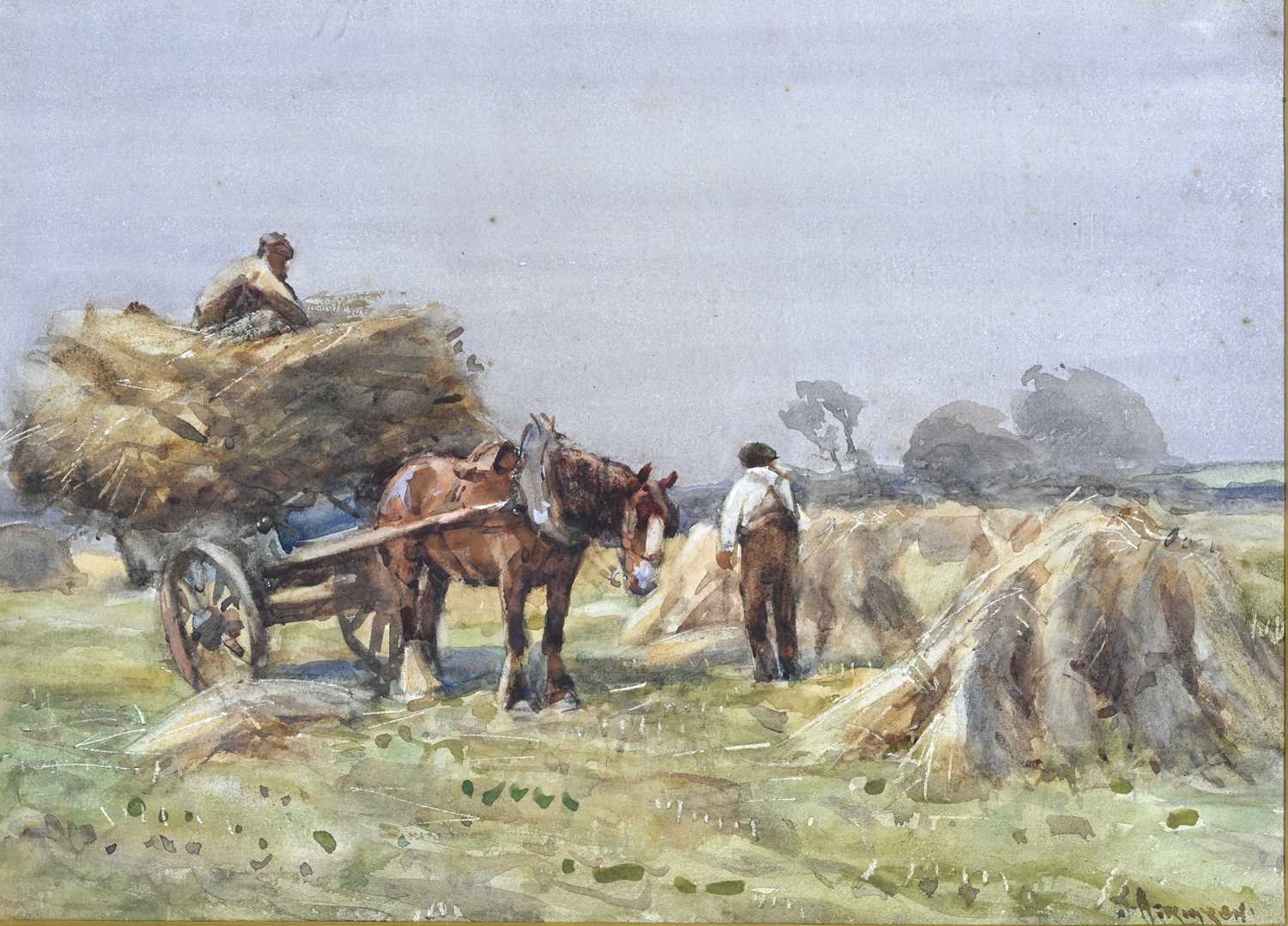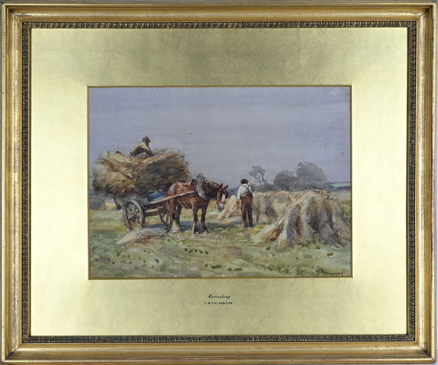 John Atkinson (British, 1863-1924), Harvesting, signed l.r., watercolour, 24 by 33cm, gilt frame