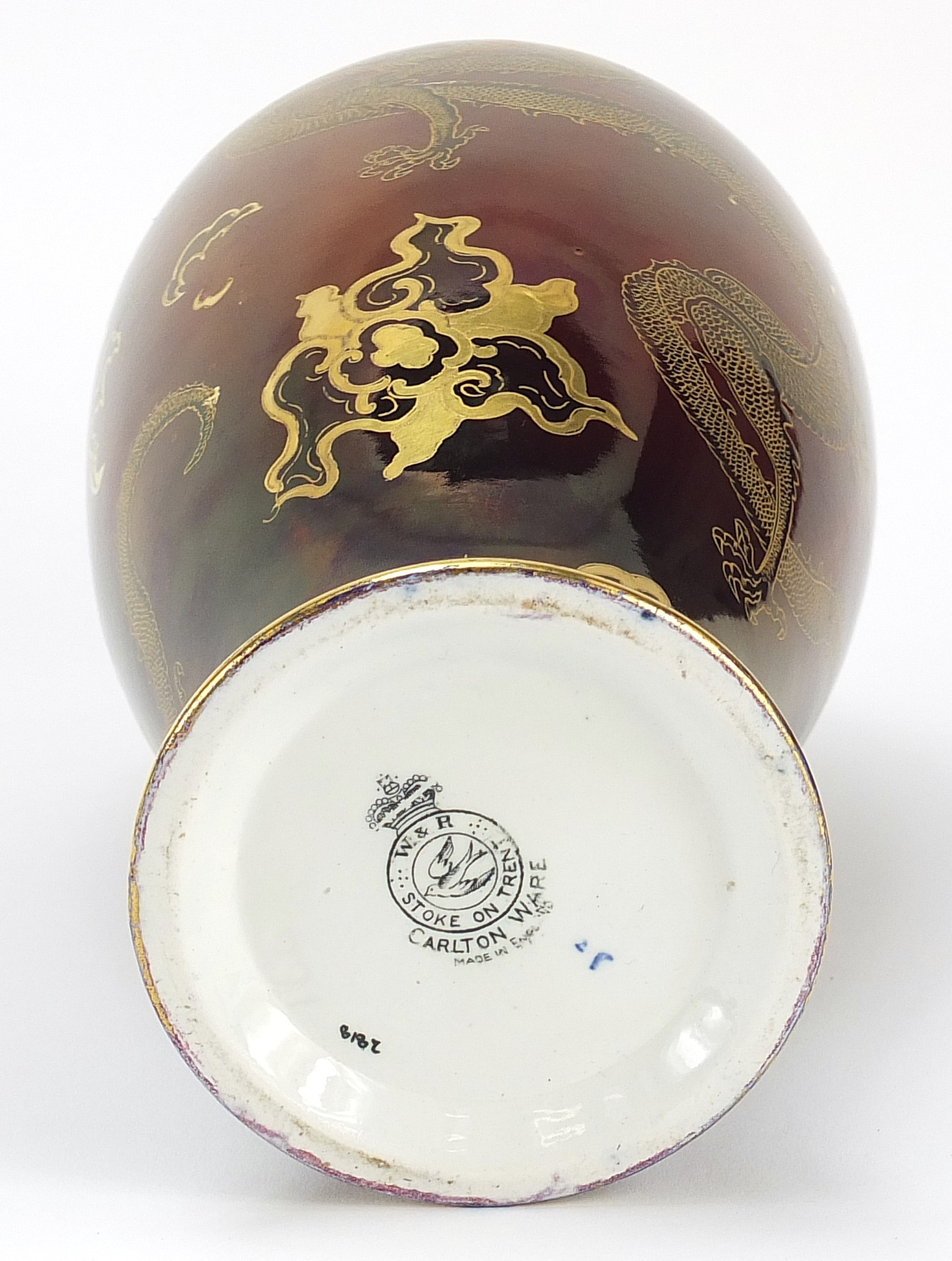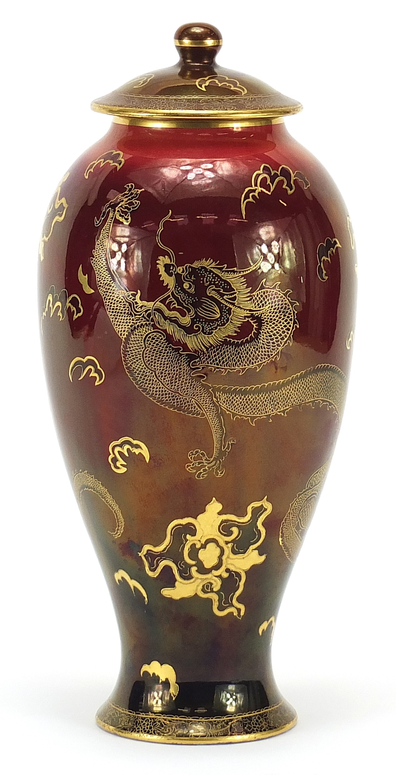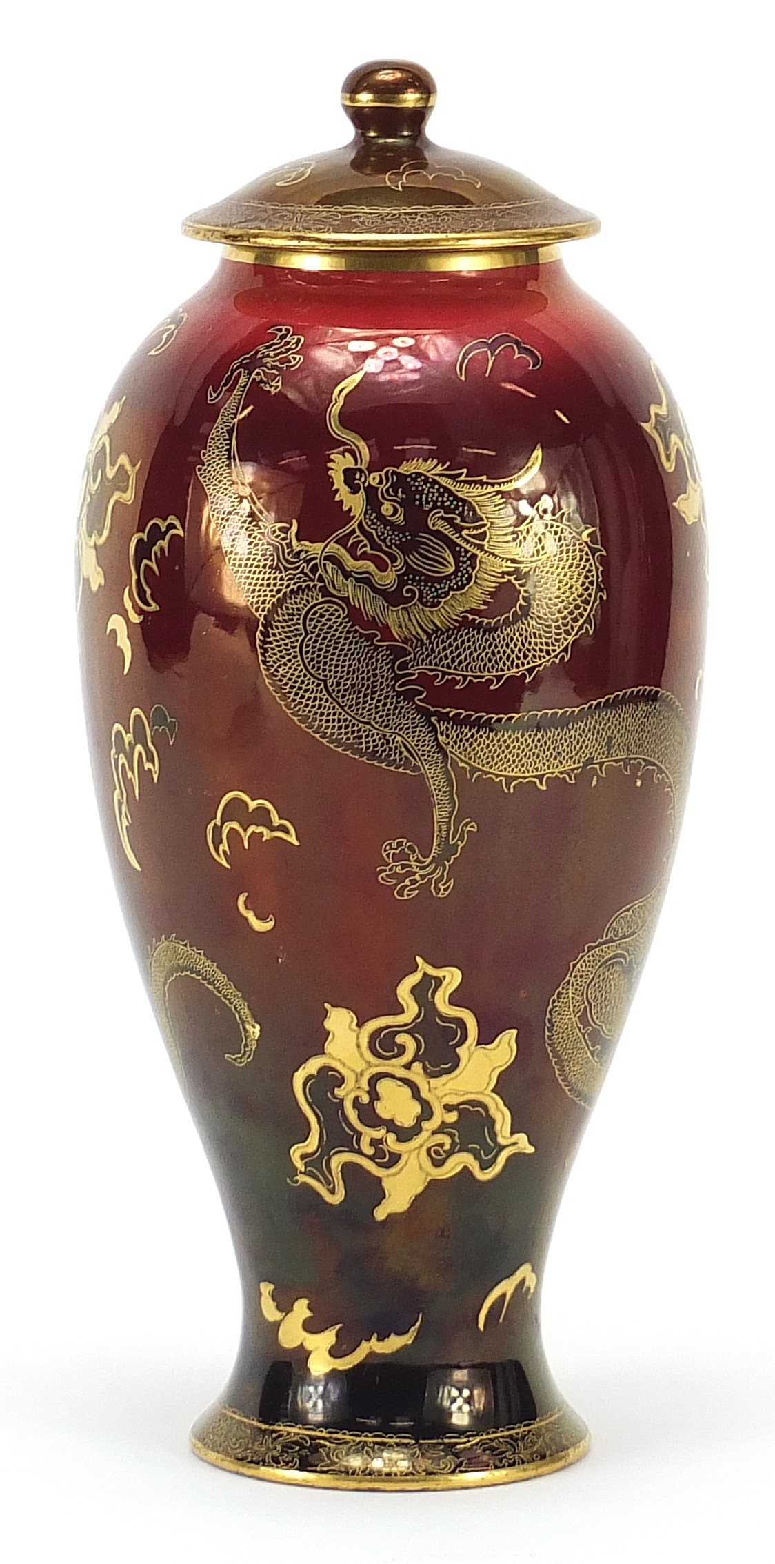 Carlton Ware baluster vase and cover gilded in the dragon and cloud pattern, numbered 2818, 30.5cm high