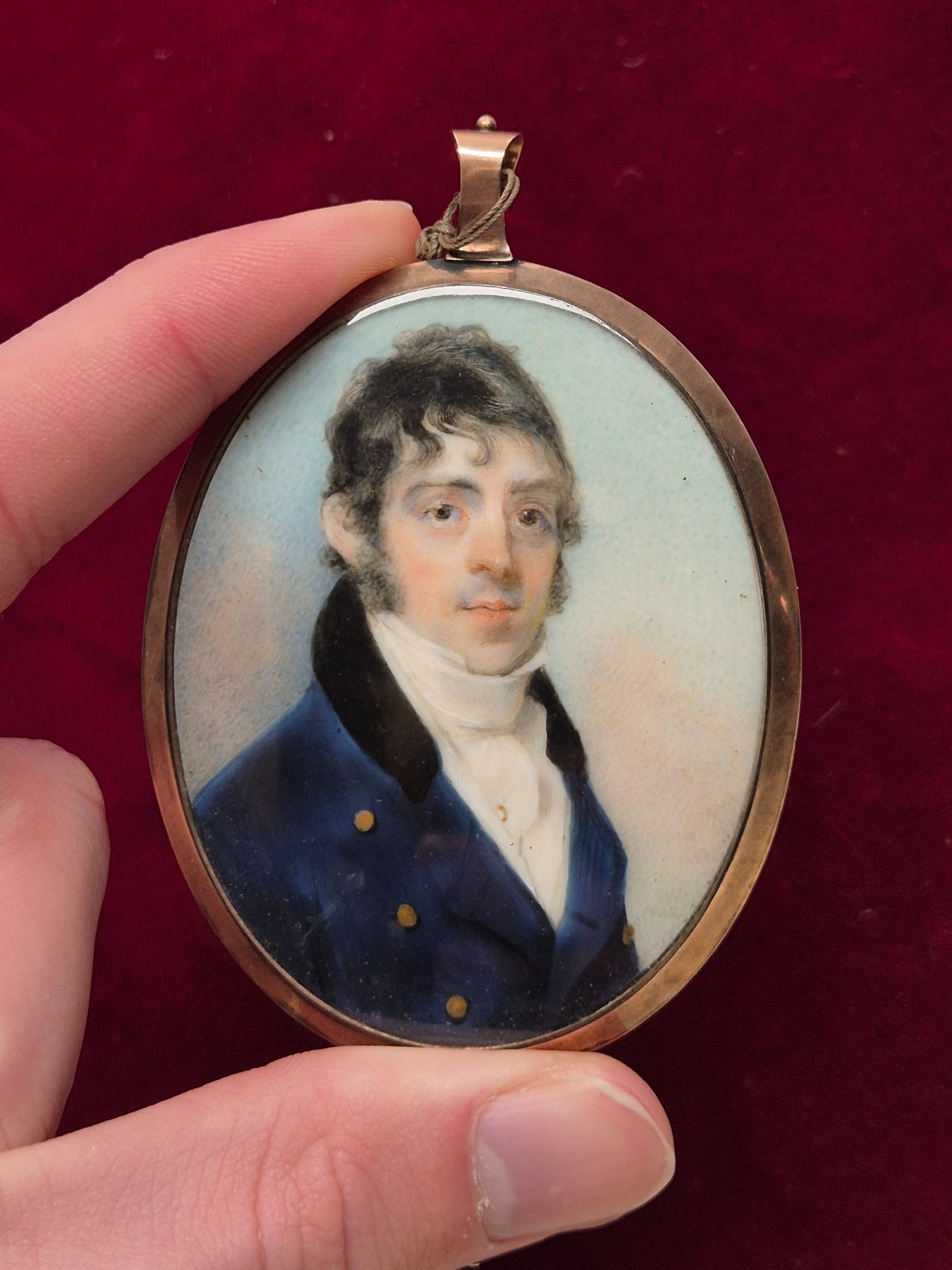 Horace Hone (1754-1825) A Georgian Miniature Portrait of a Gentleman on Ivory, Decorated with Hair Work to the Reverse in a Tested Gold Frame. Initialed "HH" and Dated 1802