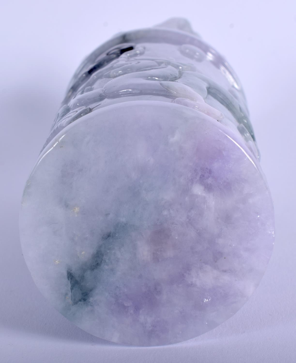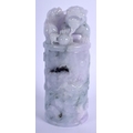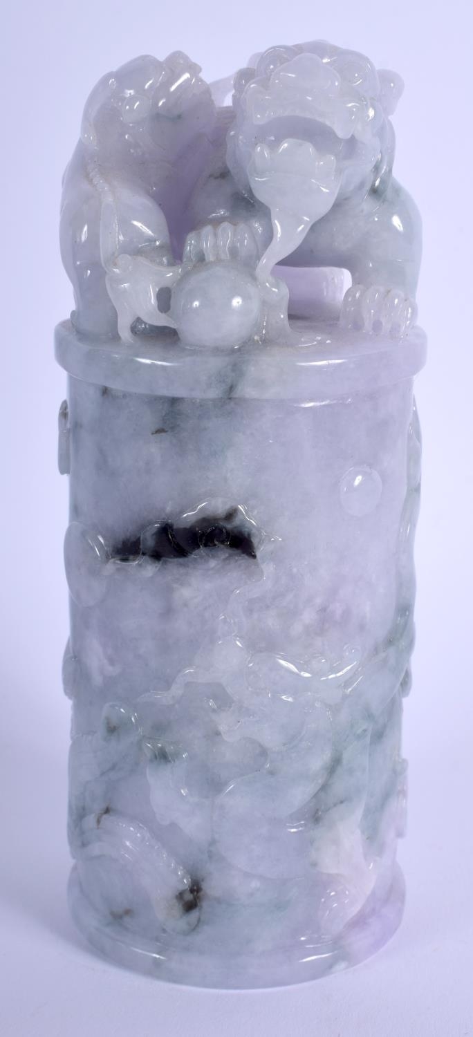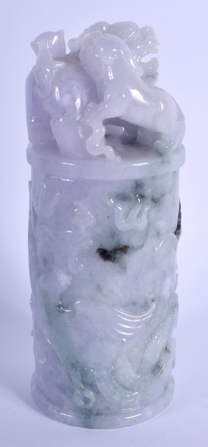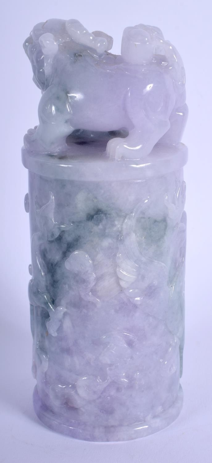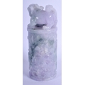 A CHINESE CARVED LAVENDER JADEITE DRAGON SEAL 20th Century, with buddhistic lion finial. 15 cm high.