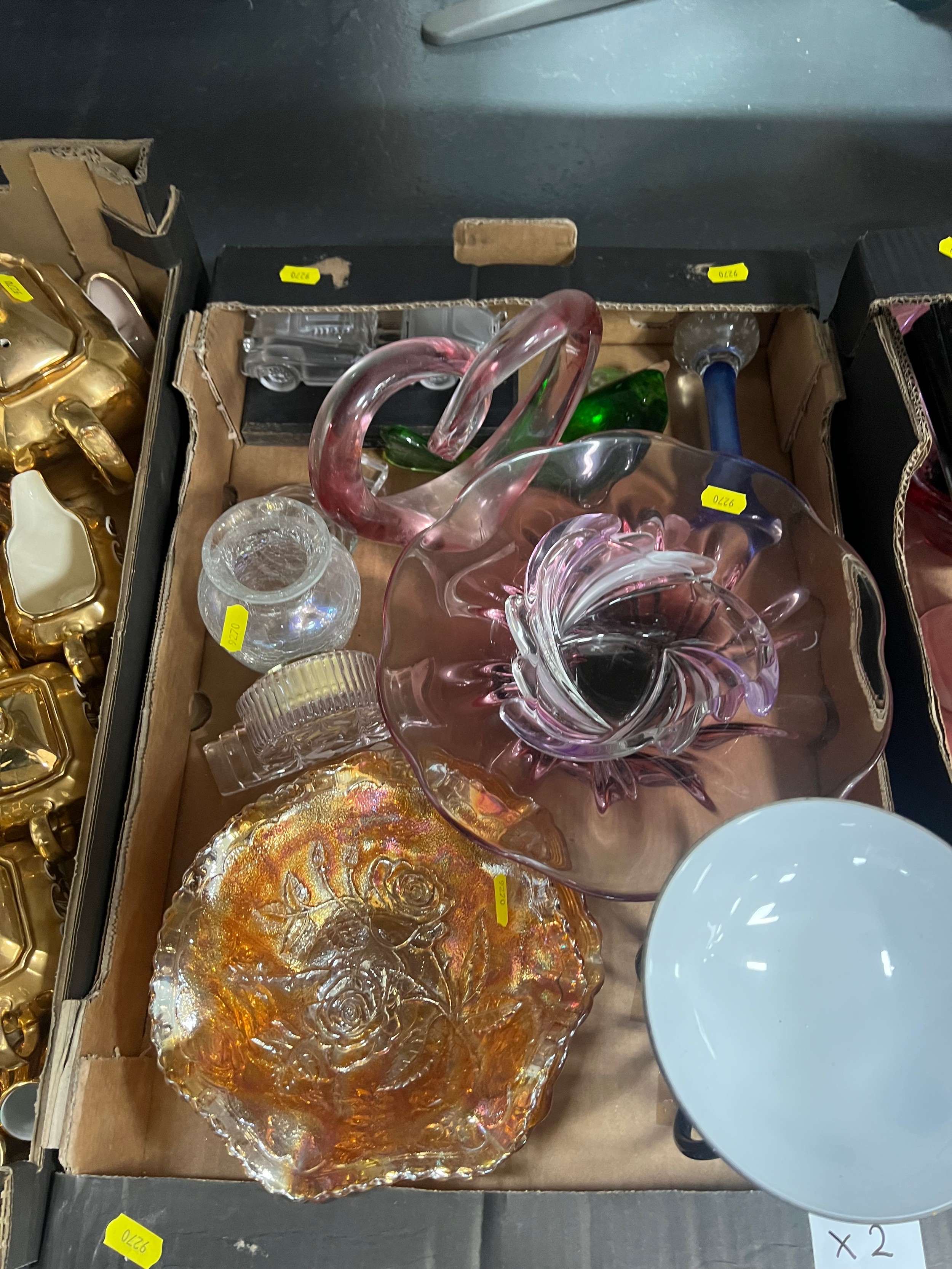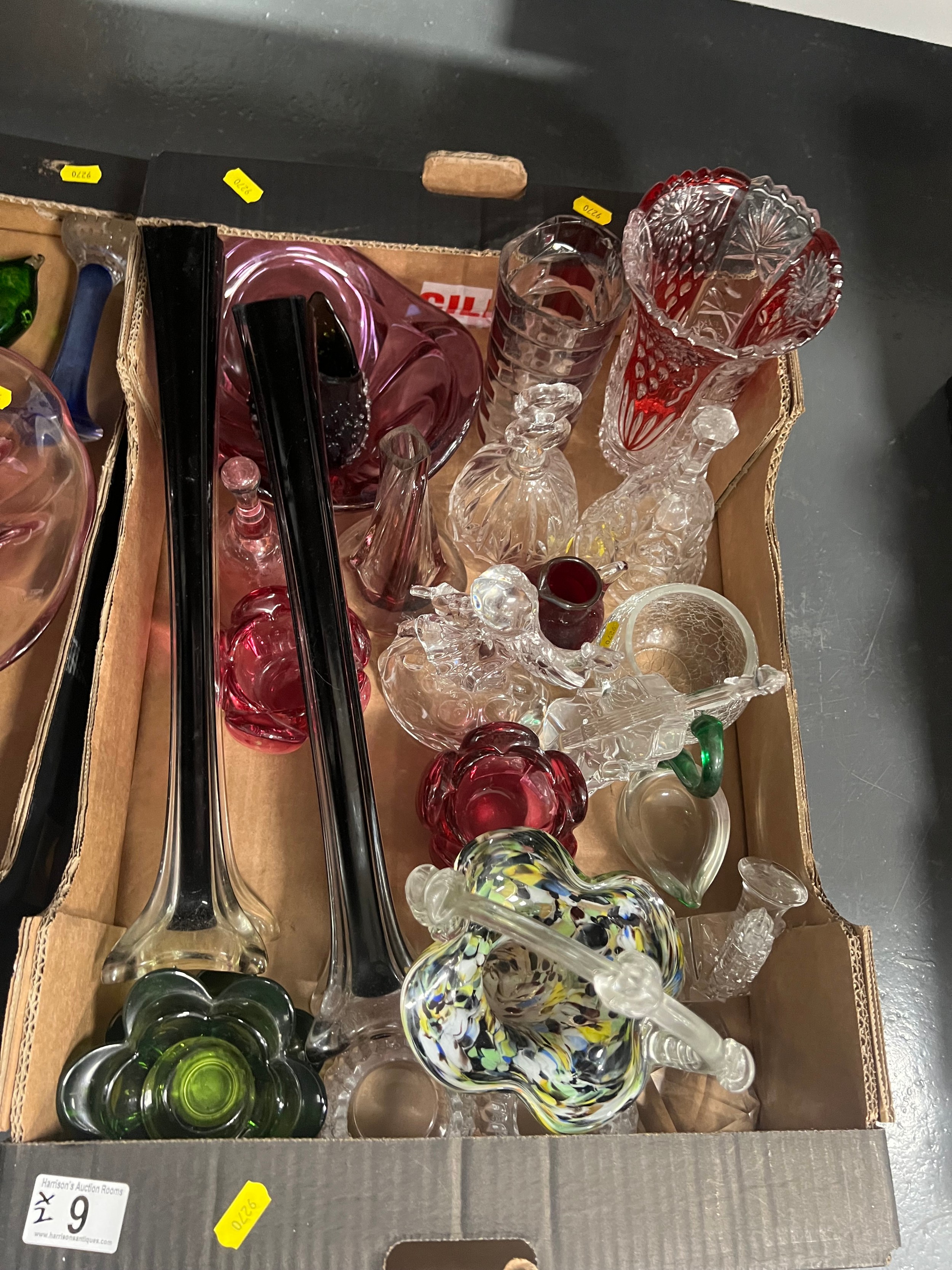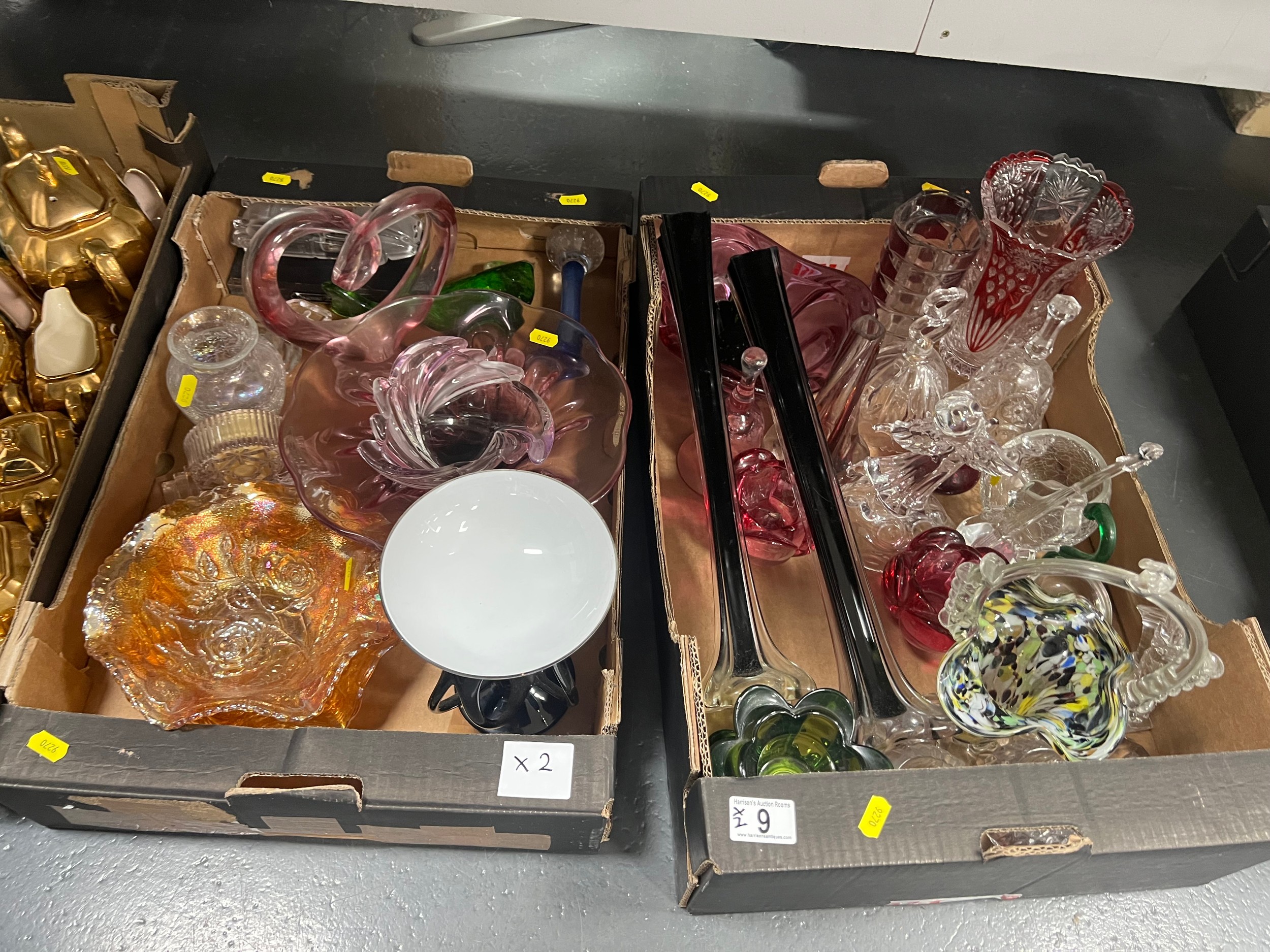 2 boxes vintage coloured glass