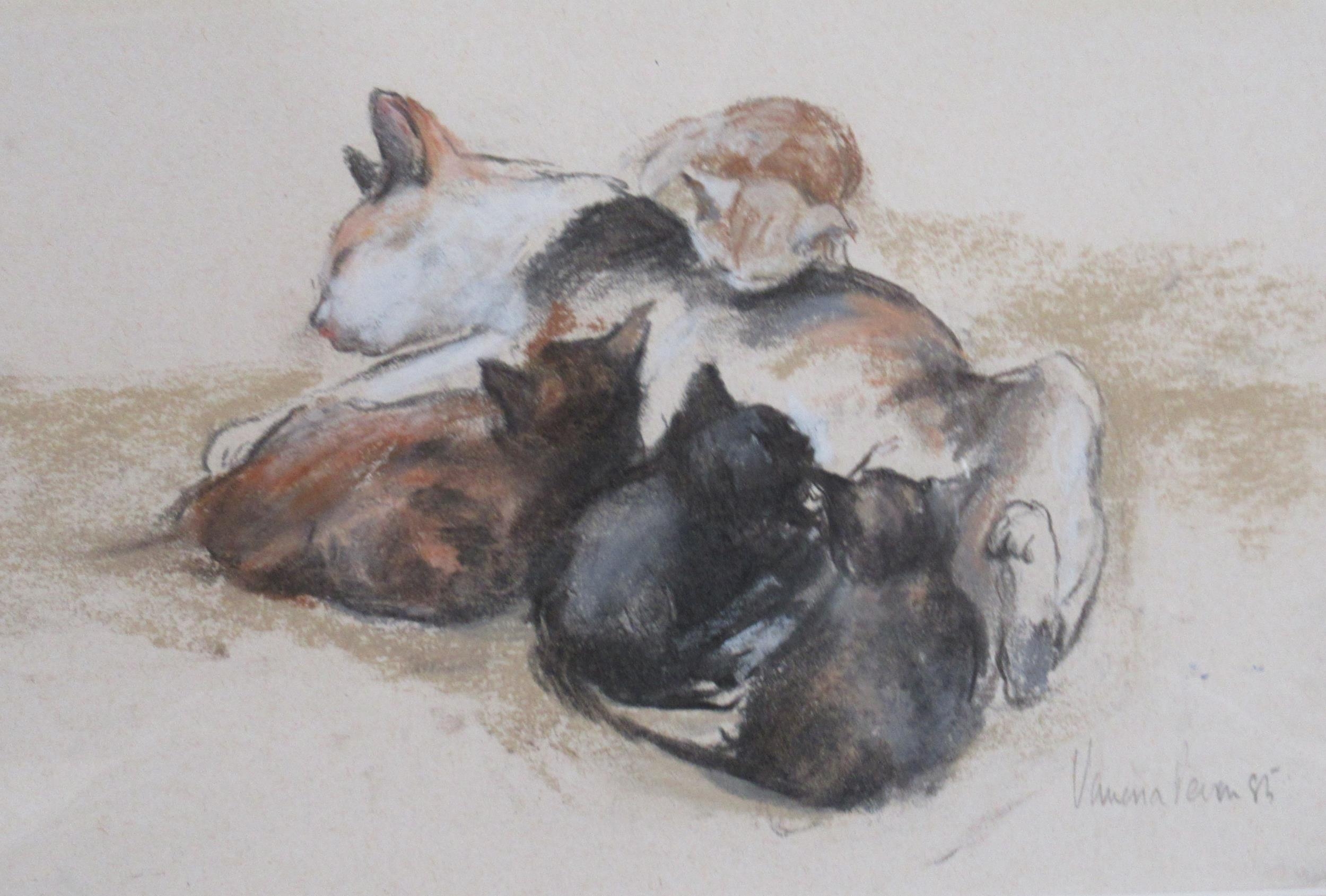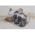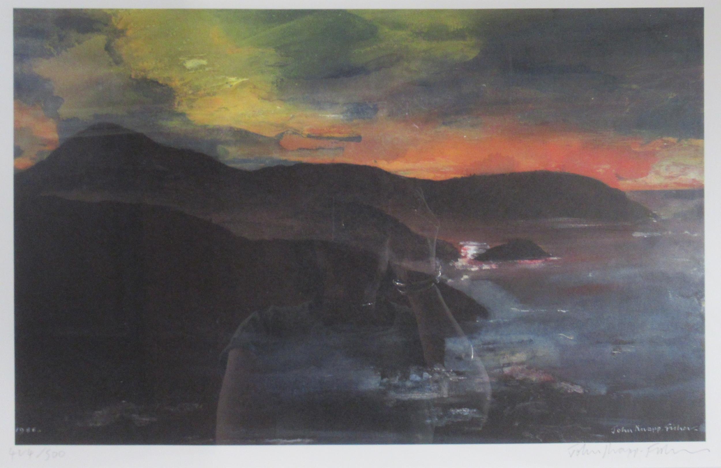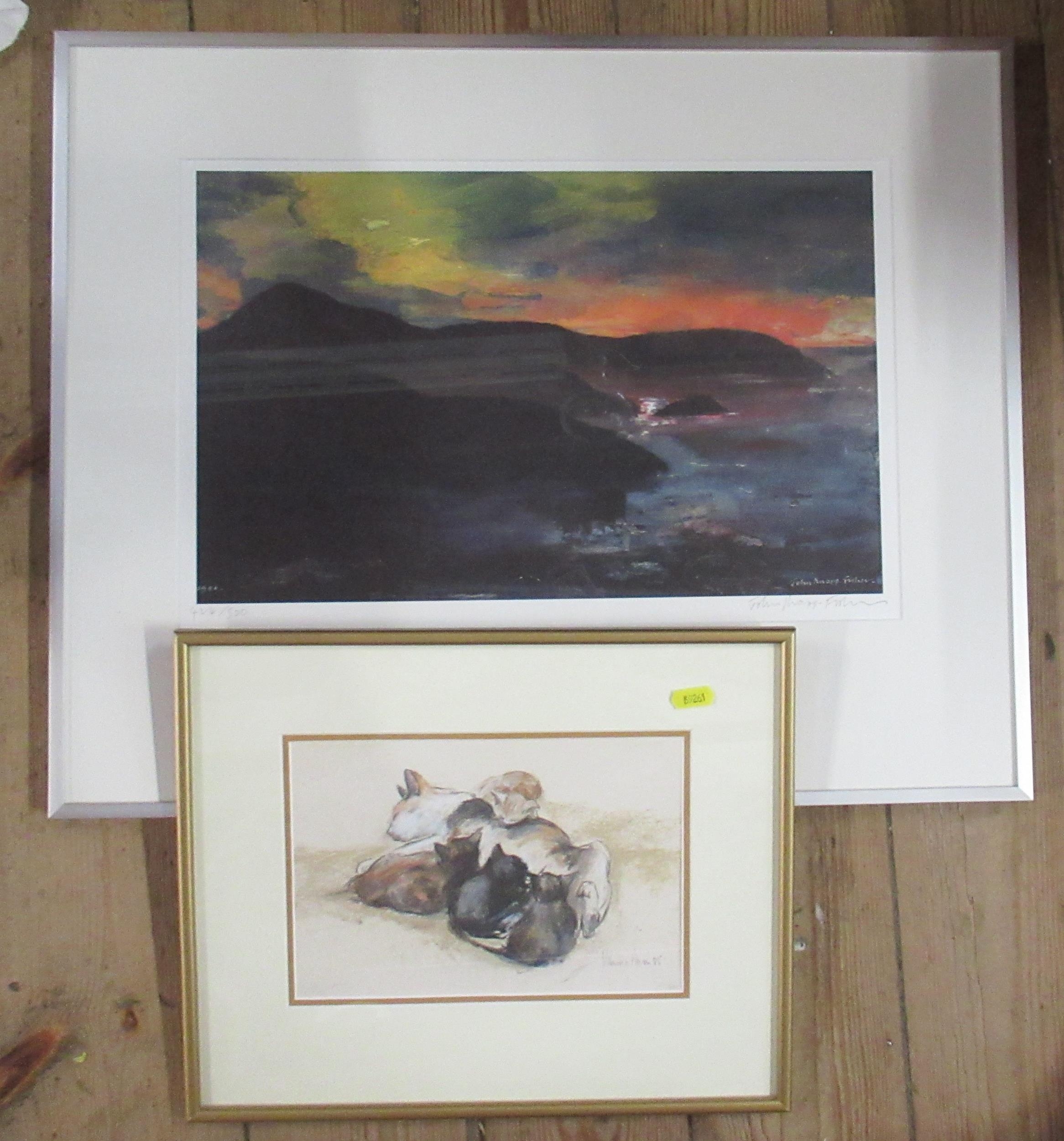 John Knapp-Fisher, limited edition colour print, landscape, 12ins x 17.5ins, together with a colour print of cat feeding kittens