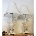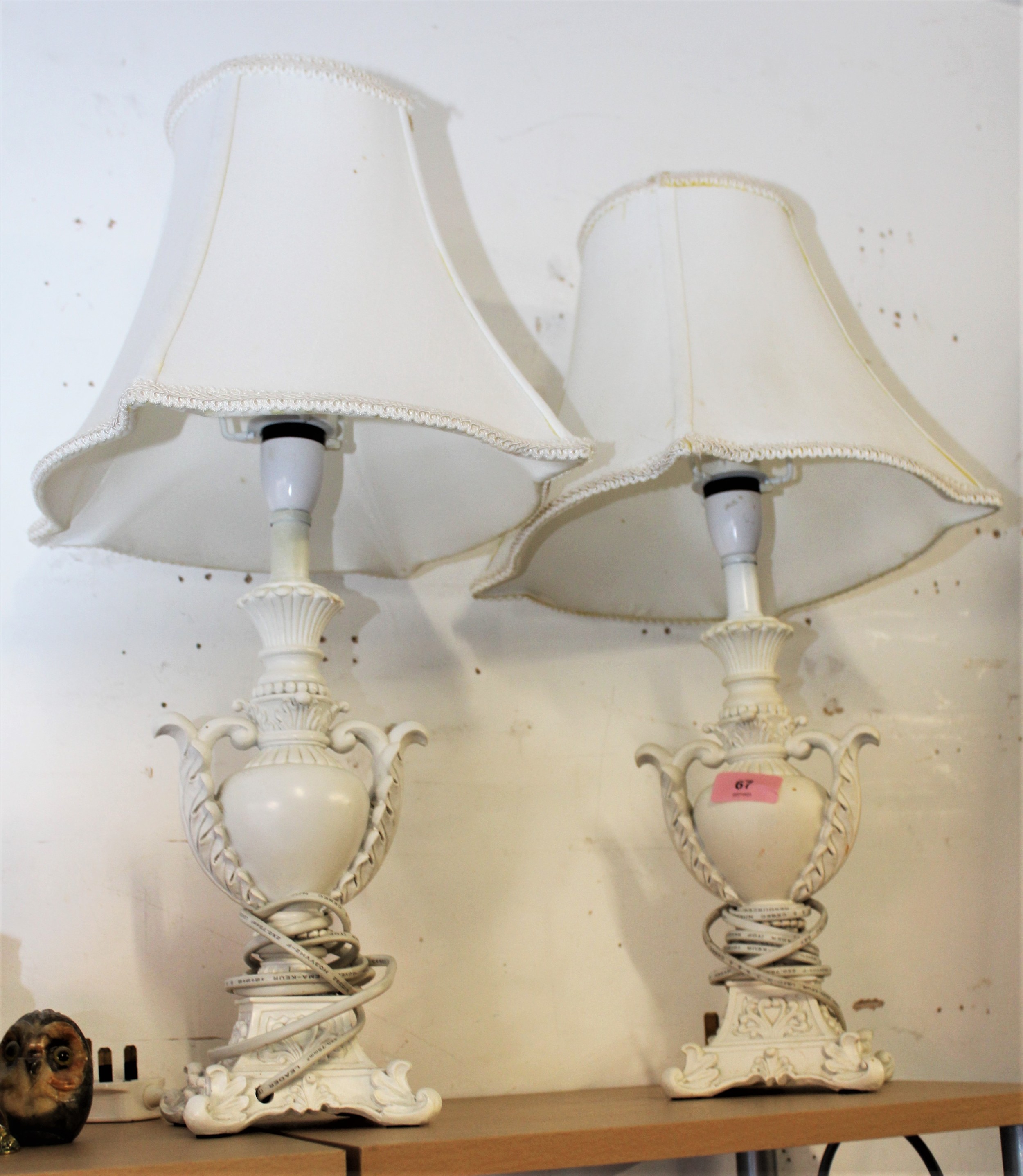 Pair of Ornate White Table Lamps and Shades