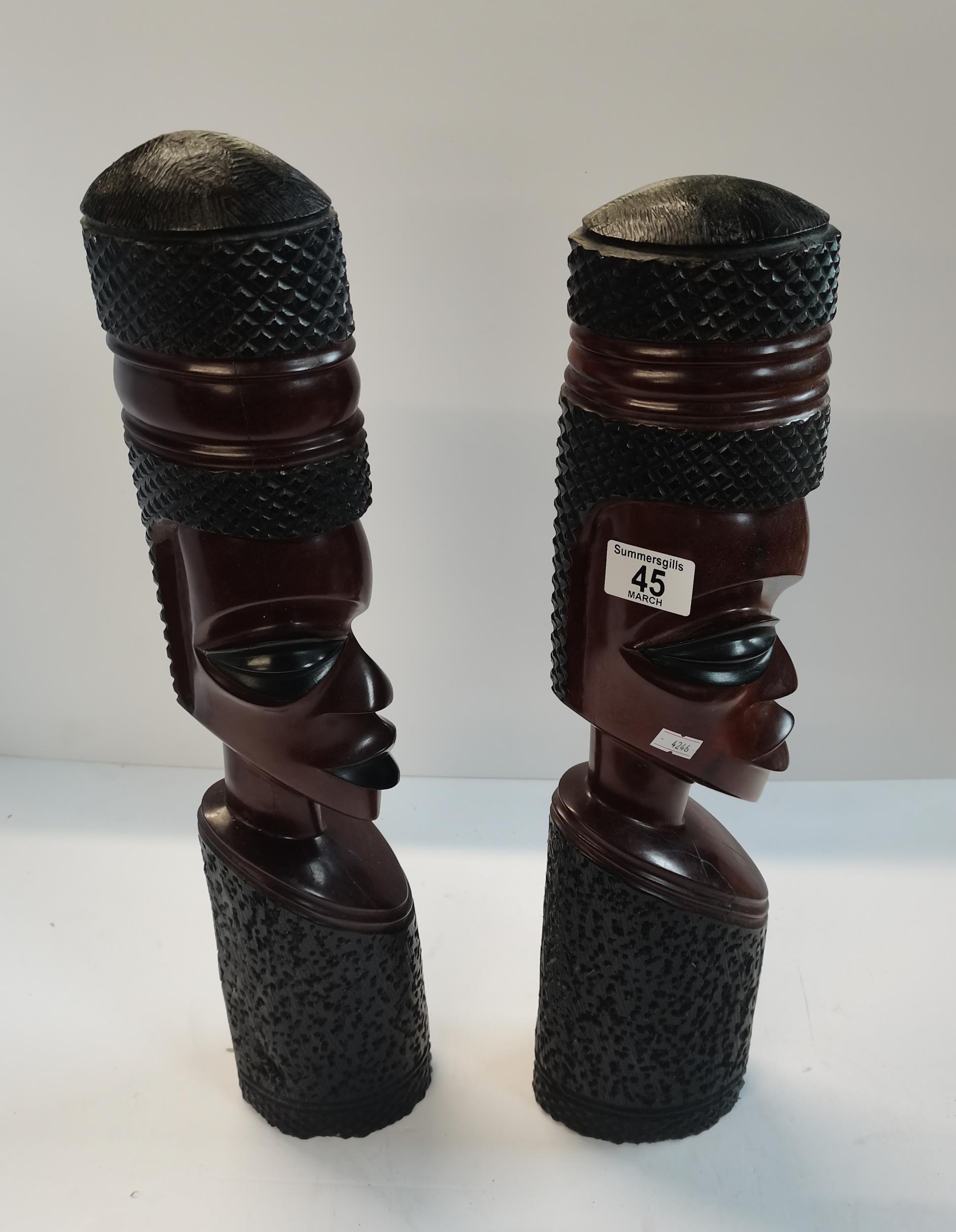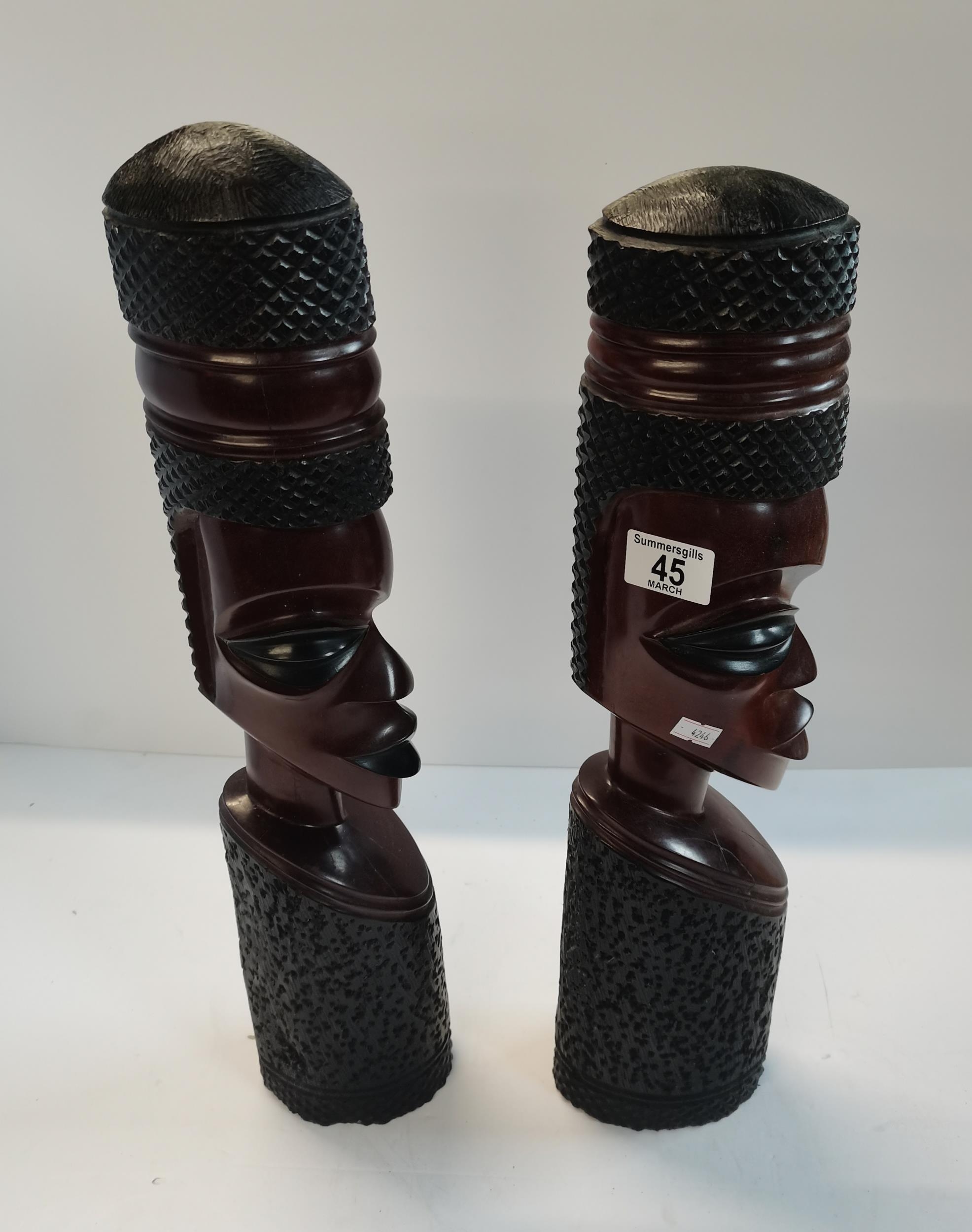 Pair of Large wooden Tribal bust statues 53cm height