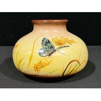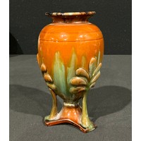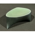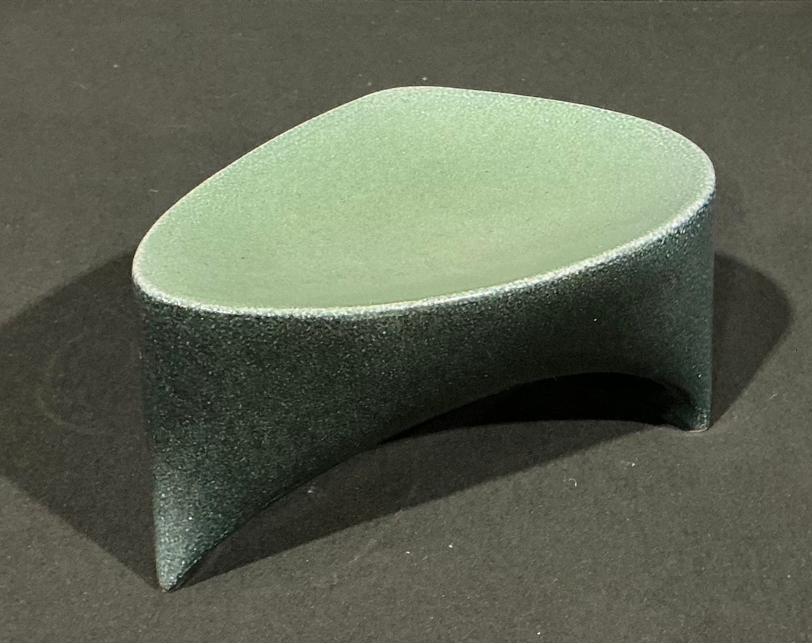 Studio Pottery - Ruth King (b.1955), a tri-form sculptural dish, in mottled tones of green, 17cm wide, impressed mark