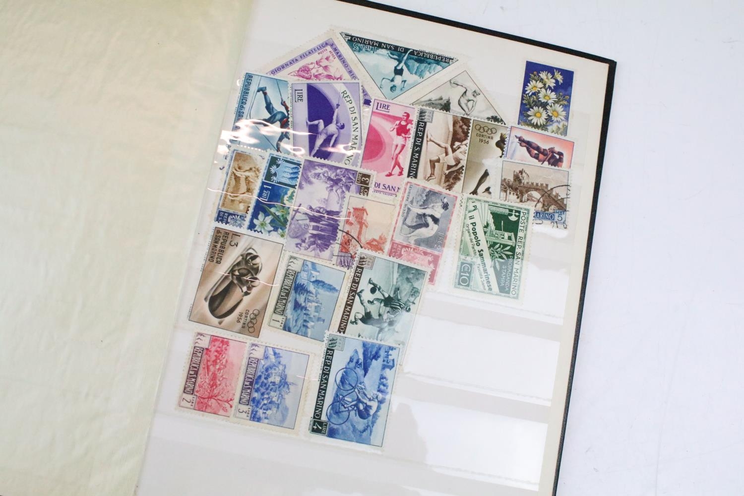 Collection of Commonwealth & world stamps housed within eight albums / stock albums`, featuring a quantity of Finnish & French examples