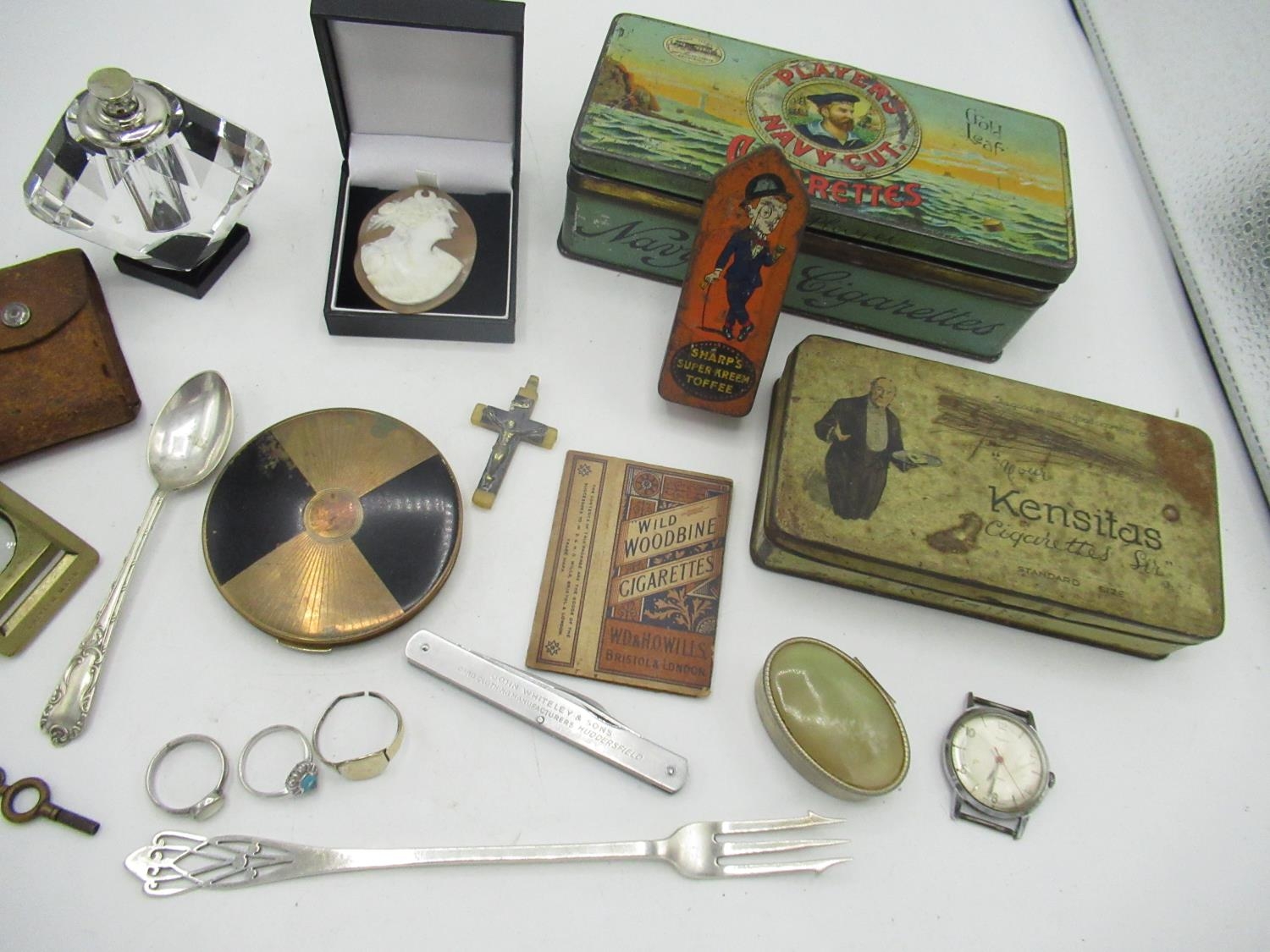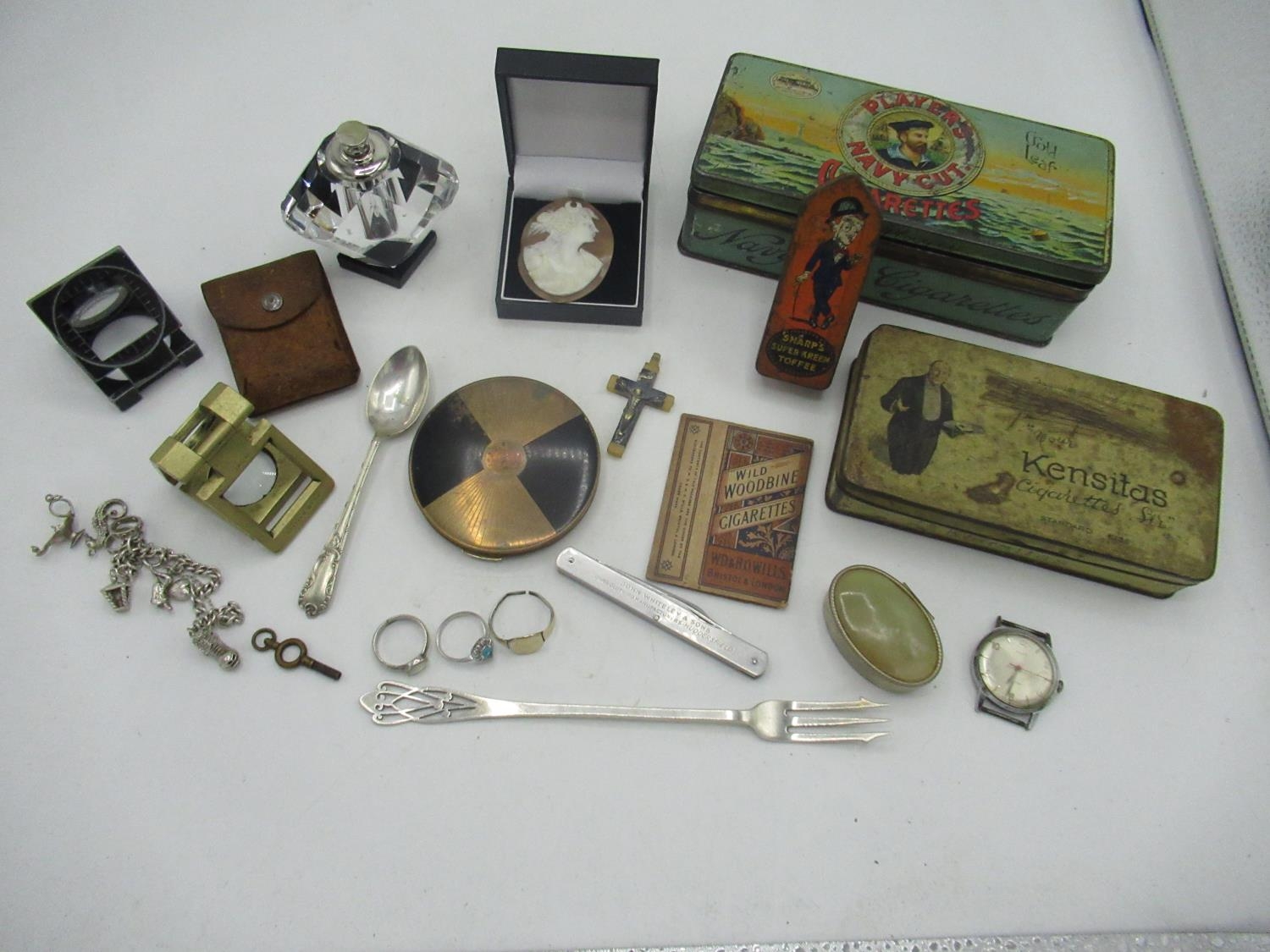 Players Navy Cut Tin,Kensitas Tin, Sharps Super Kreem Toffee Tin, Three Rings, Perfume Bottle, Charm Bracelet, Etc