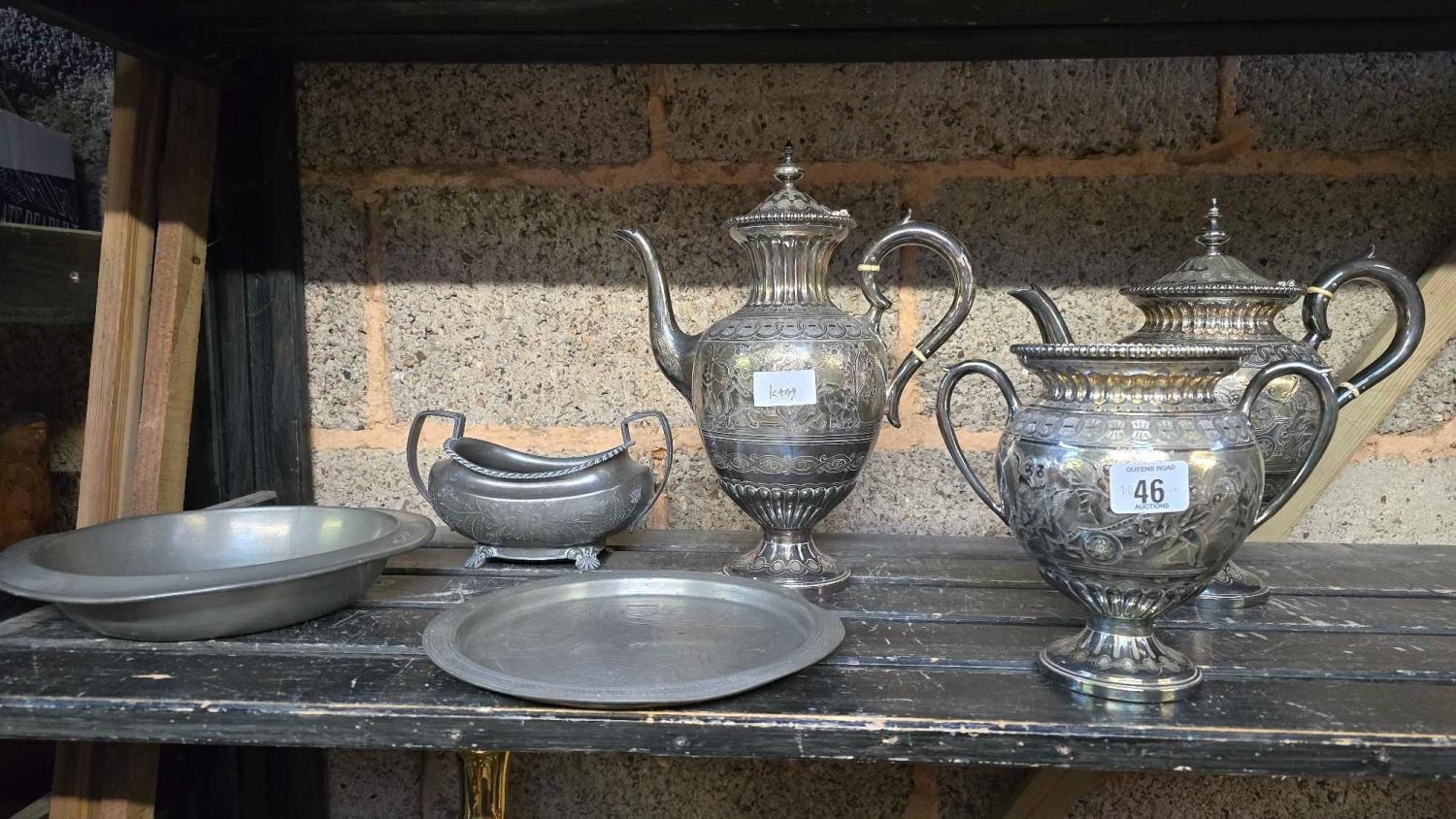 EPNS TEA SET & VARIOUS PEWTER PLATES