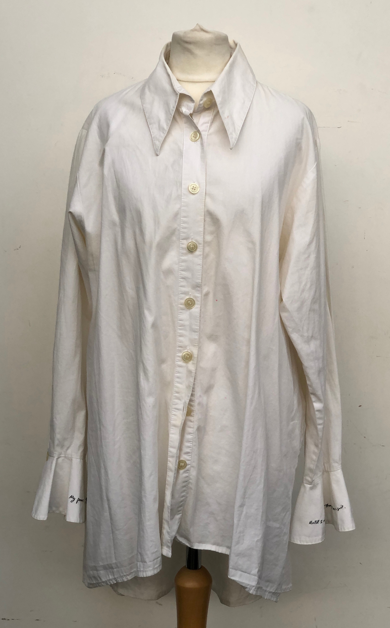 A white cotton shirt by Art Object, an edition of 150 created by Richard Prince for AmFAR, made by Item Ltd, Barney's New York