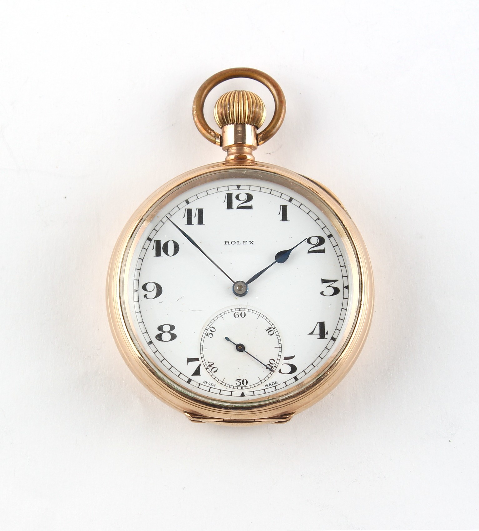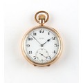 Property of a deceased estate, a private collection of watches - a Rolex gold plated open faced pocket watch, keyless wind, 50mm diameter, appears to be working but no guarantees are given.