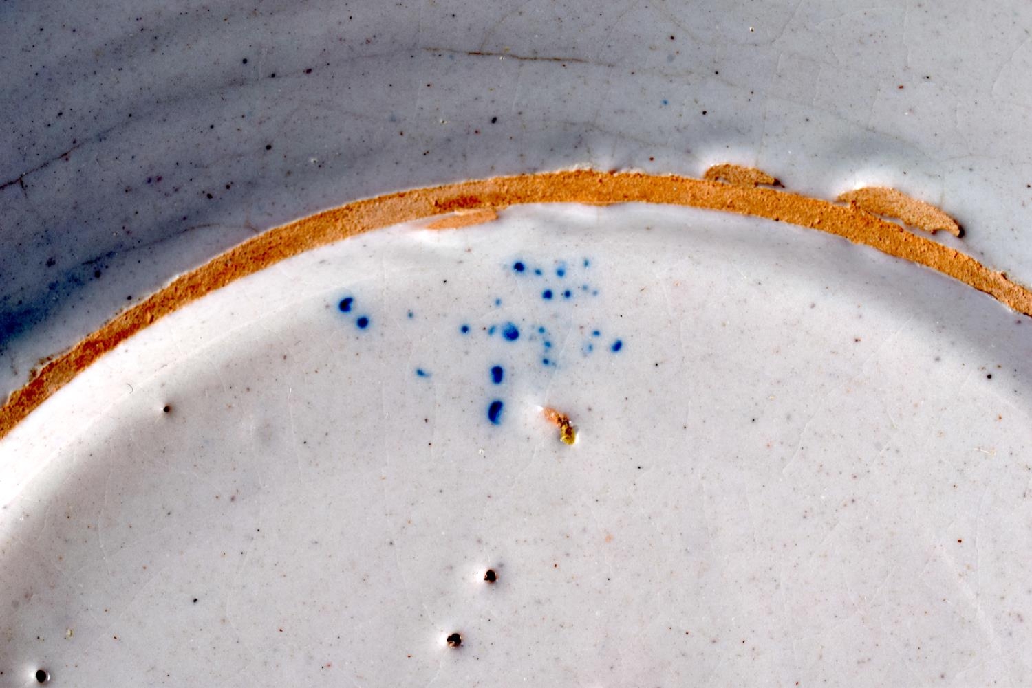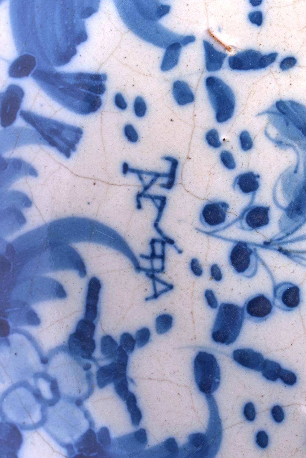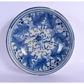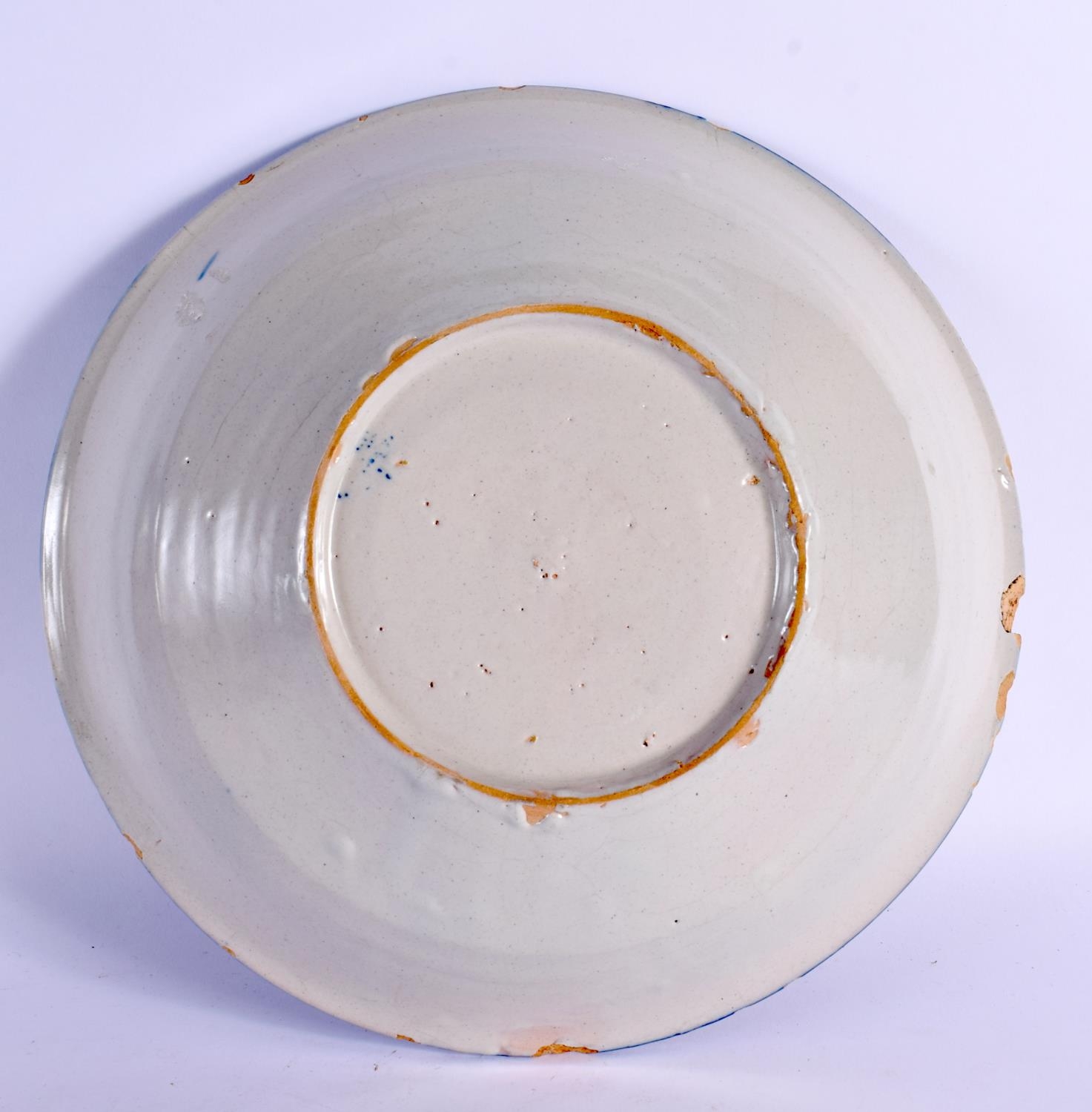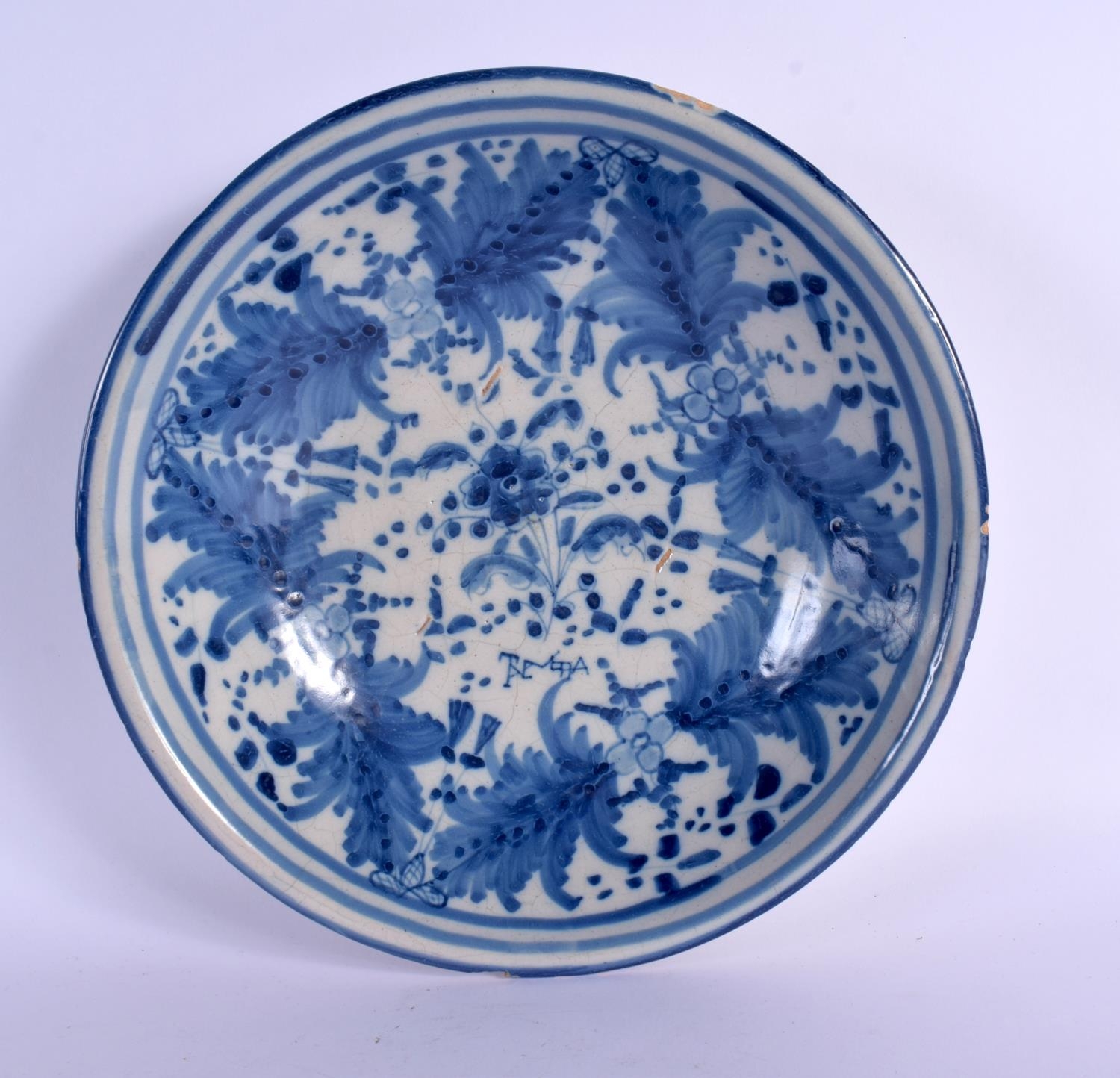 A LARGE 18TH CENTURY DELFT BLUE AND WHITE TIN GLAZED BOWL painted with foliage. 23.5 cm diameter.