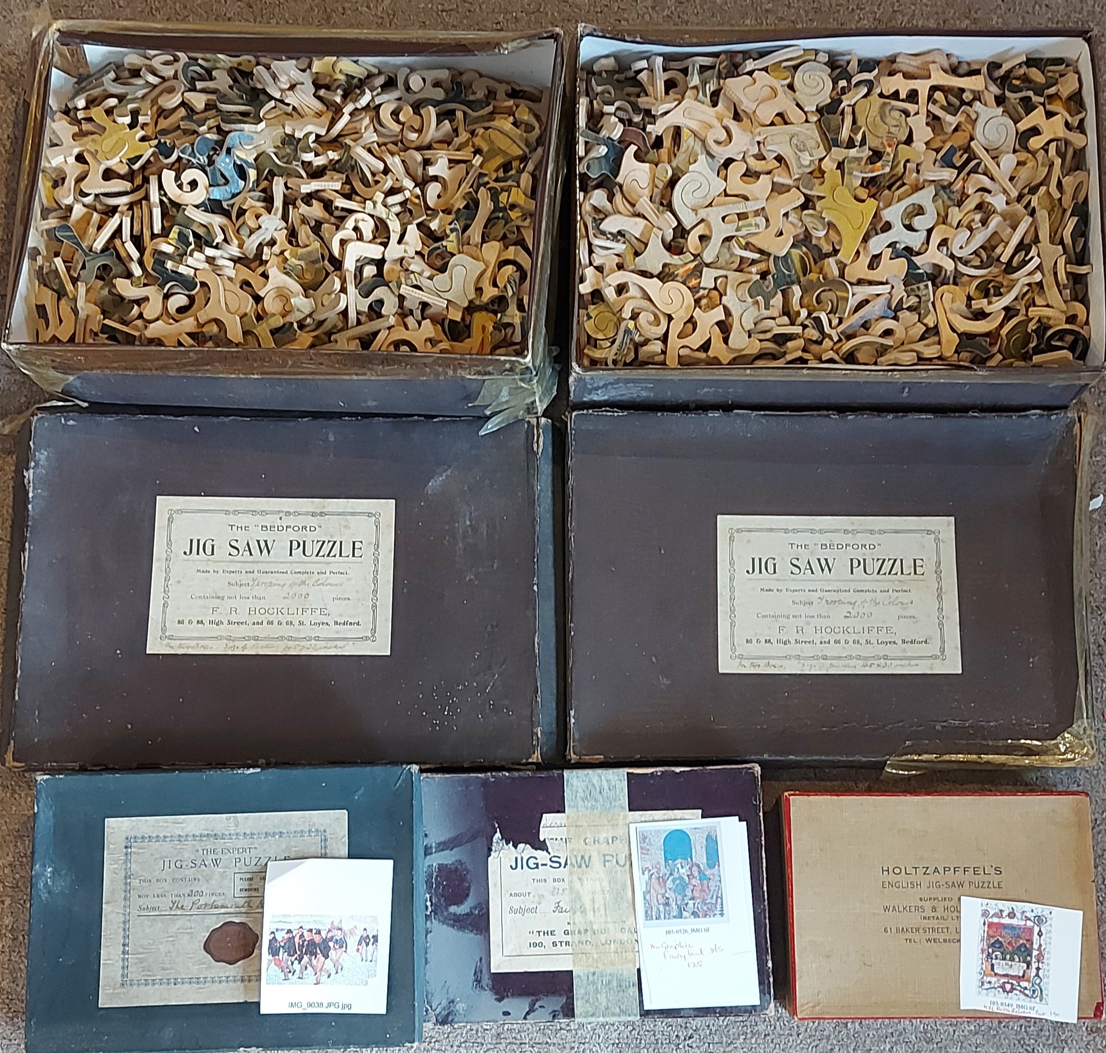A Jigsaw puzzle by Holtzapffels together with a collection of other puzzles to include The Graphic, The Expert and The Bedford