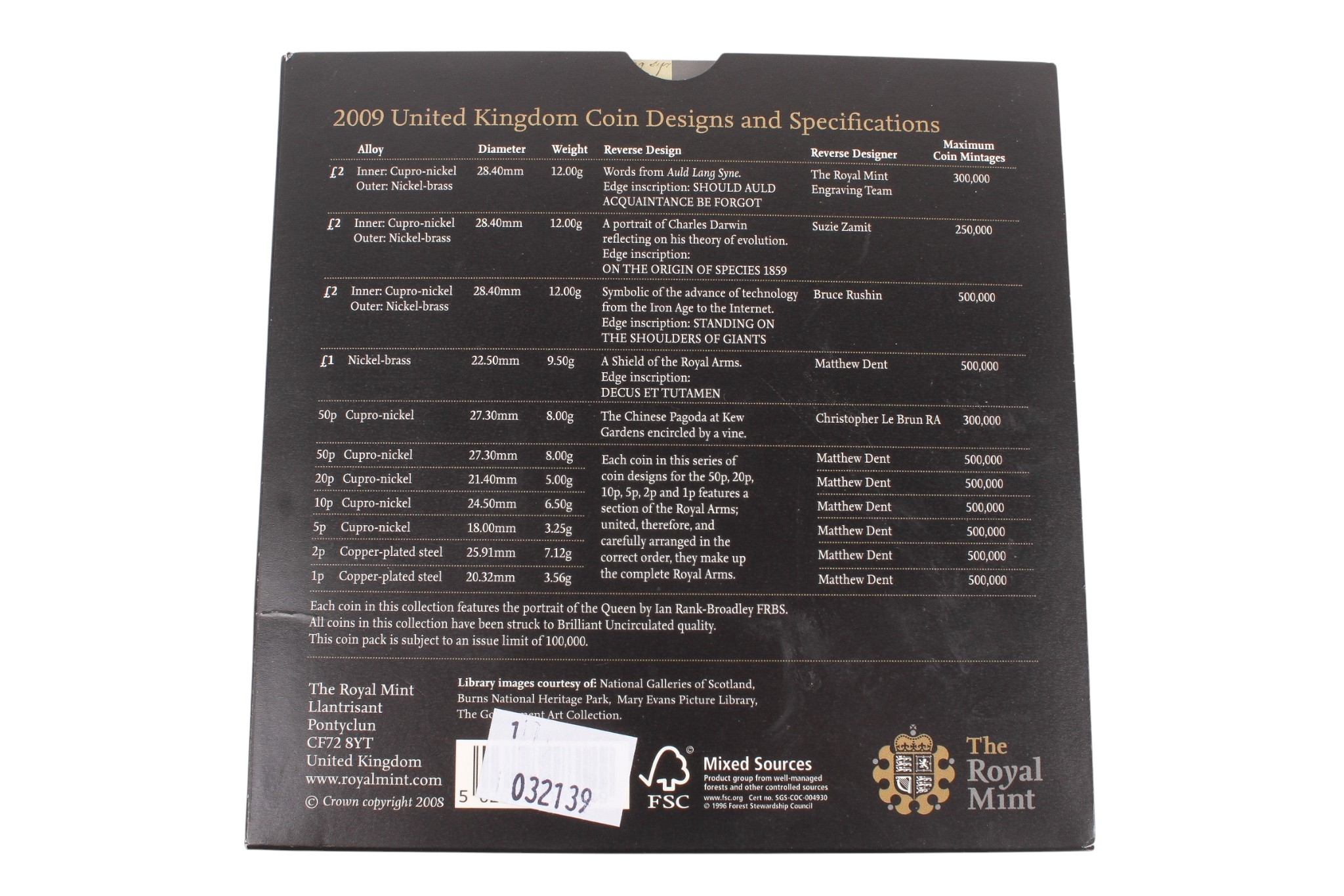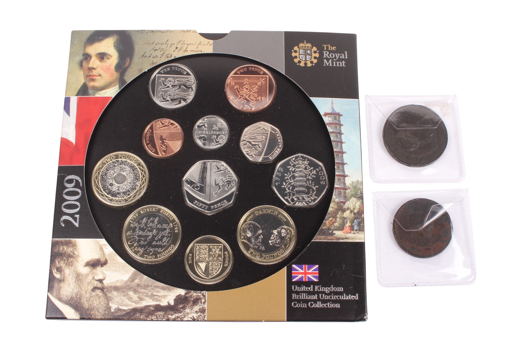 A collection of assorted coins. Including a 2009 B.U. set with Kew Gardens 50p; also 1806 penny and 1799 half penny